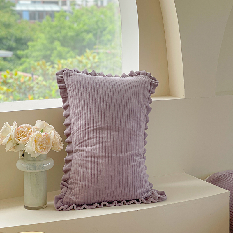 琳可家居 2023新款秋冬款夹棉绒类枕头套牛奶绒德芙绒A类枕套 芋泥紫_纯色简约系列