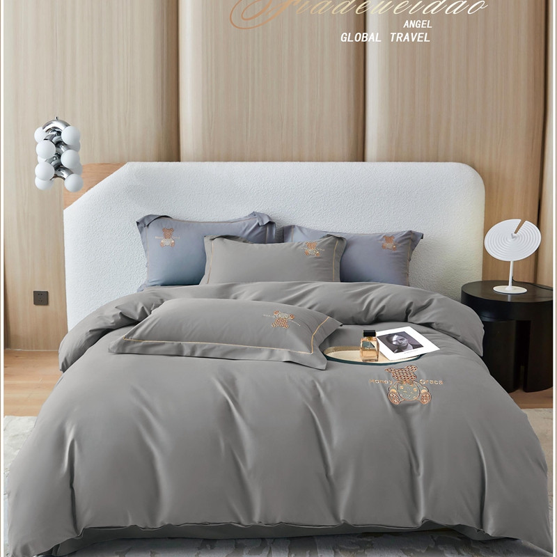 (总)惠居家 2023新款120支长绒棉刺绣四件套希曼系列,薄荷绿,宾利兰,豆沙,灰色