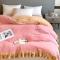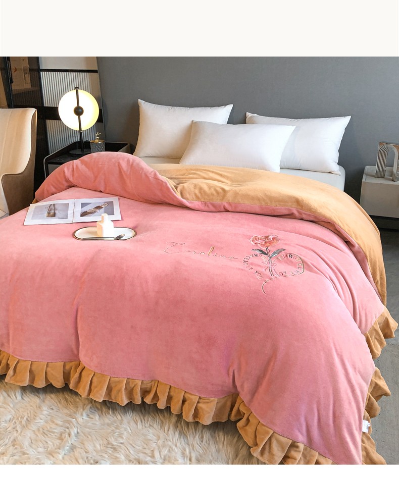 7v 2023新款牛奶绒韩版花边刺绣被套法兰绒宝宝绒兔绒单被套 偏爱-浅粉+浅驼