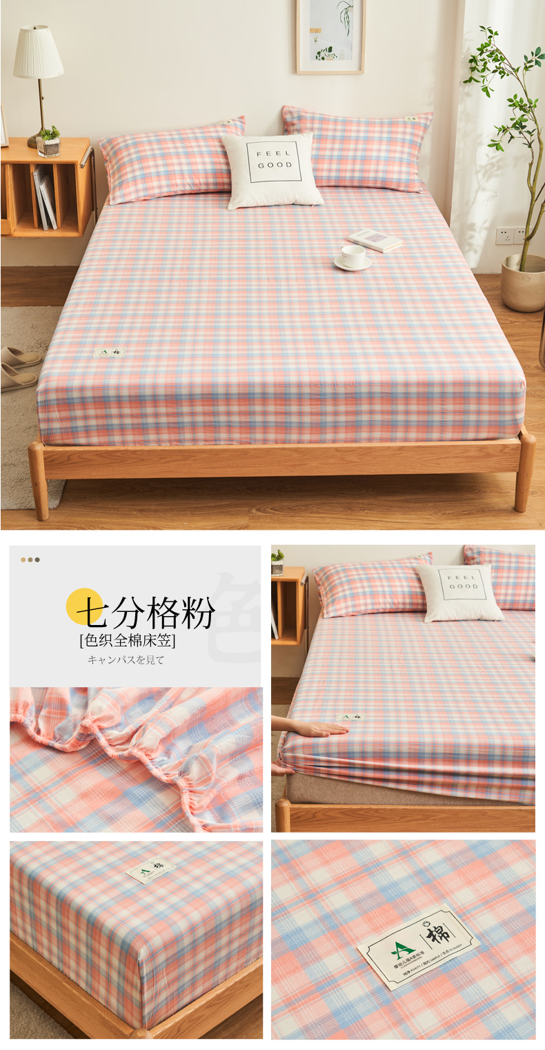21度C 2024新款色织全棉水洗棉床笠 七分格粉