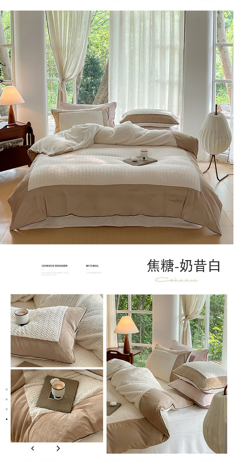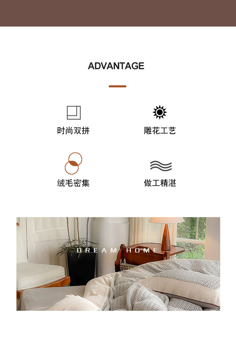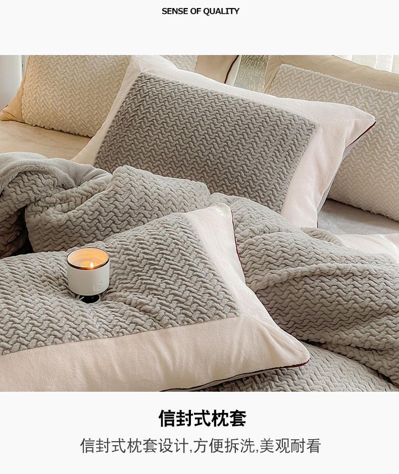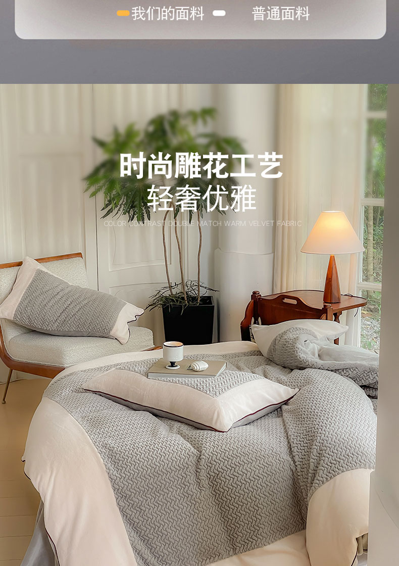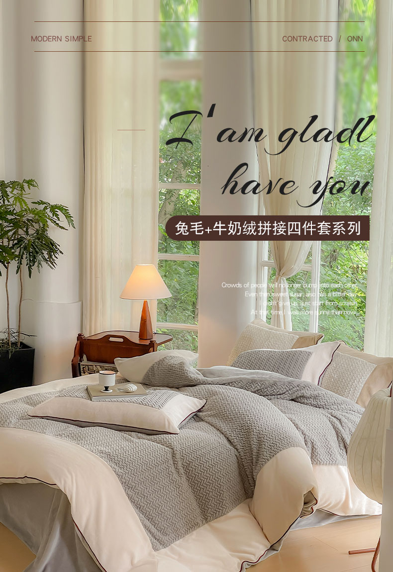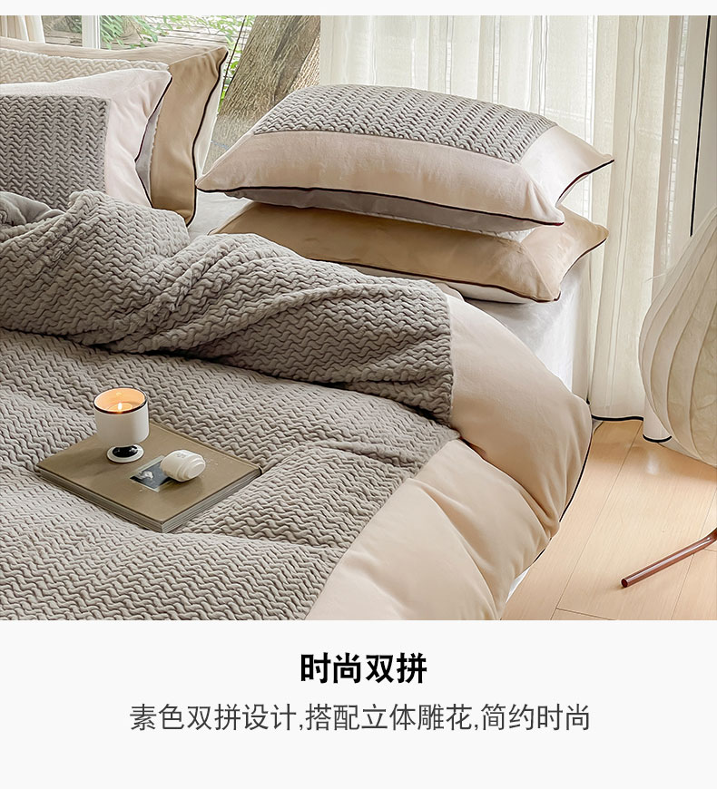 (总)FOR TWO家纺 2023新款兔毛拼接嵌线系列四件套