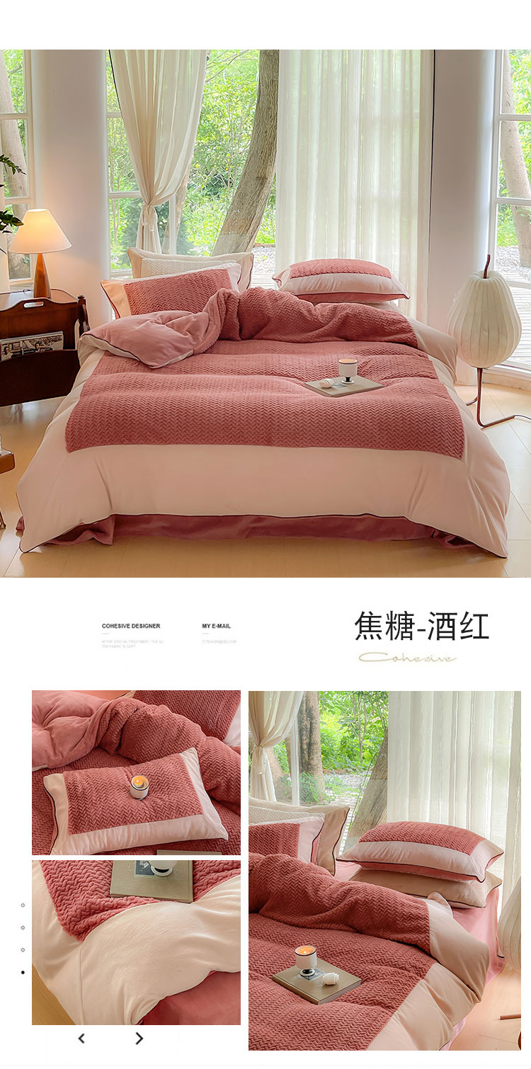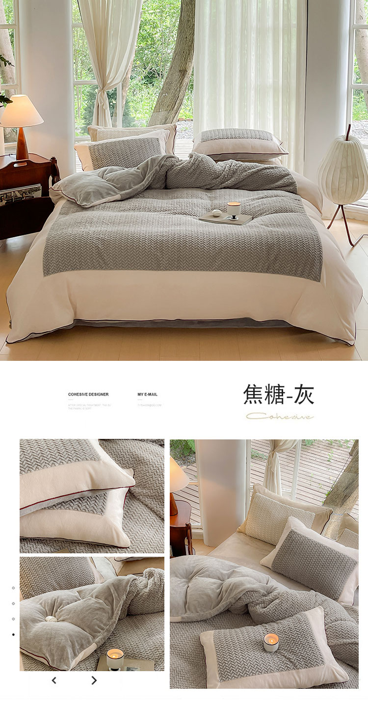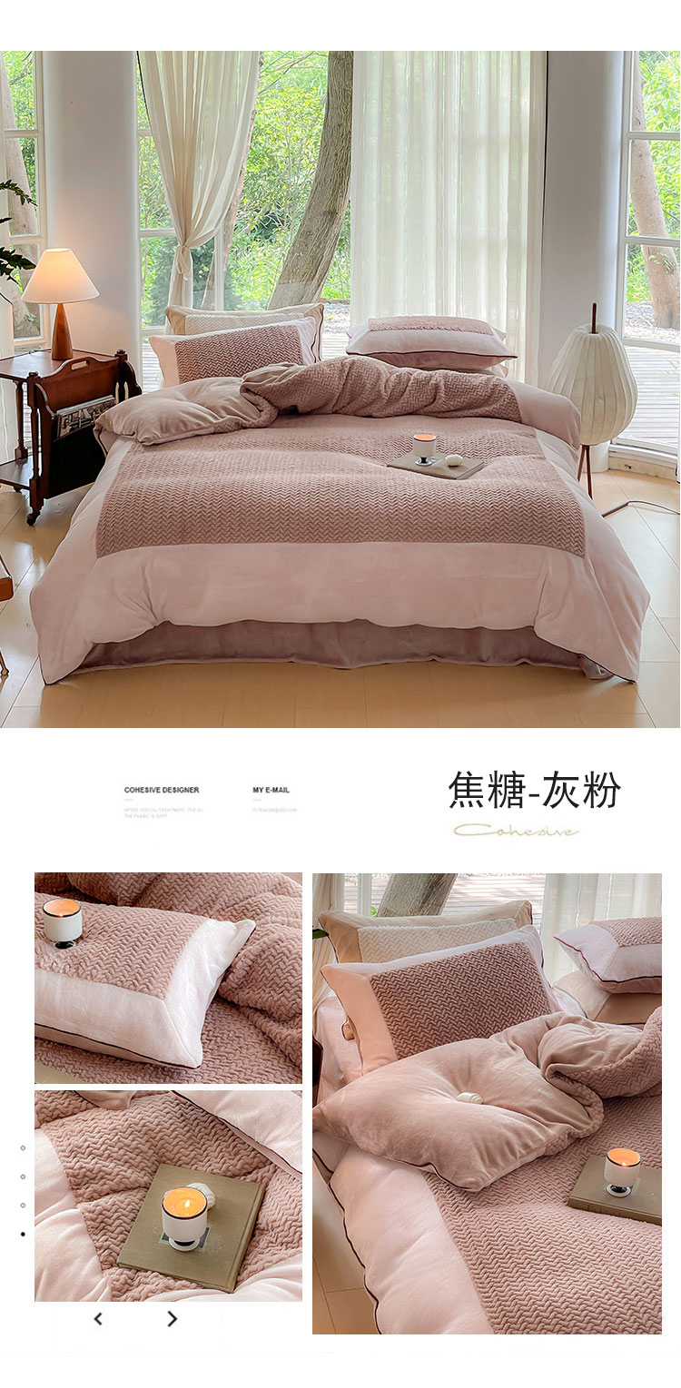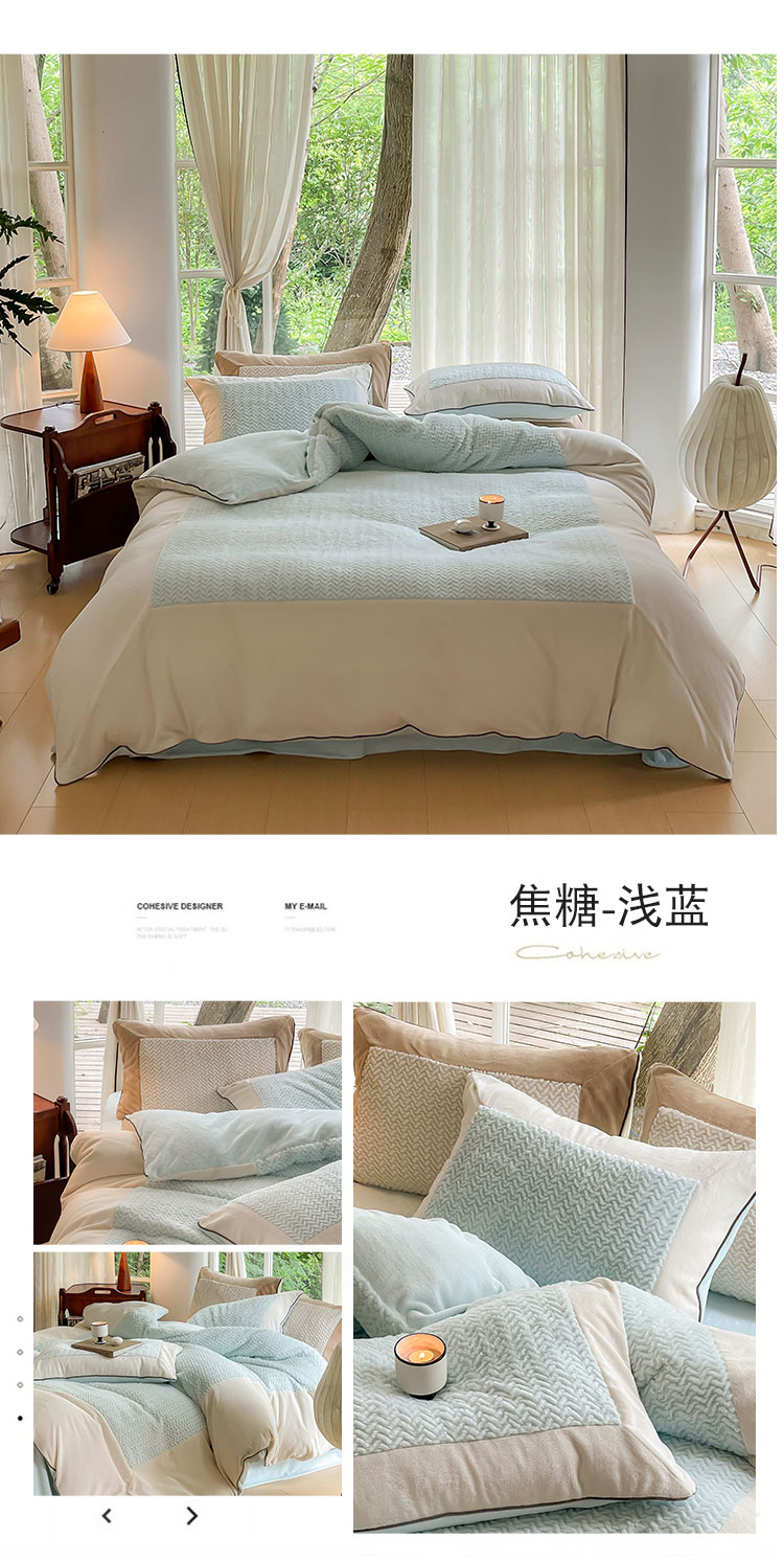 (总)FOR TWO家纺 2023新款兔毛拼接嵌线系列四件套