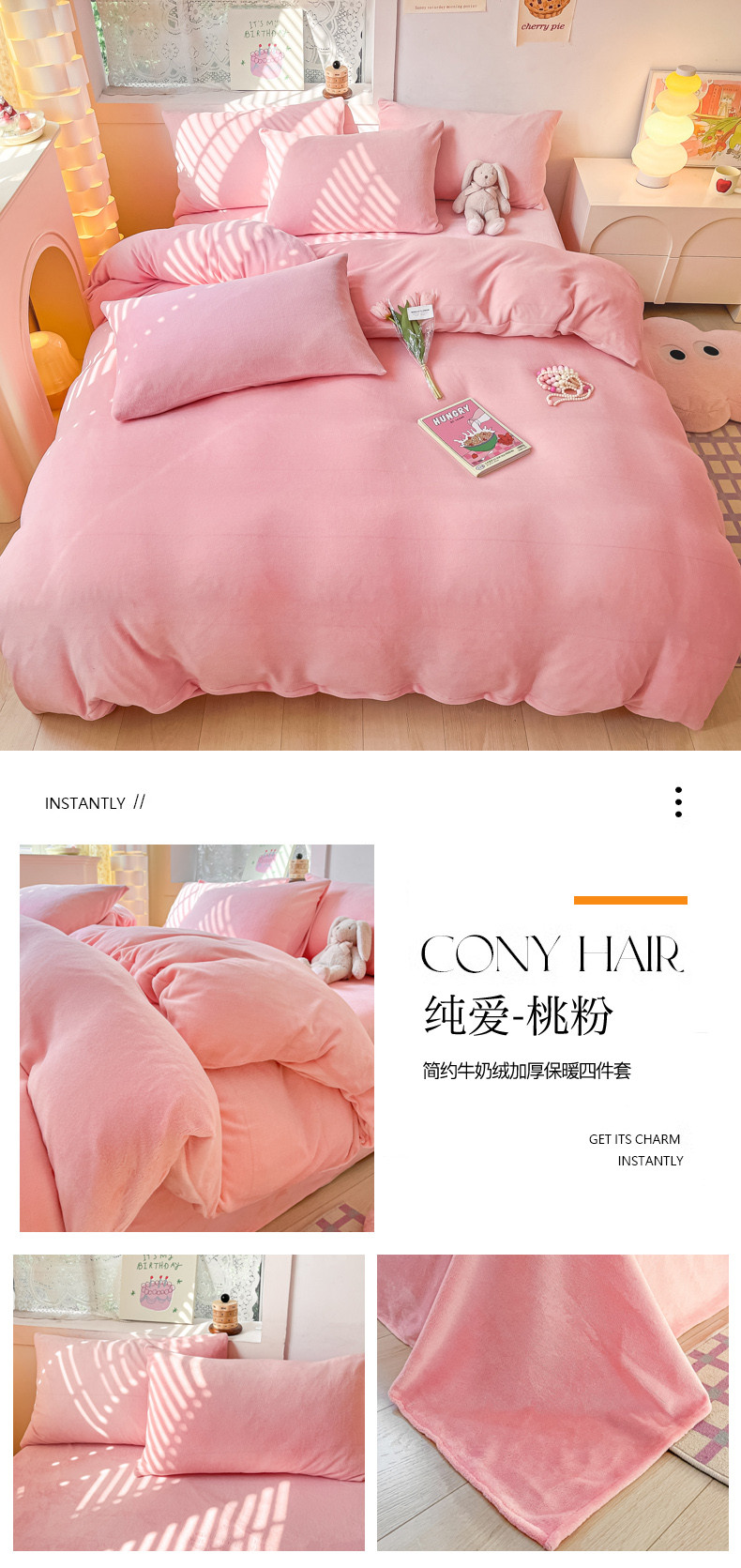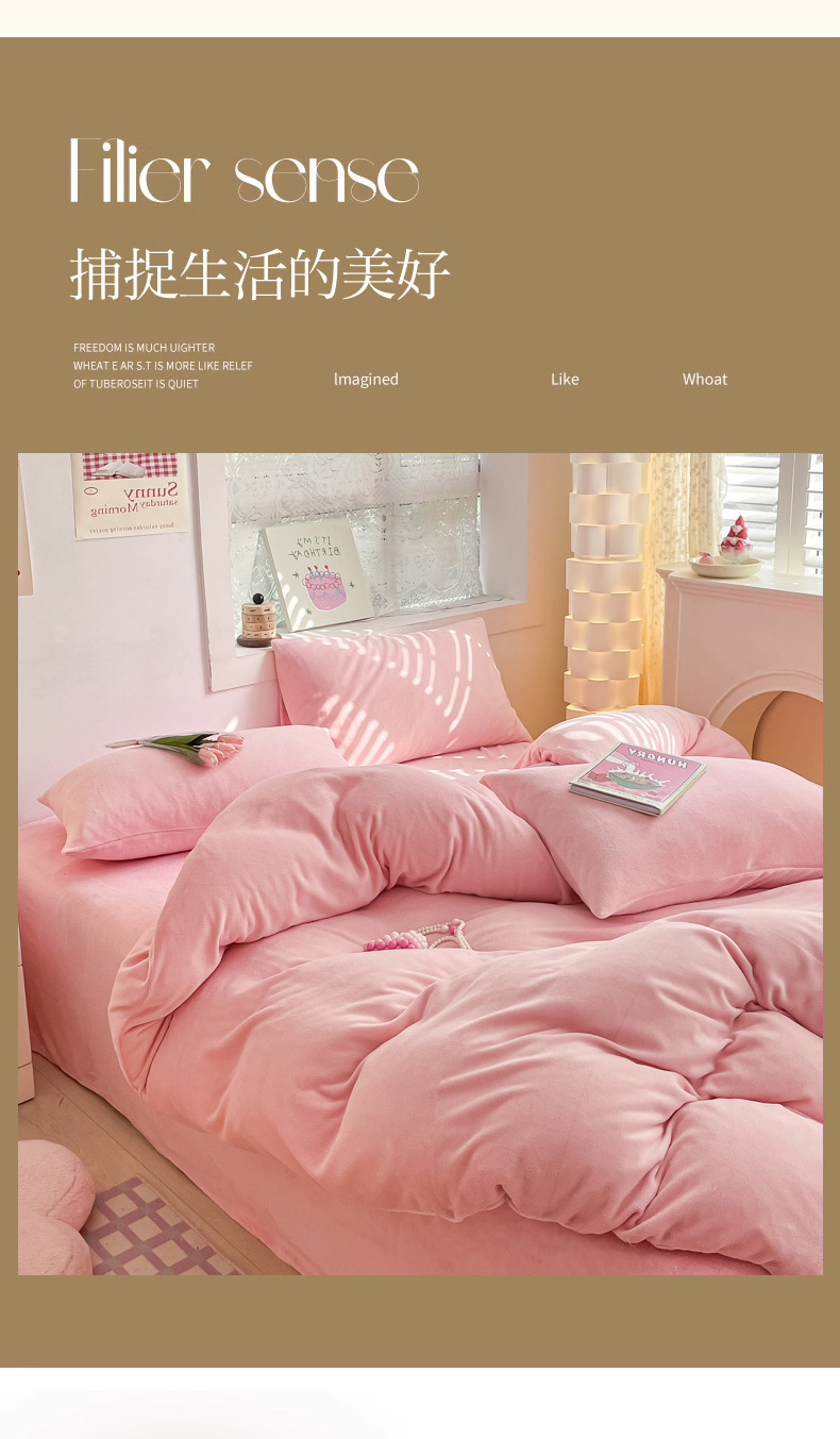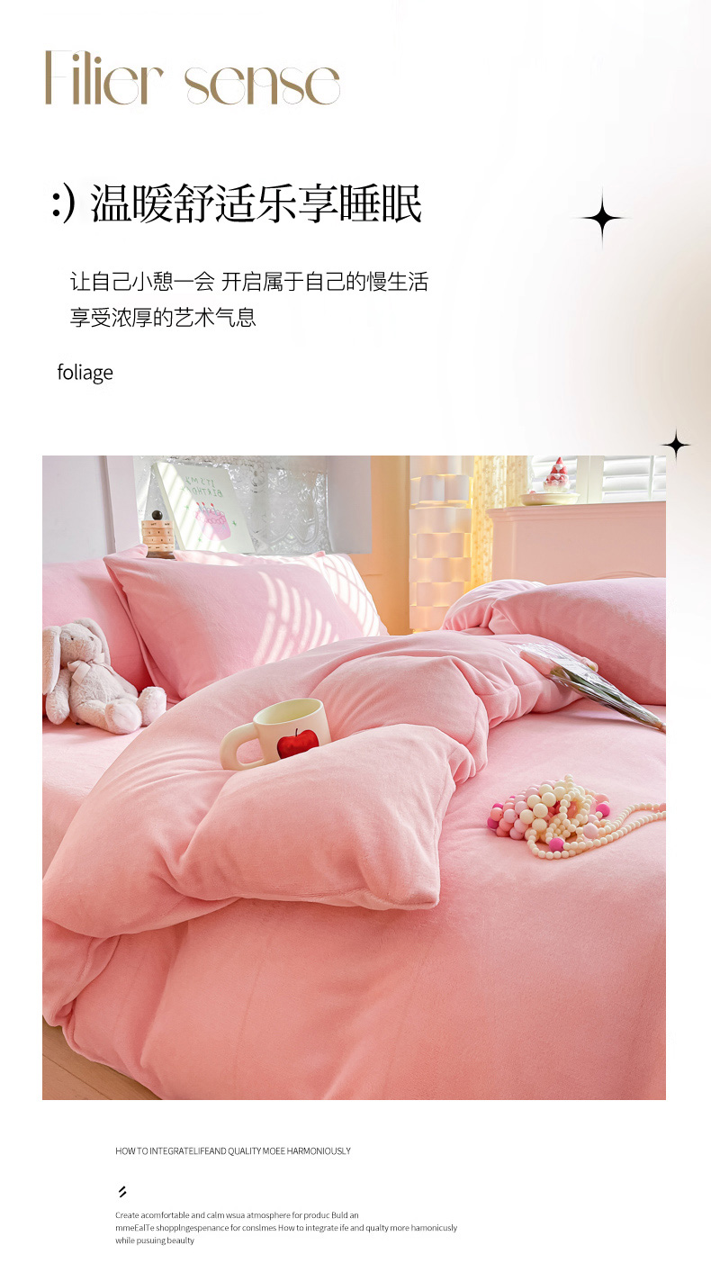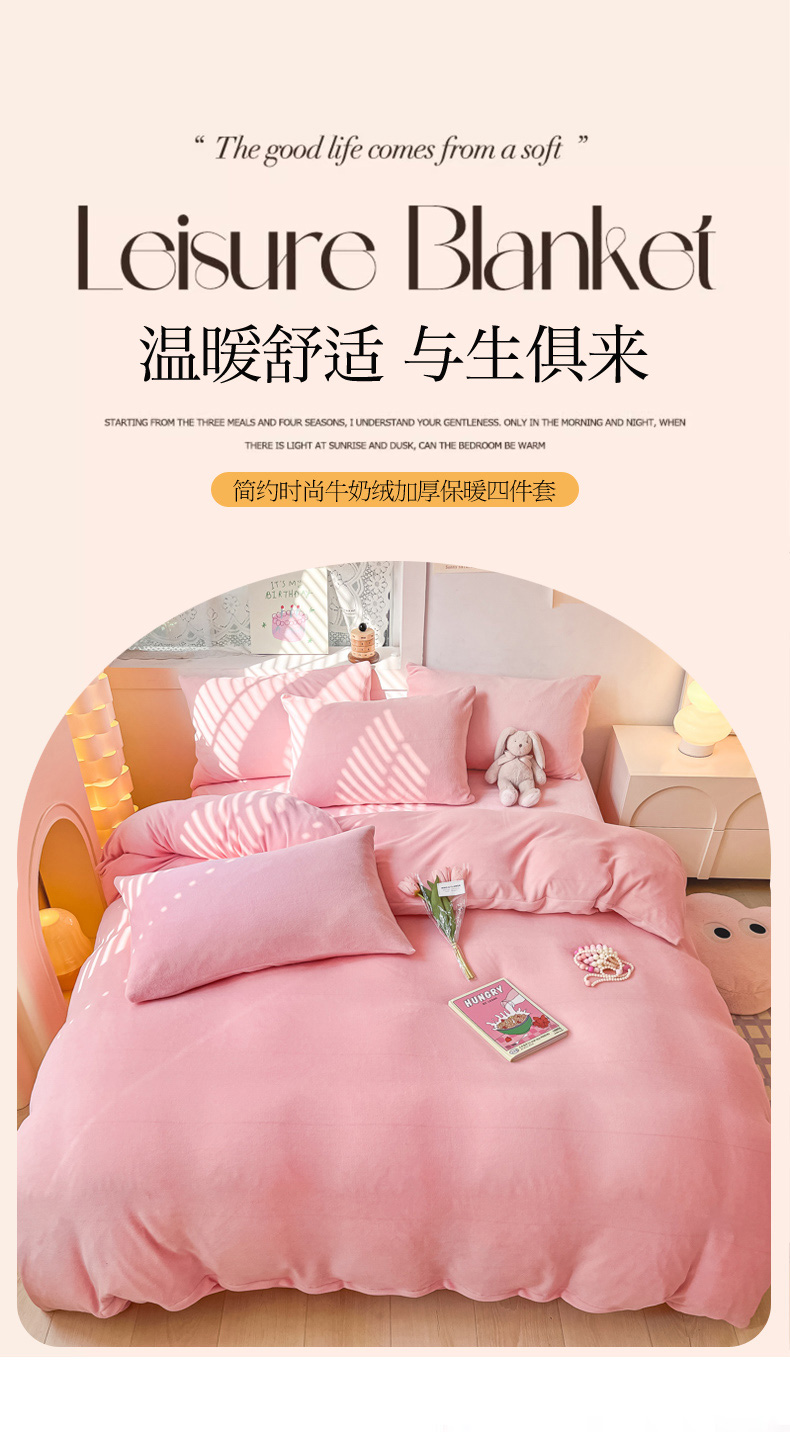 当前位置: 91家纺网 > 商品网购 > 床品套件 > 四件套 > 牛奶绒四件套 > 慕澄家纺 2023新款简约牛奶绒加厚保暖四件套-纯爱 纯爱-桃粉