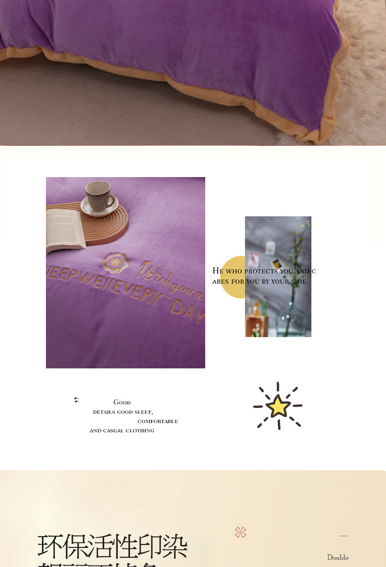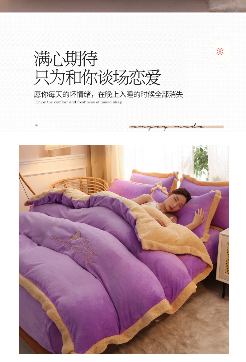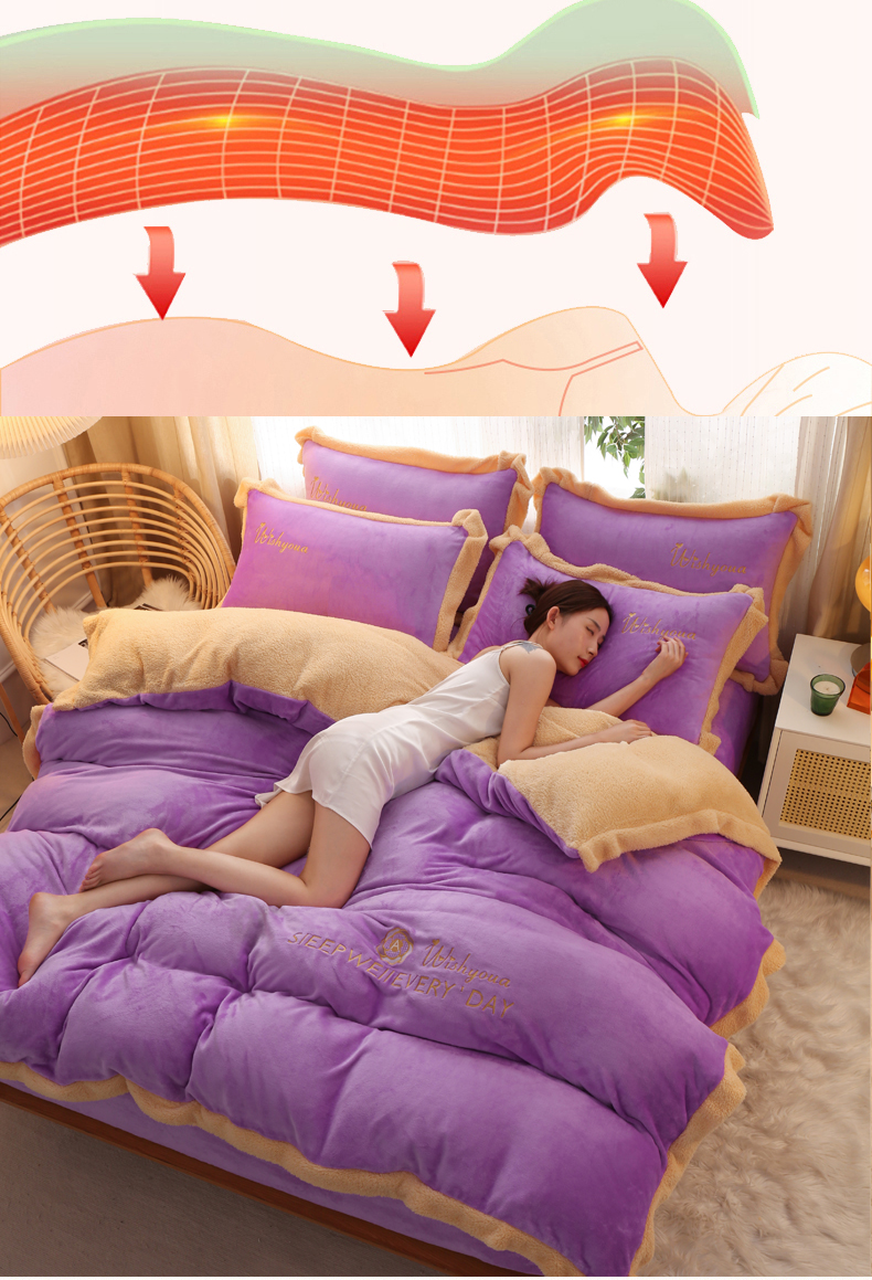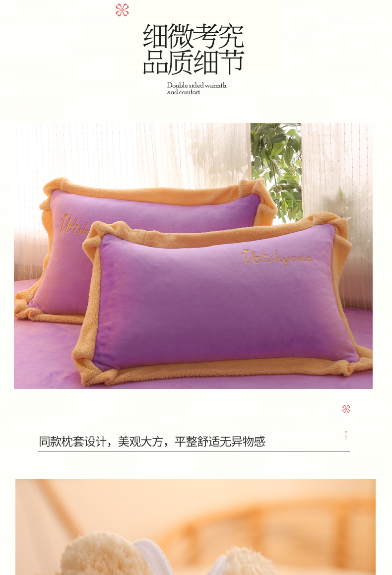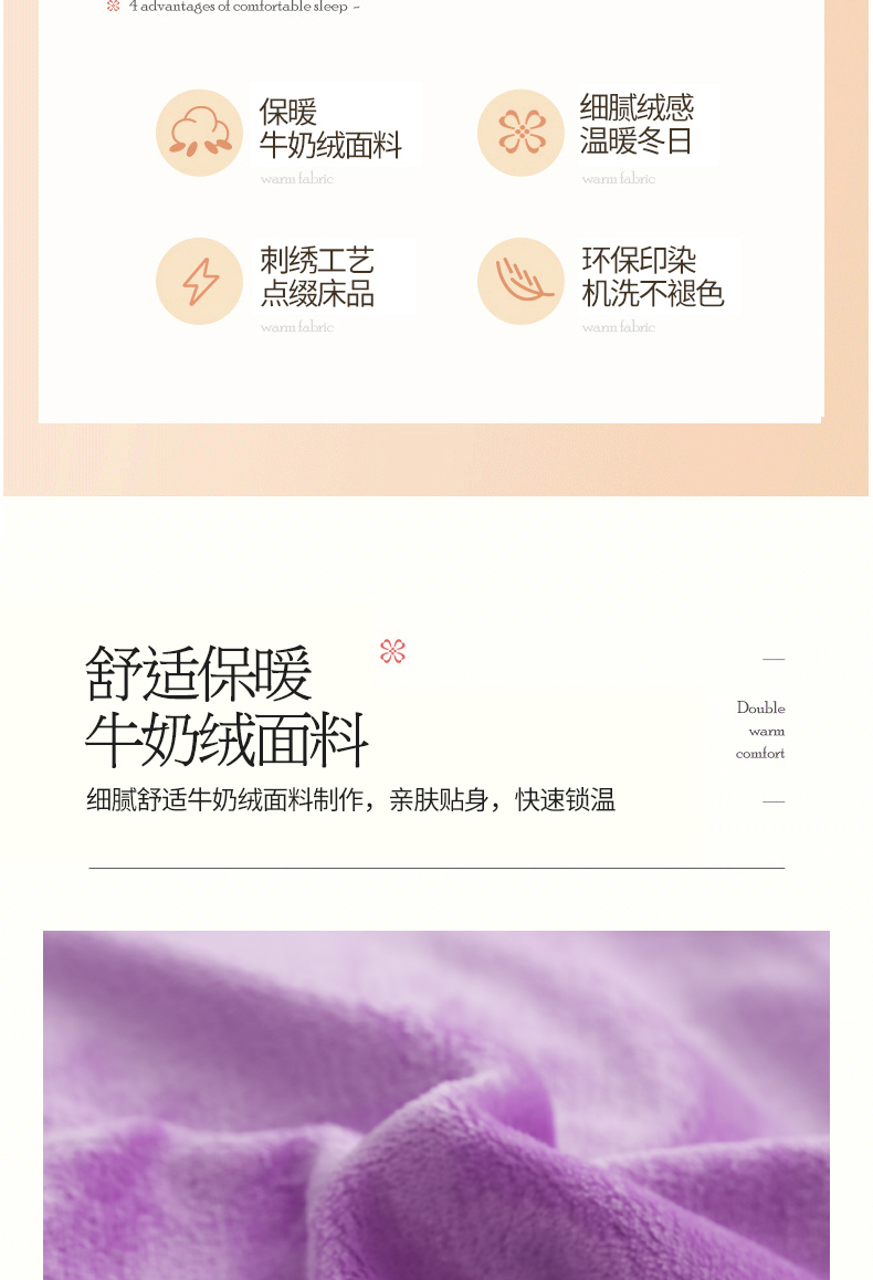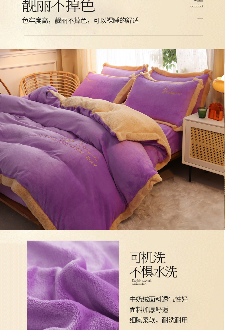 当前位置: 91家纺网 > 商品网购 > 床品套件 > 四件套 > 牛奶绒四件套 > 啊雅家居 2026新款绣花牛奶绒加羊羔绒四件套 紫色加米黄