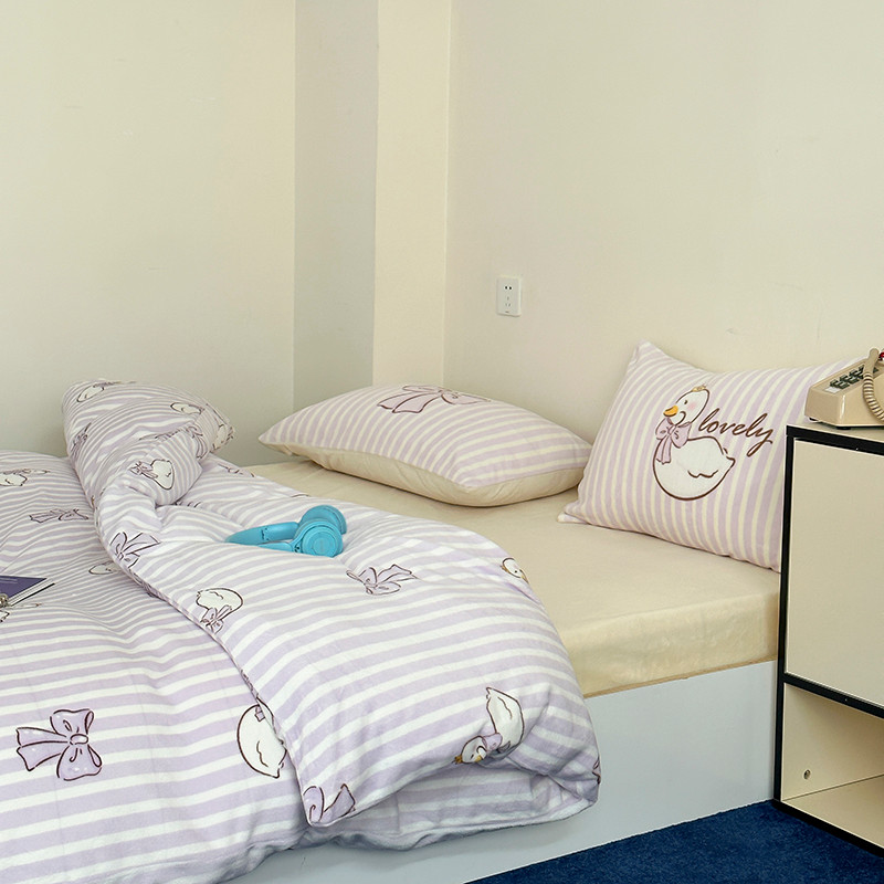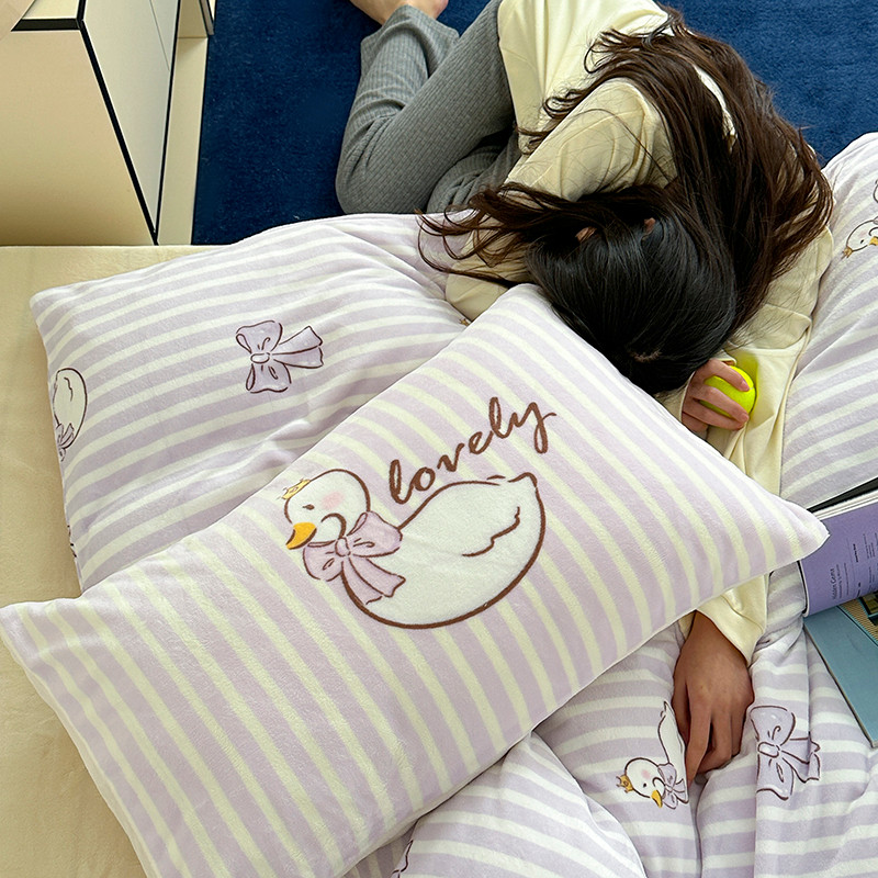 商品名称:昔可 2023新款大版印花枕套牛奶绒系列四件套-模特图 芭蕾天鹅