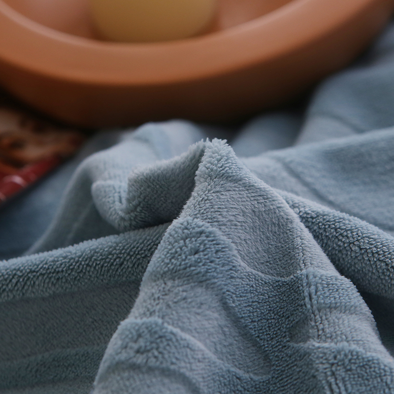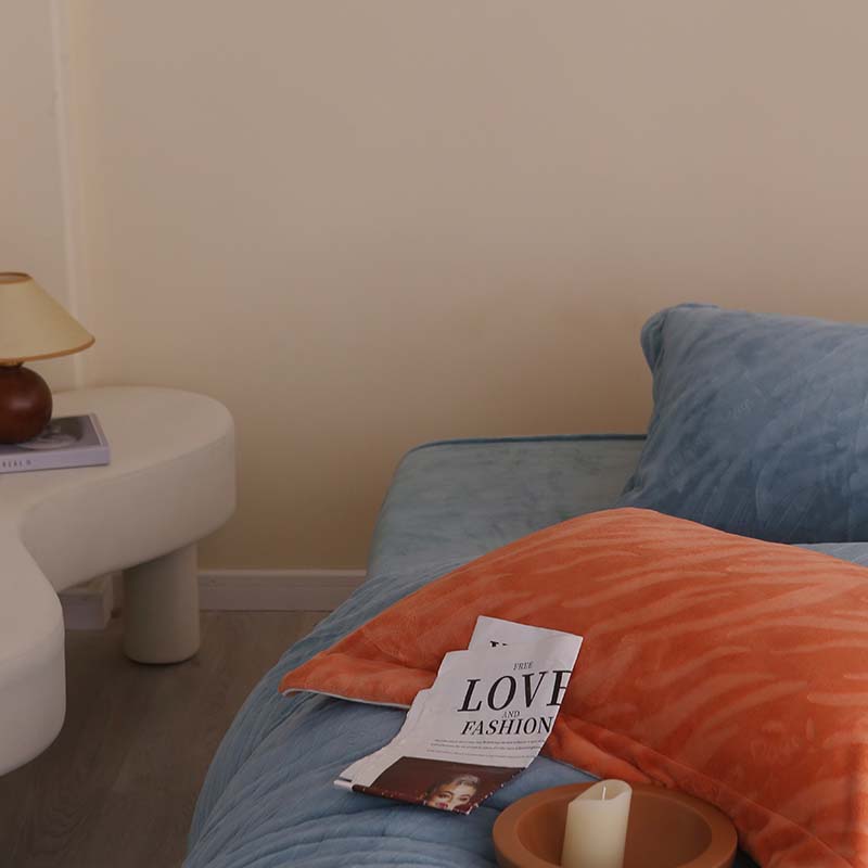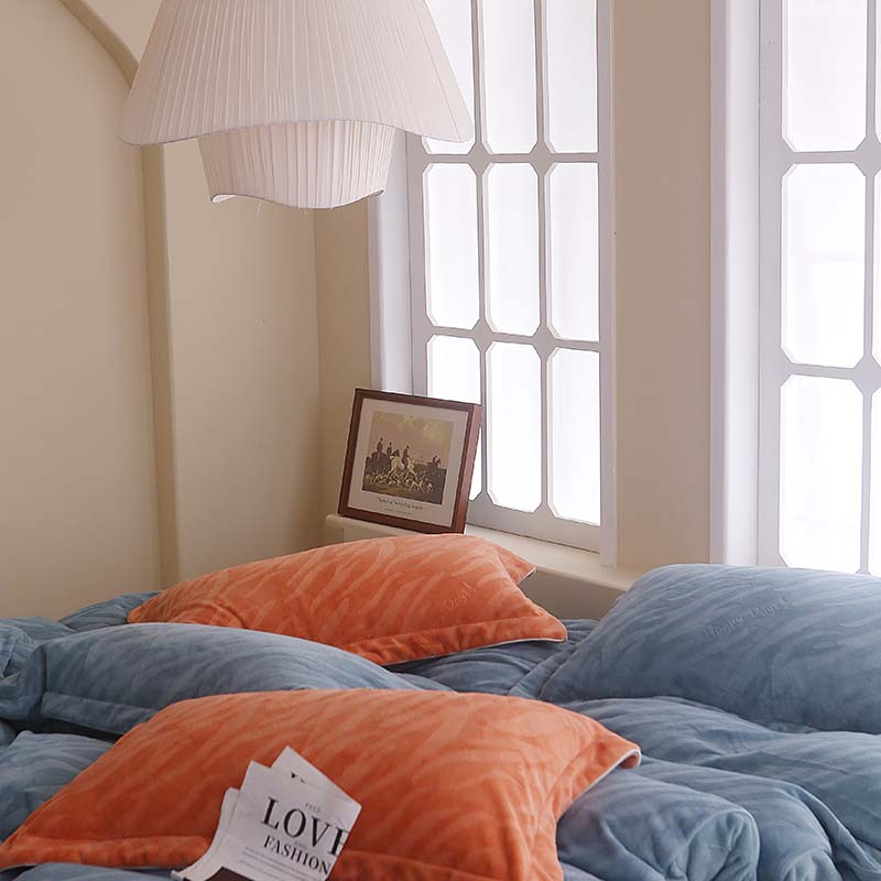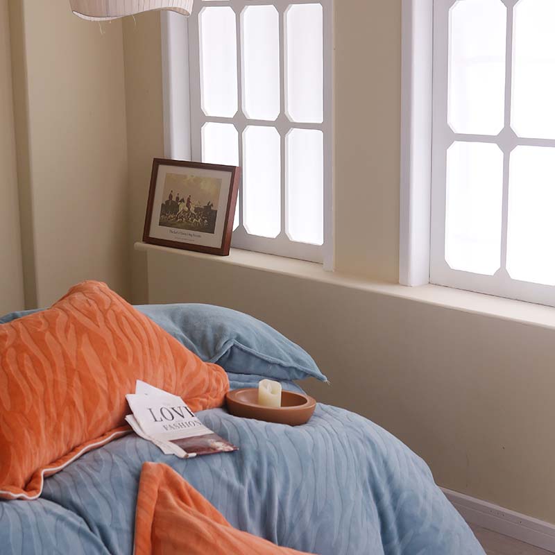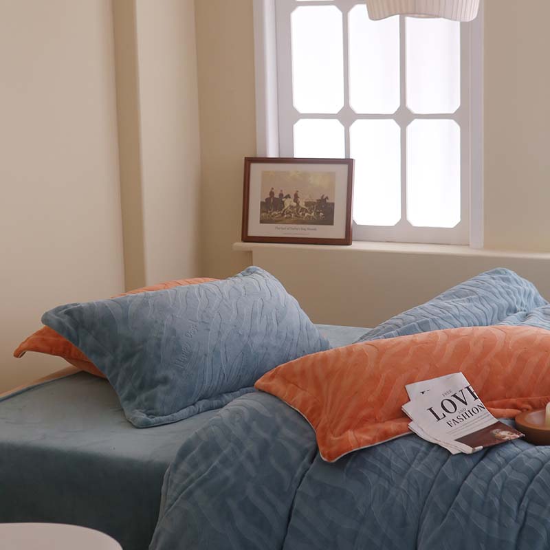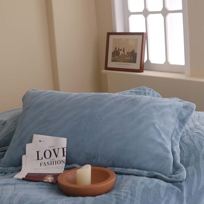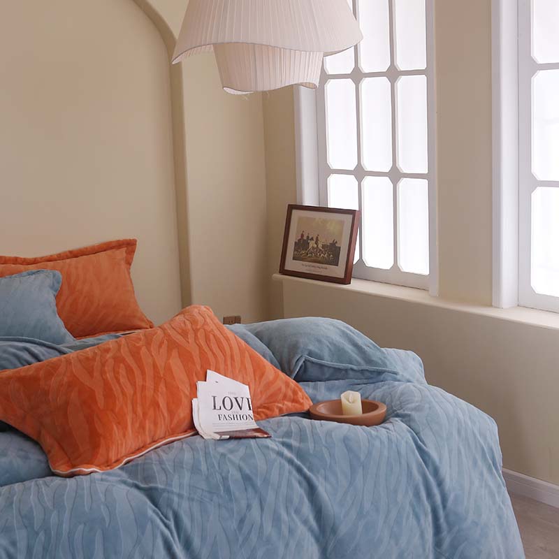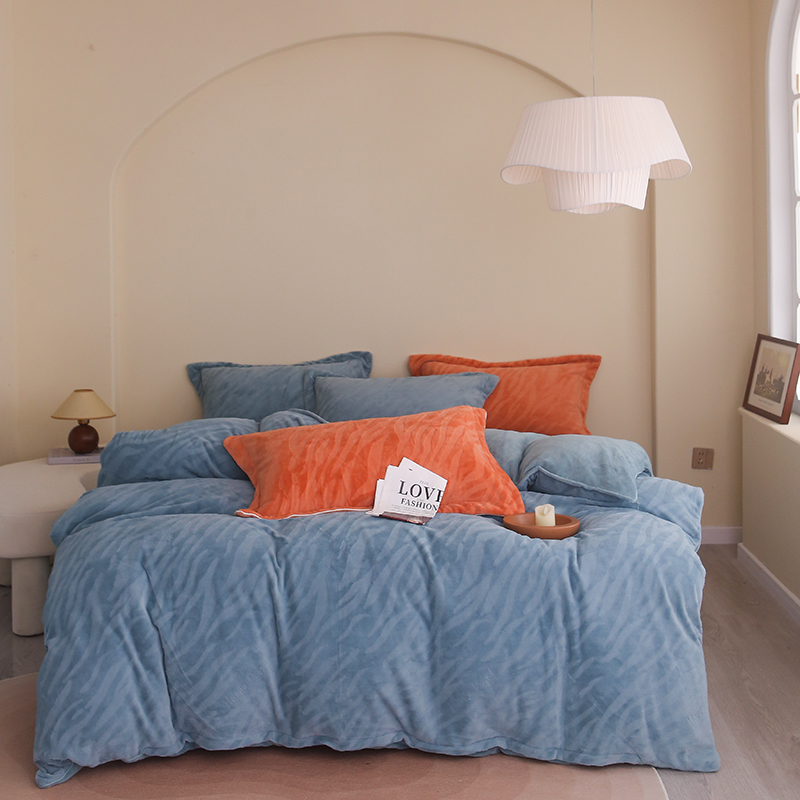 橘滋 2023新款牛奶绒提花立体雕花滚绳包边四件套 卡夫-蓝
