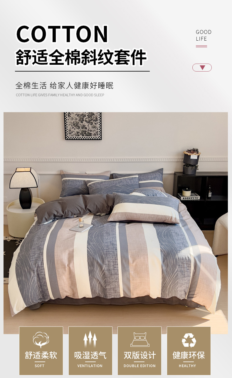 当前位置: 91家纺网 > 商品网购 > 床品套件 > 四件套 > 全棉普通四件套 > 金丝鸟 2023秋冬新品全棉简约条格小清新四件套 意林