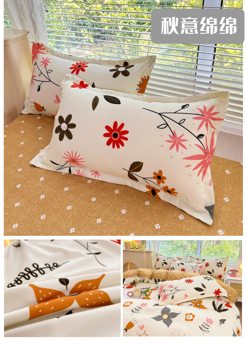 商品名称:曼璐 2025直播爆款植物羊绒加厚斜纹磨毛枕套 秋意绵绵