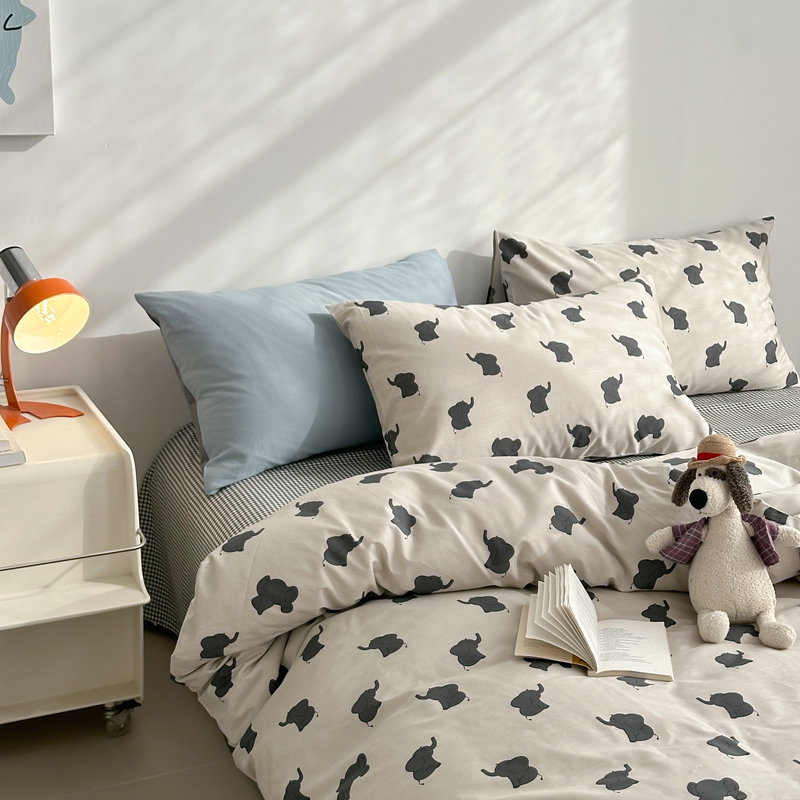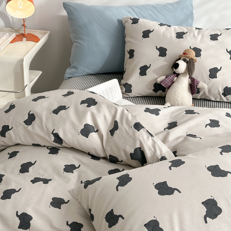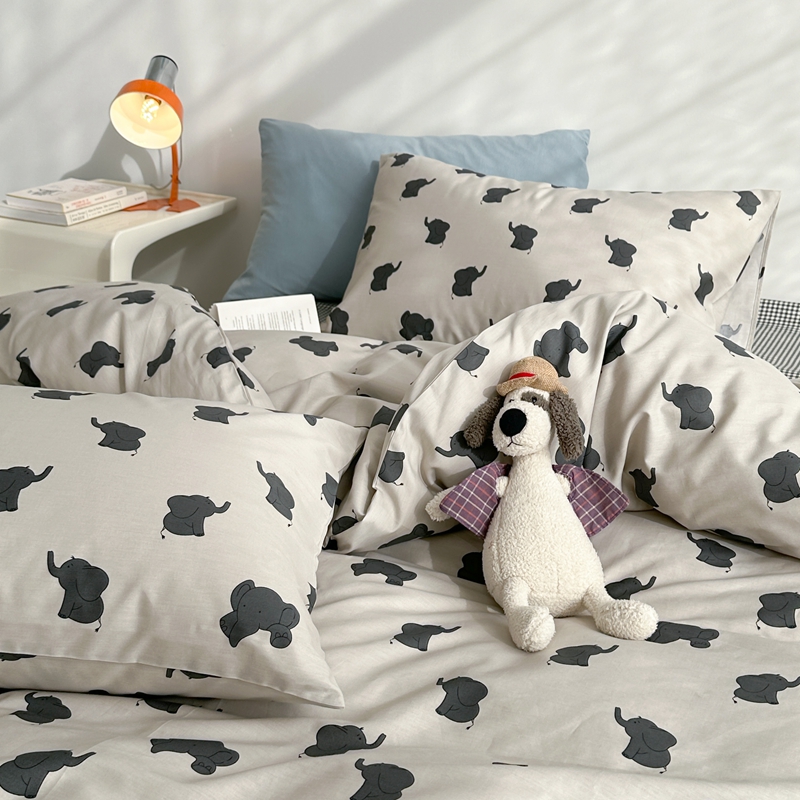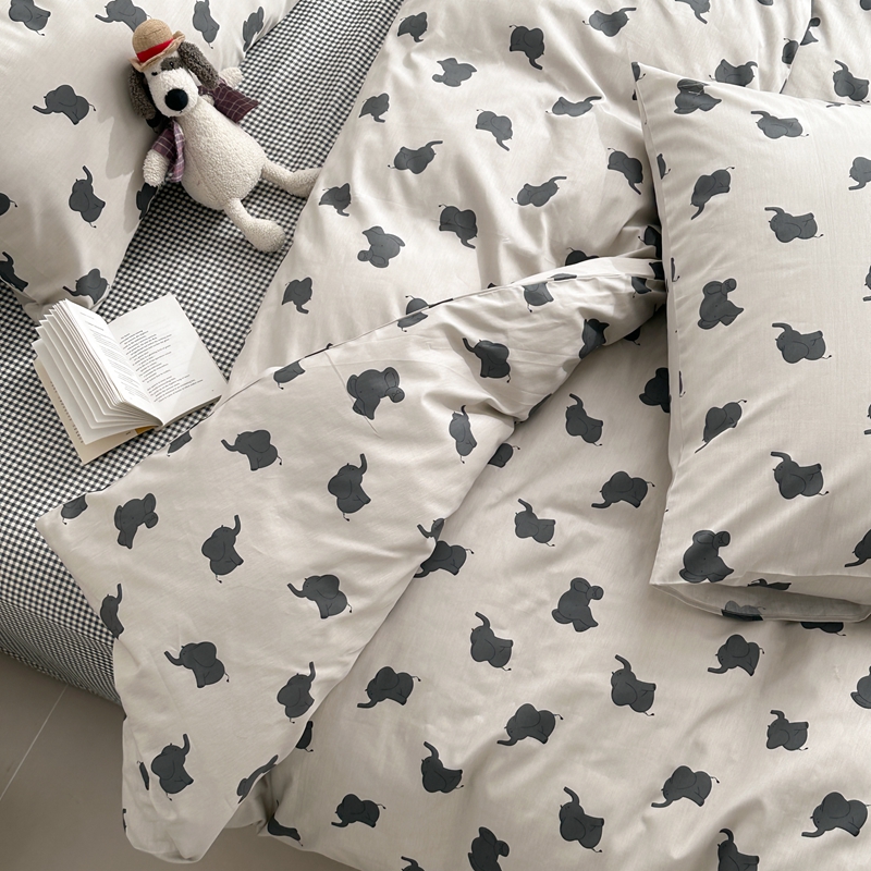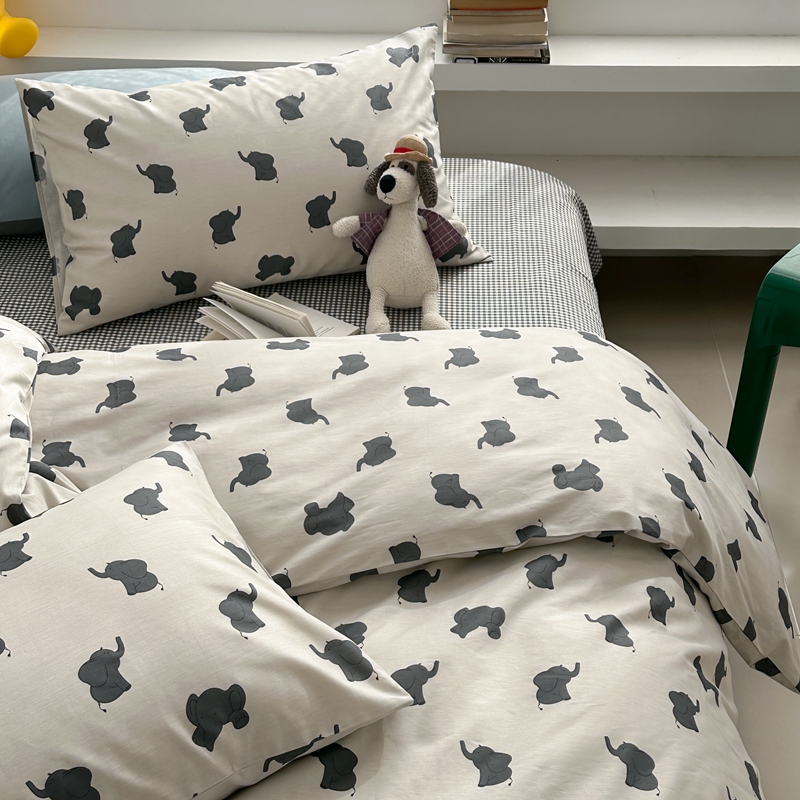 当前位置: 91家纺网 > 商品网购 > 床品套件 > 四件套 > 全棉普通四件套 > 棉眠 2024春季新款40支13070全棉卡通四件套 小象