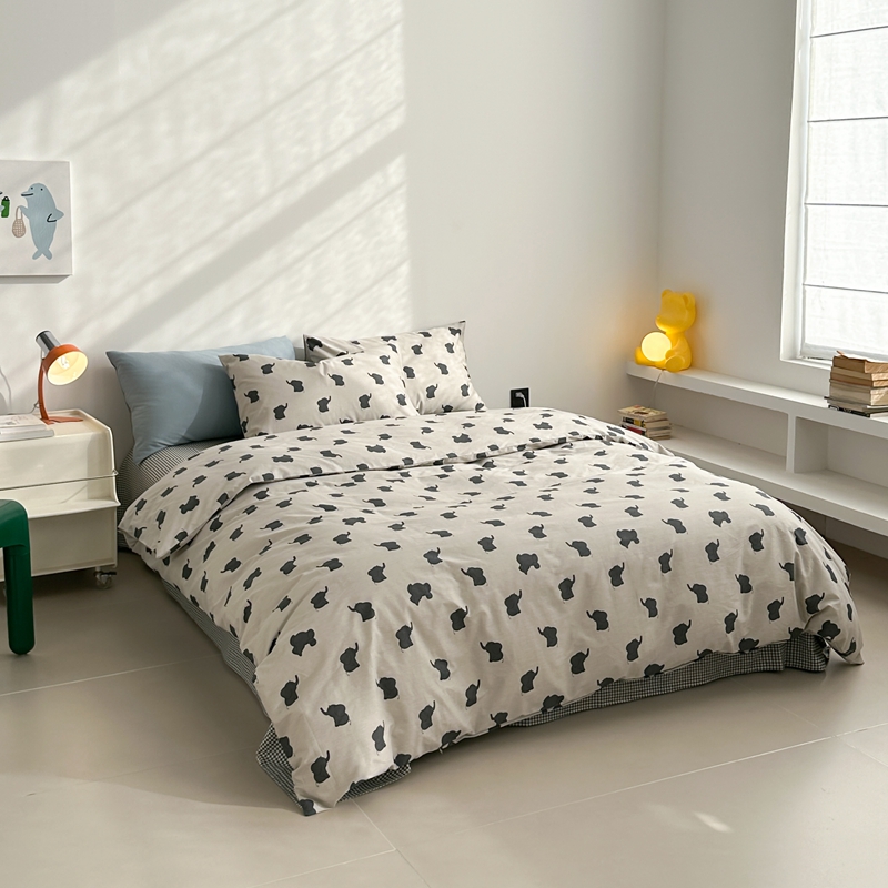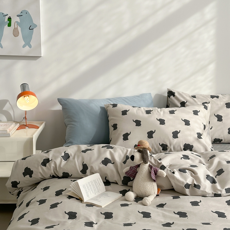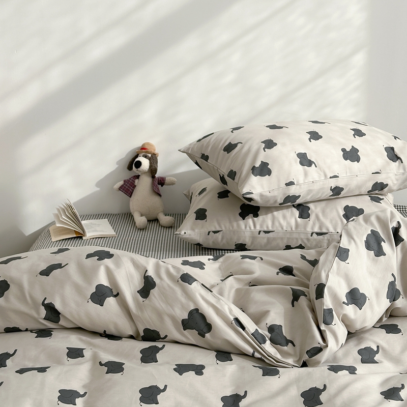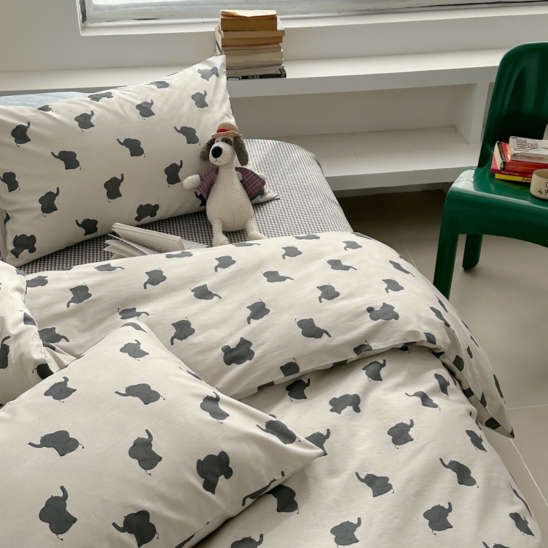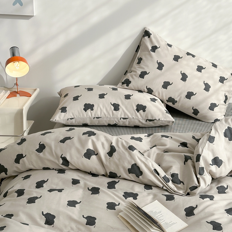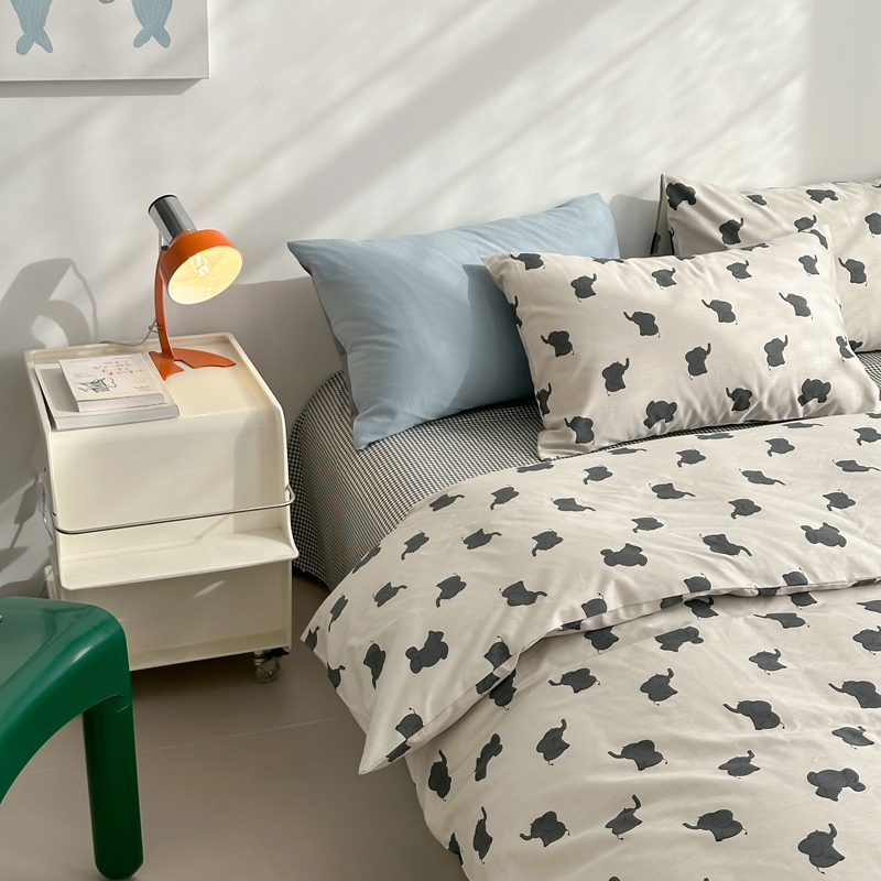 当前位置: 91家纺网 > 商品网购 > 床品套件 > 四件套 > 全棉普通四件套 > 棉眠 2024春季新款40支13070全棉卡通四件套 小象