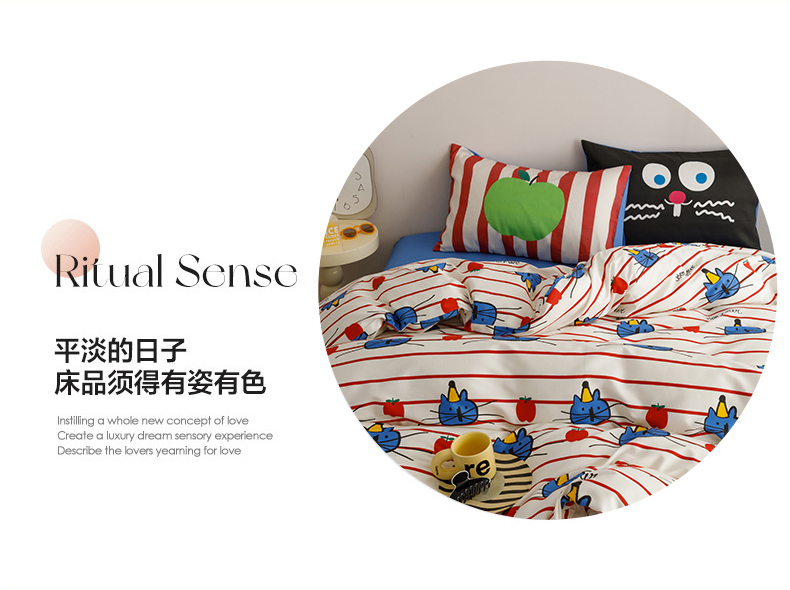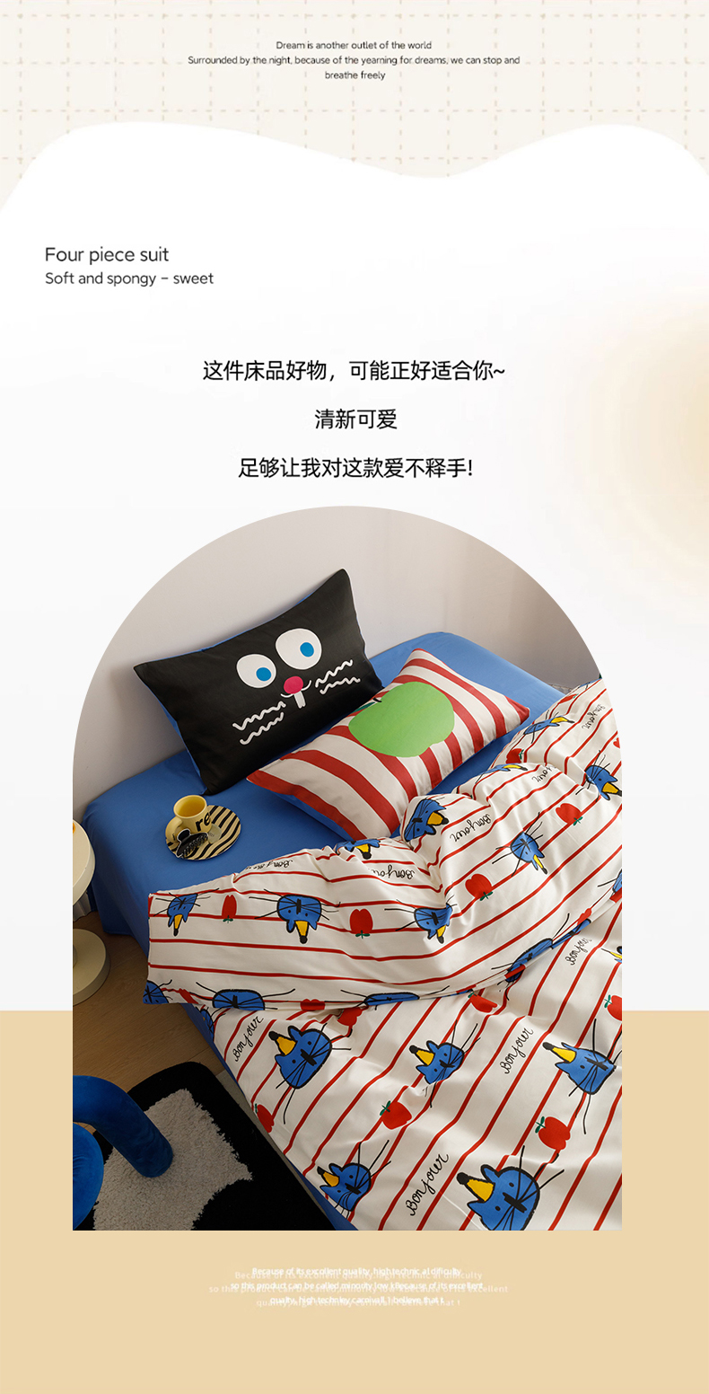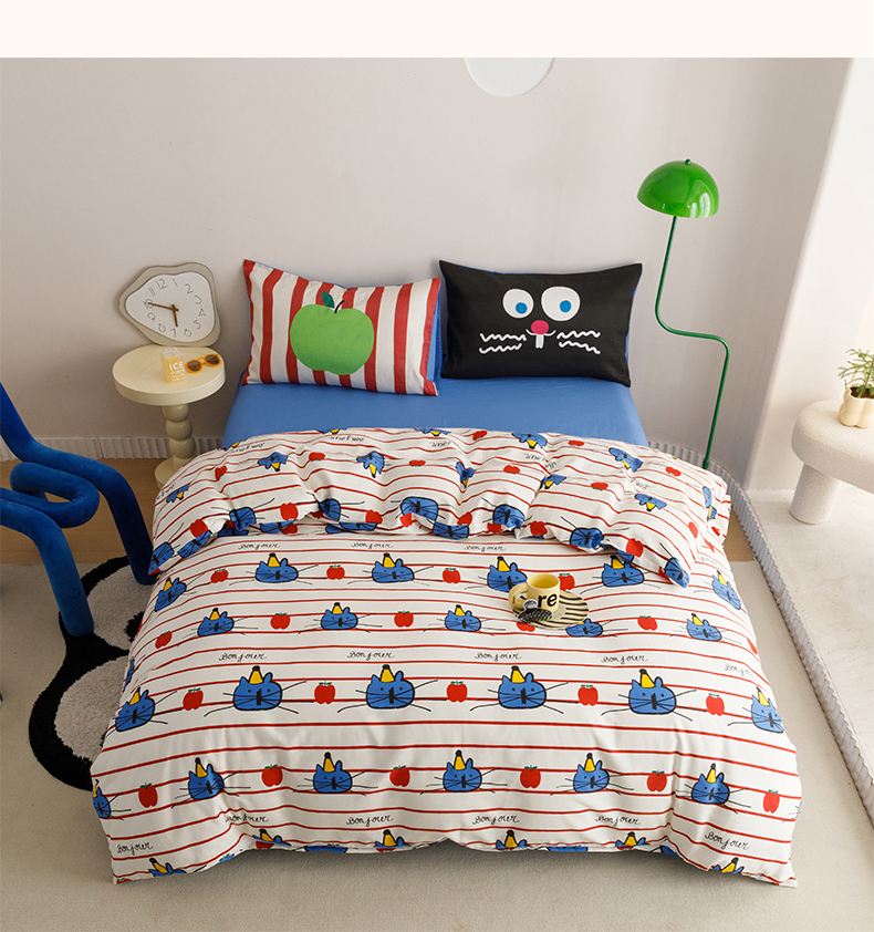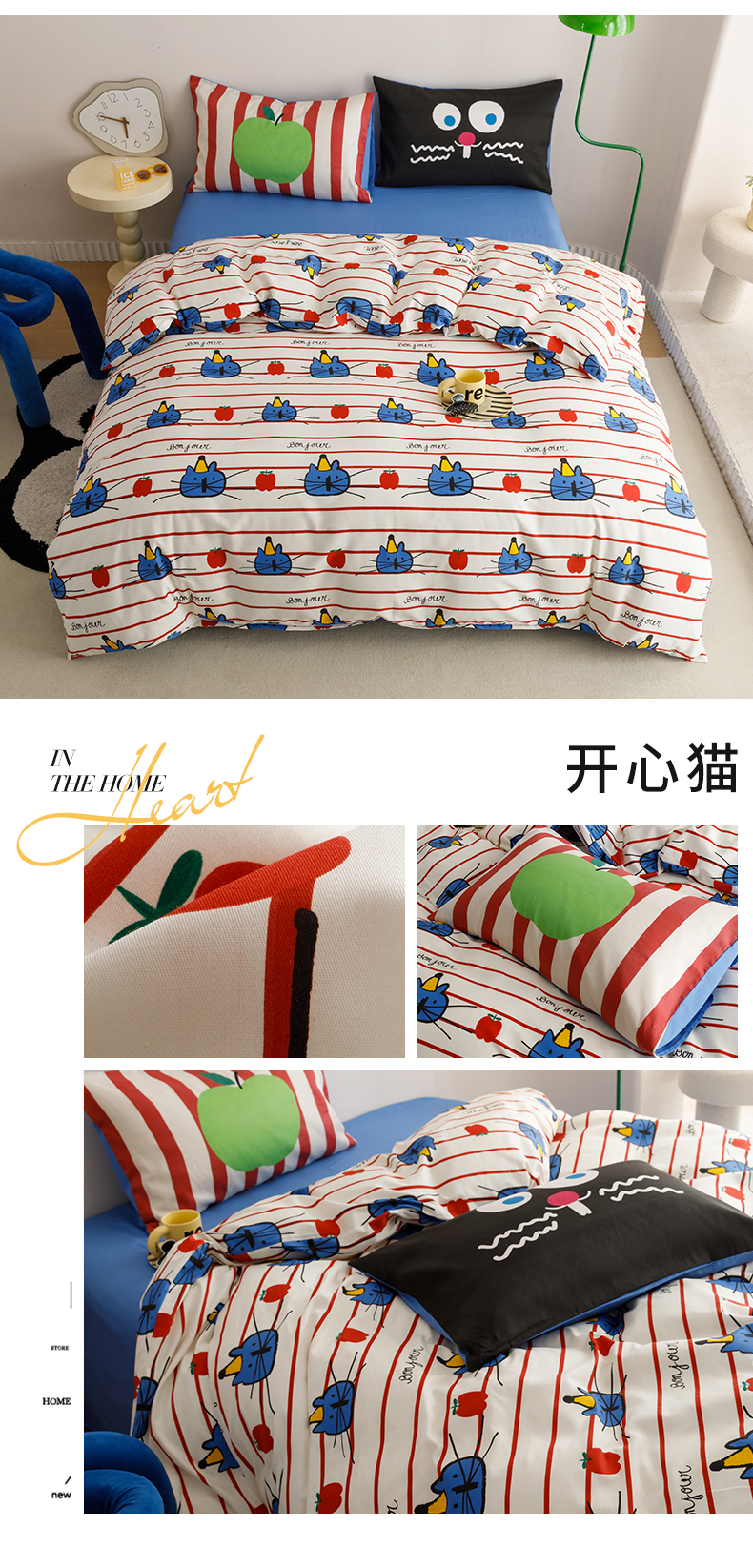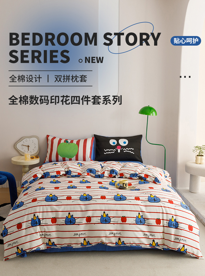 珺柔家纺 2024年款13070全棉数码印花四件套 开心猫