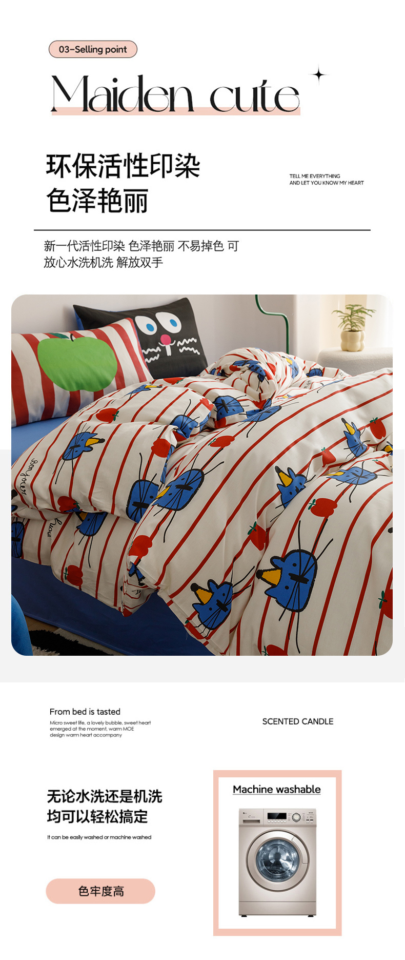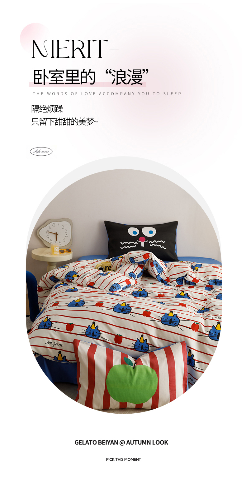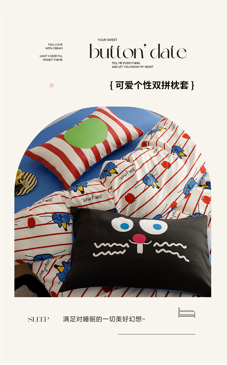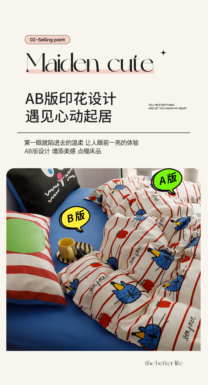 珺柔家纺 2024年款13070全棉数码印花四件套 开心猫