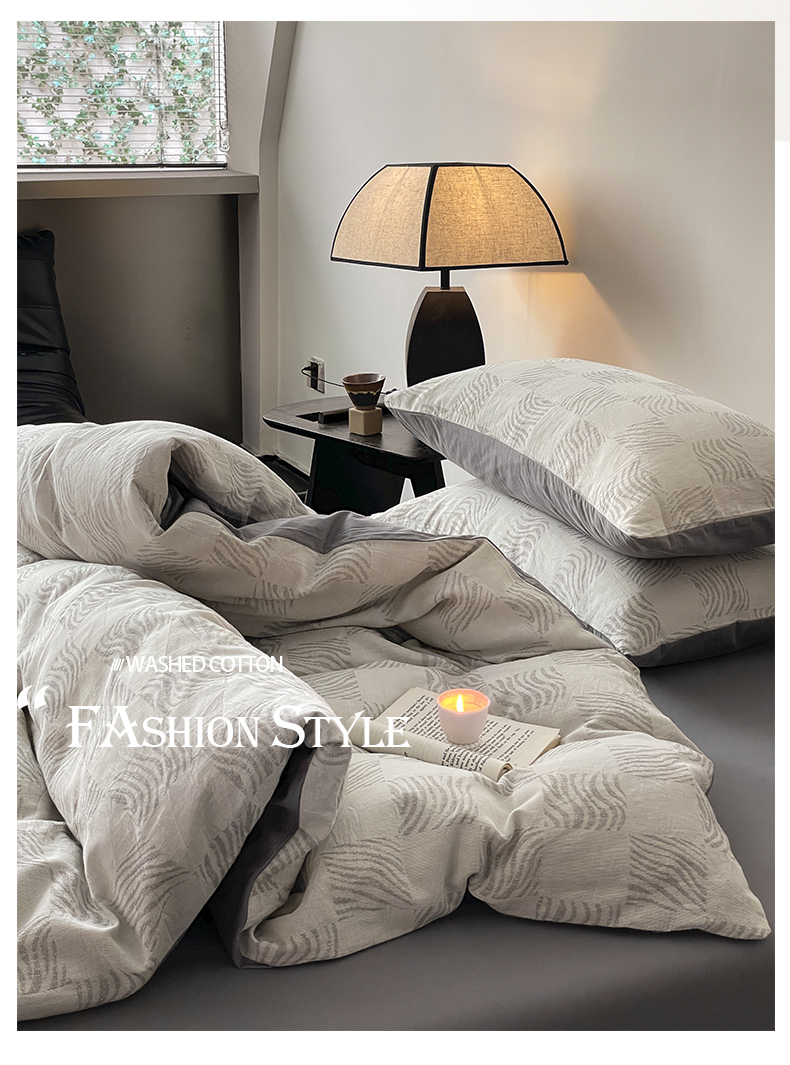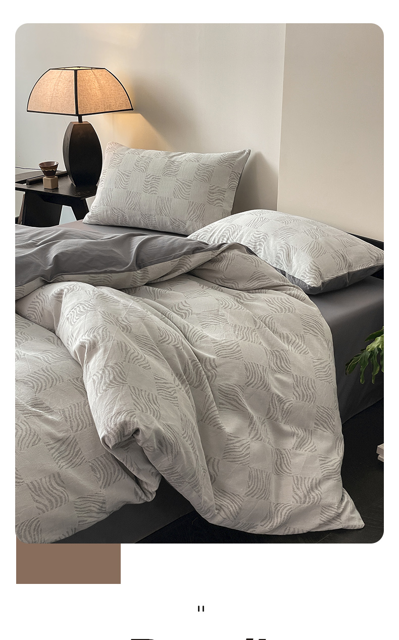 商品名称:(总)ab家纺 2024新款全棉三层纱提花四件套系列-方格