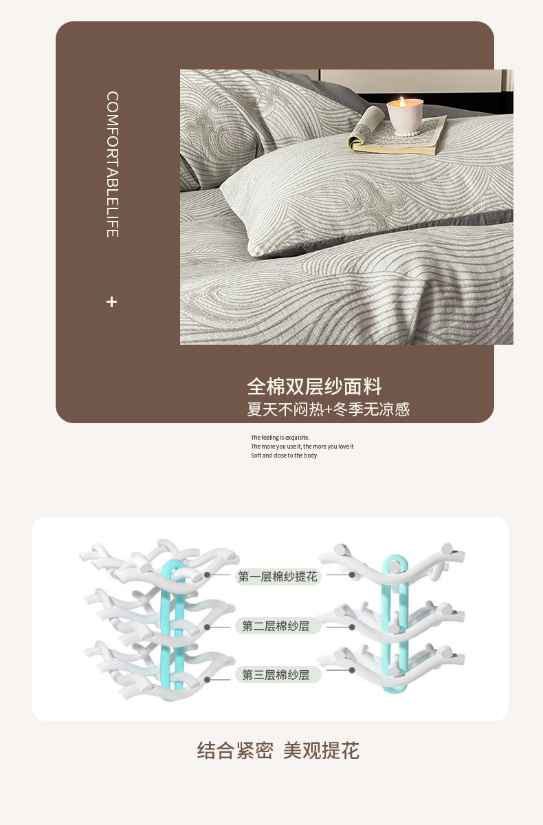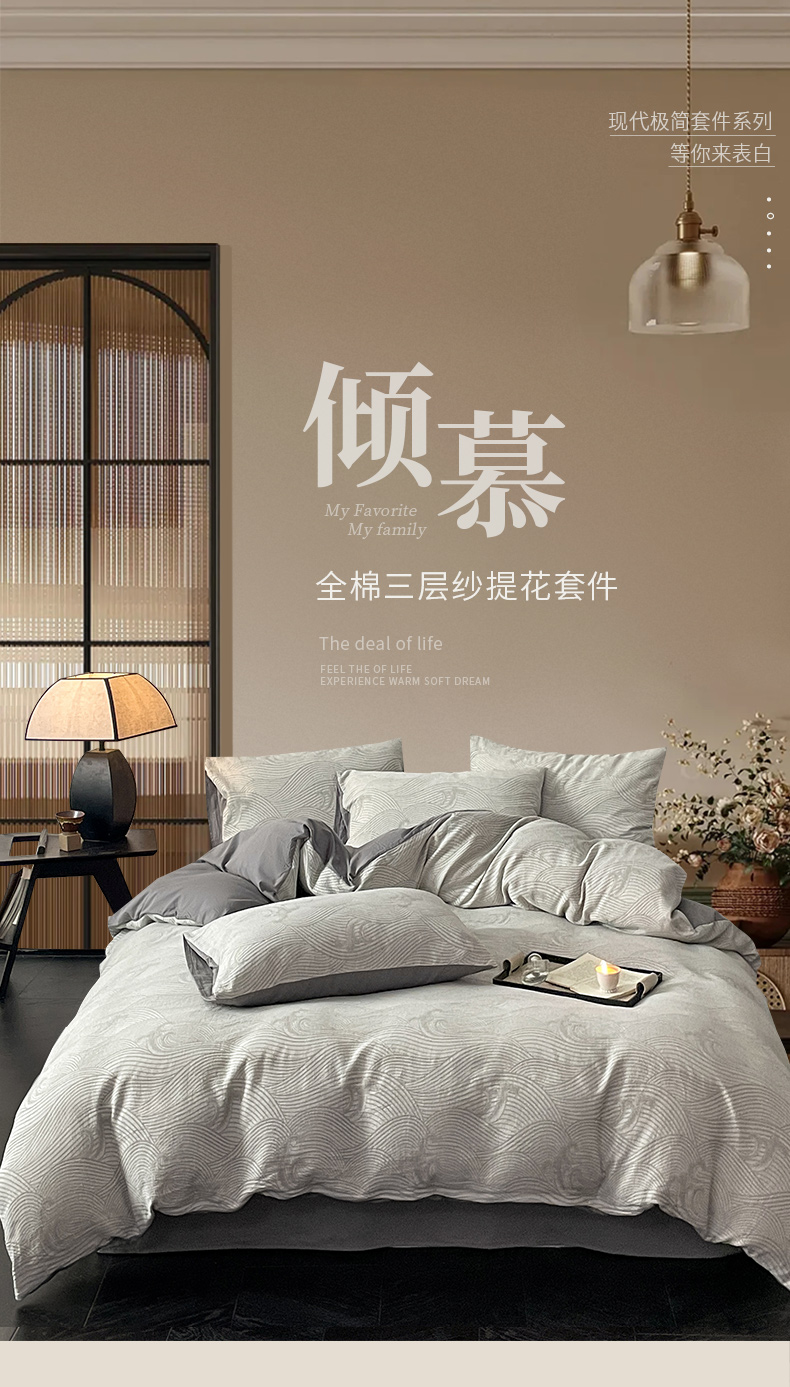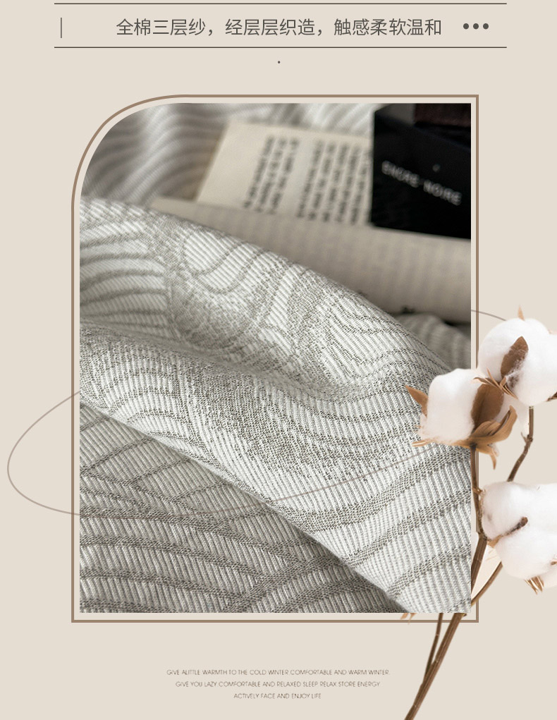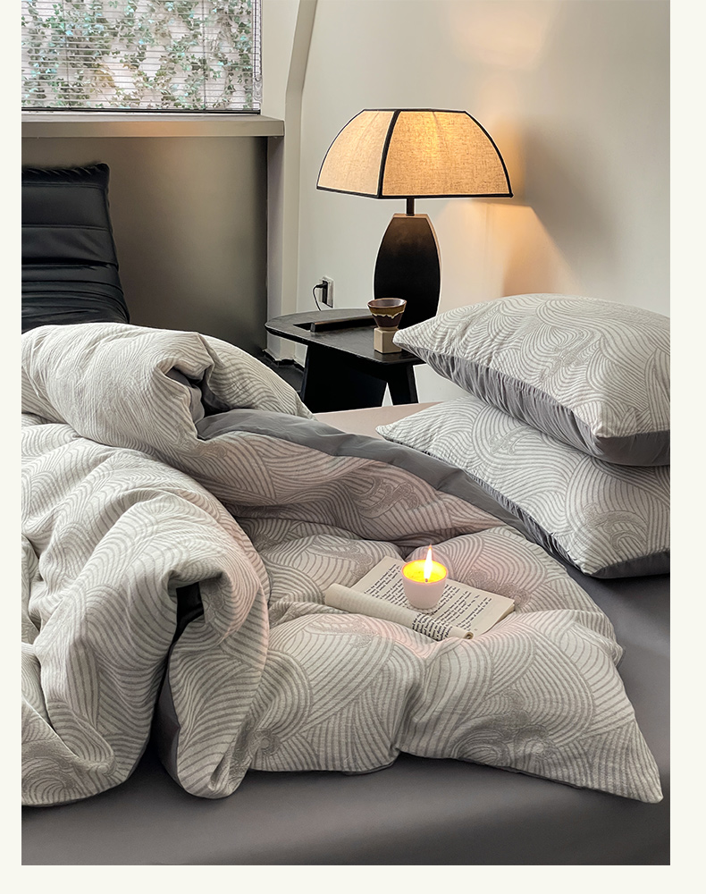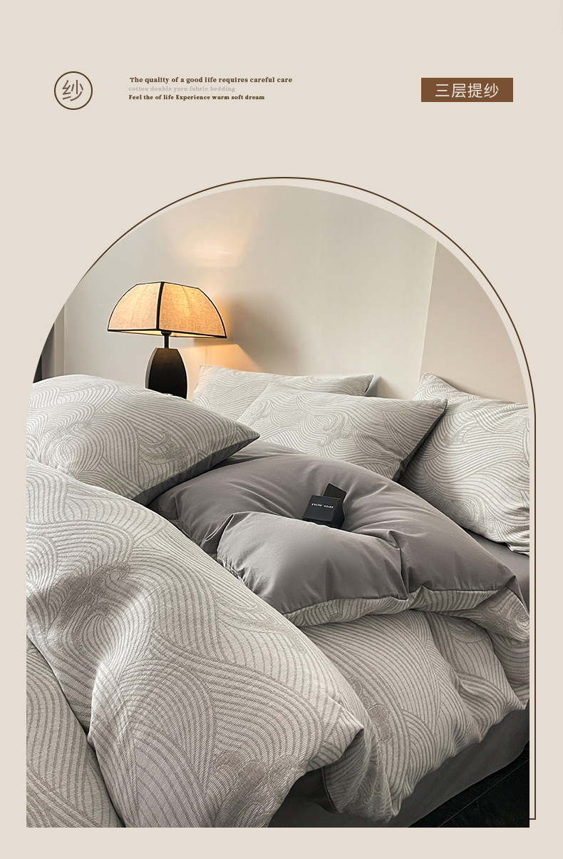 ab家纺 2024新款全棉三层纱提花四件套系列-浪花 浪花灰