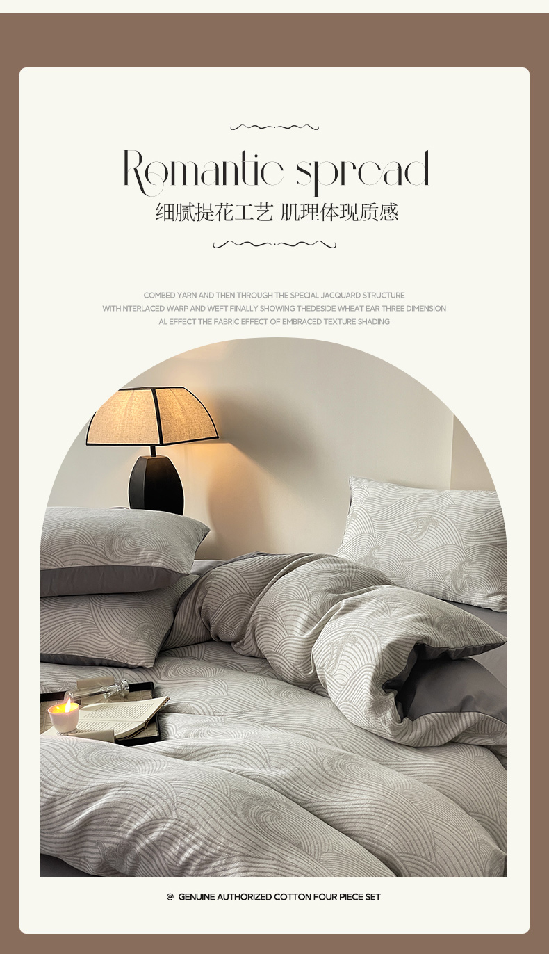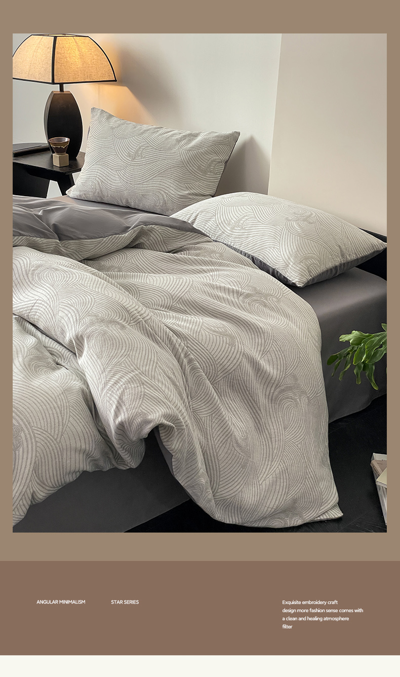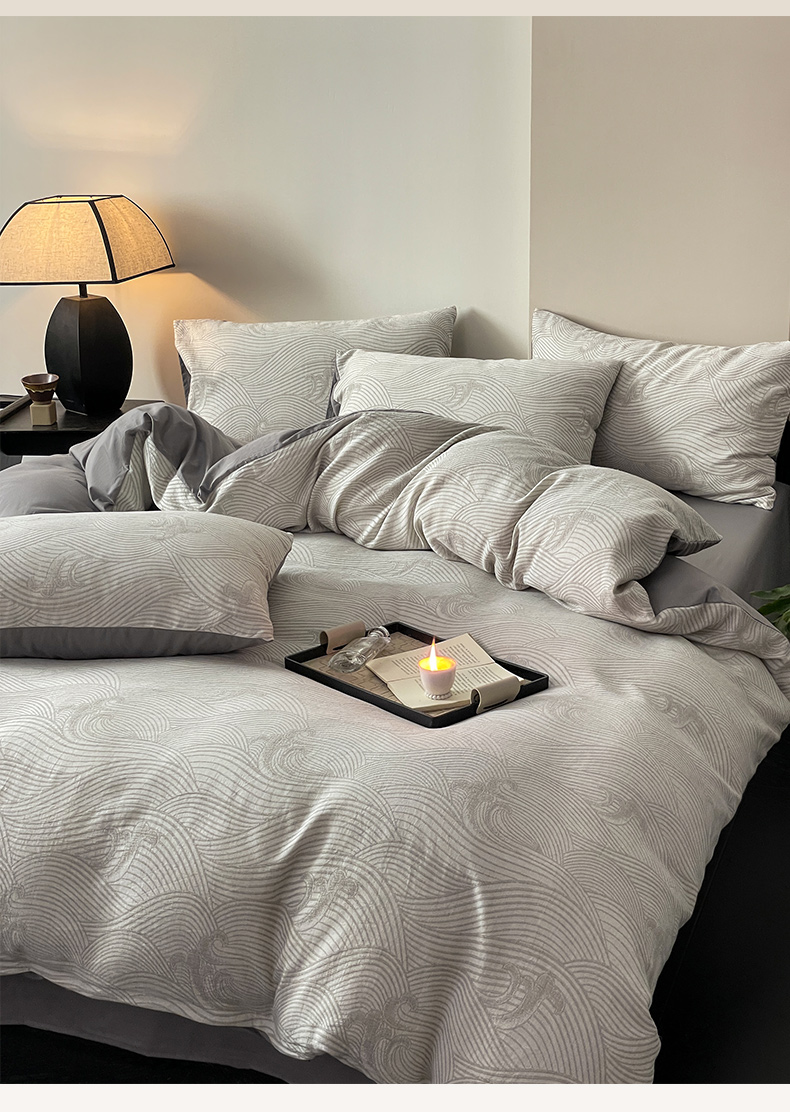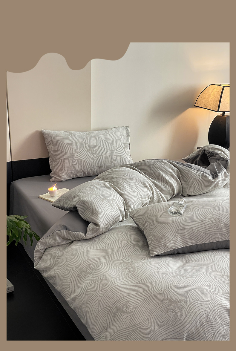 商品名称:ab家纺 2024新款全棉三层纱提花四件套系列-浪花 浪花灰