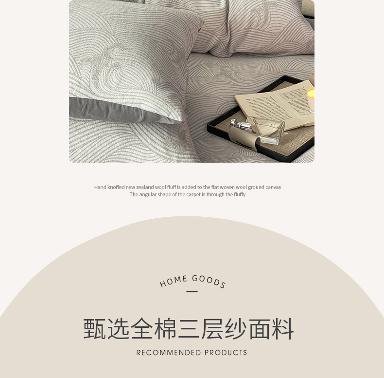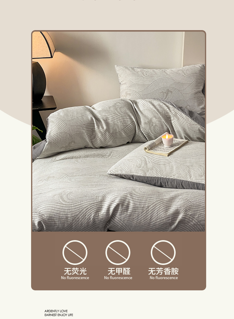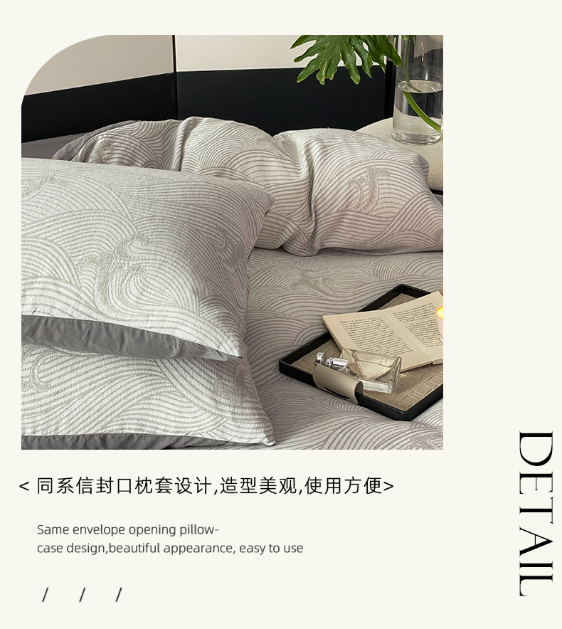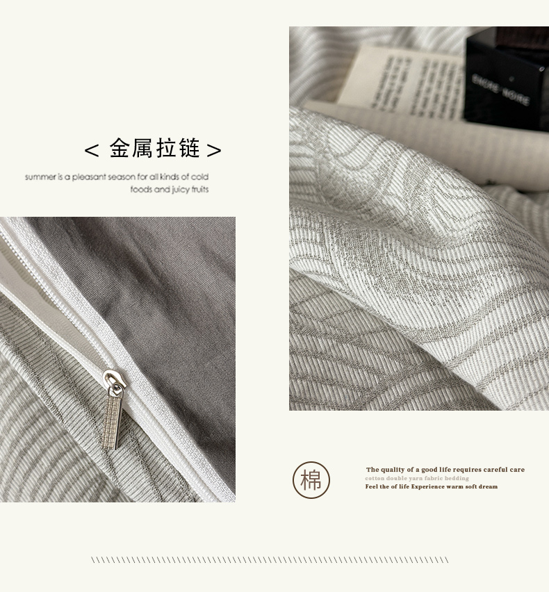 商品名称:ab家纺 2024新款全棉三层纱提花四件套系列-浪花 浪花灰