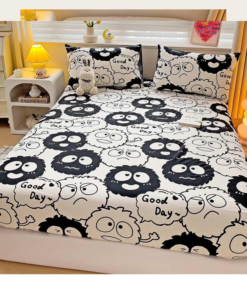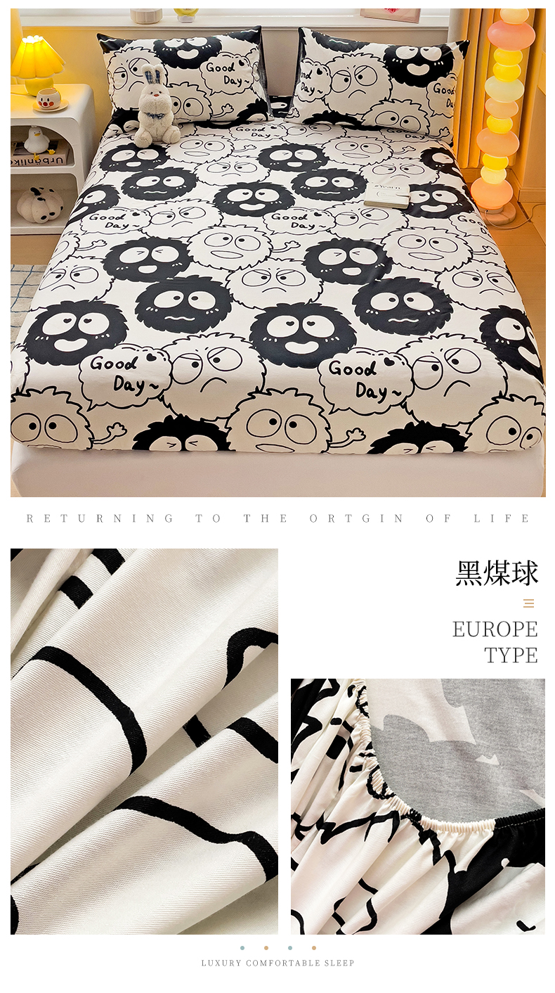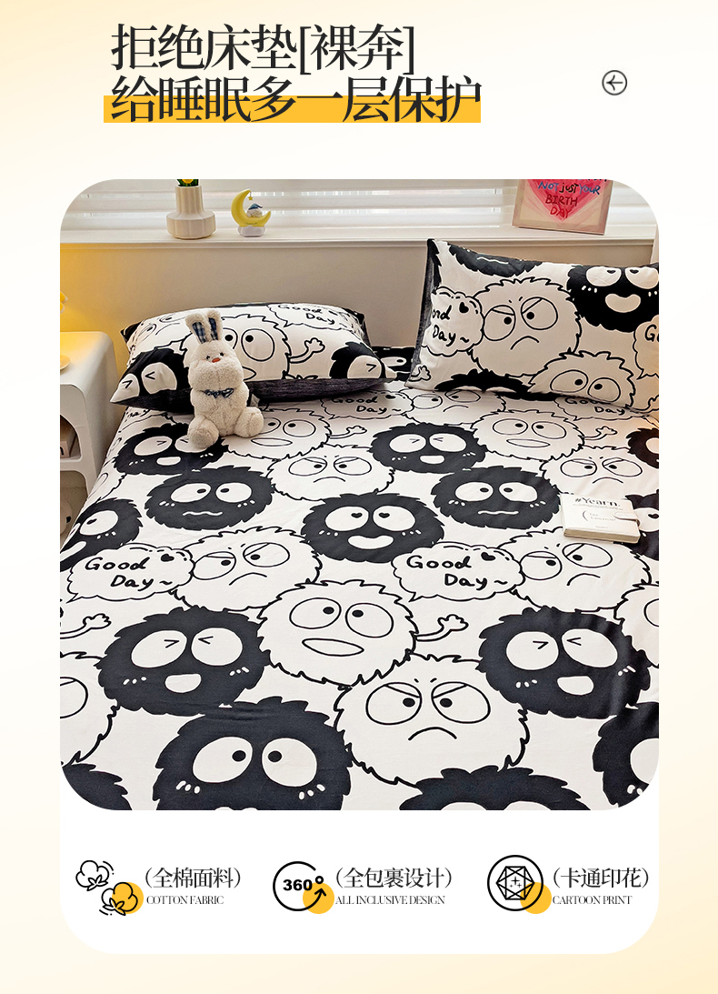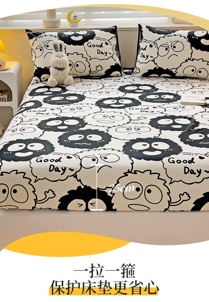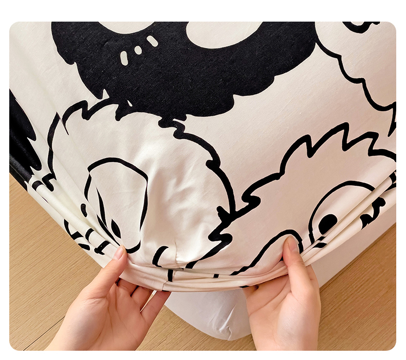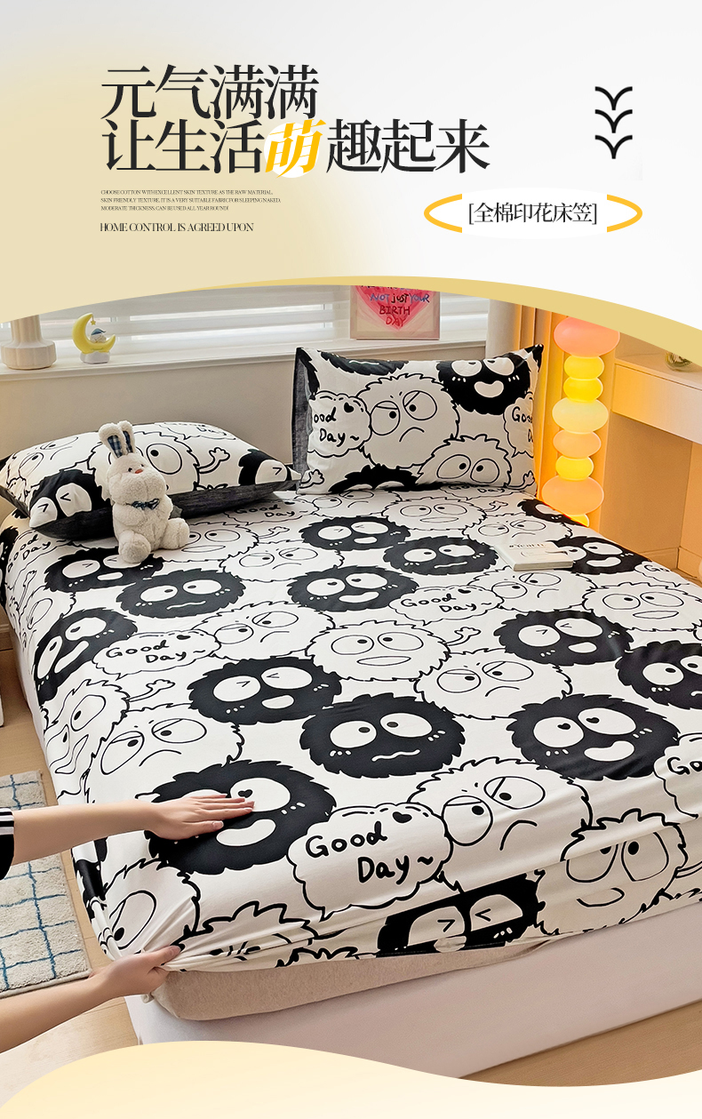 名兮家居 2024新款全棉印花单床笠 黑煤球