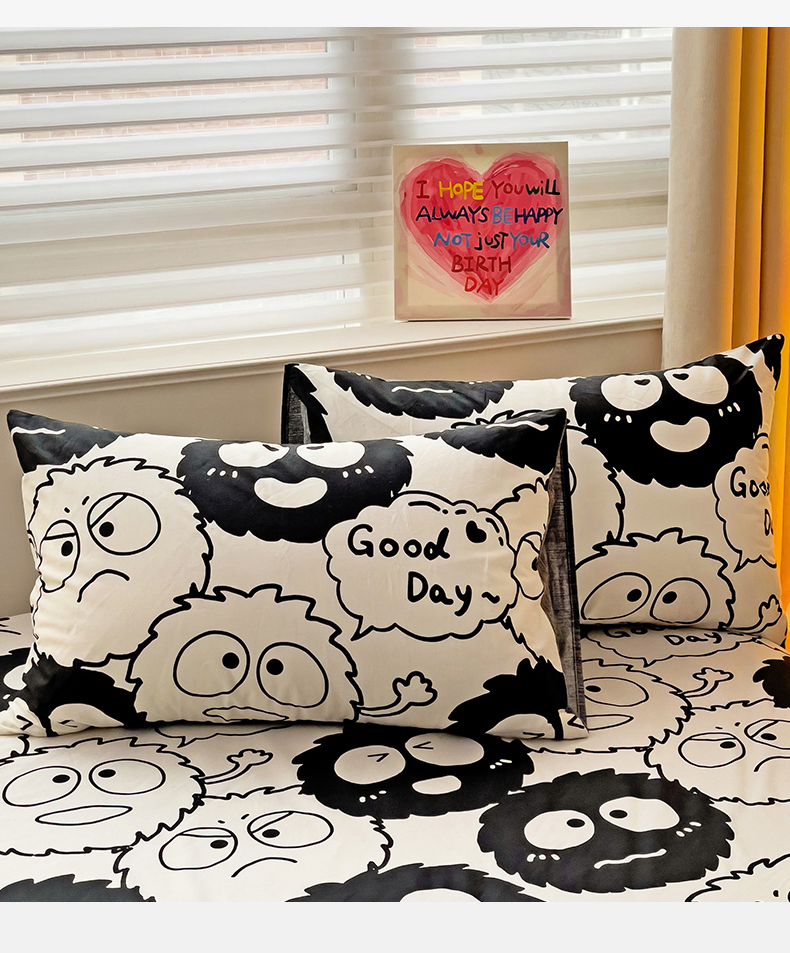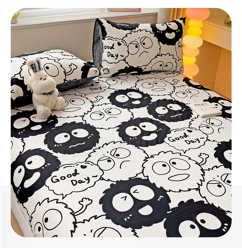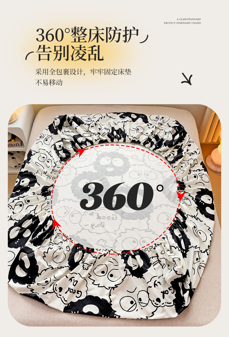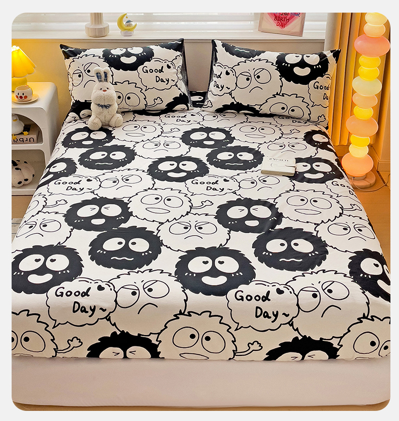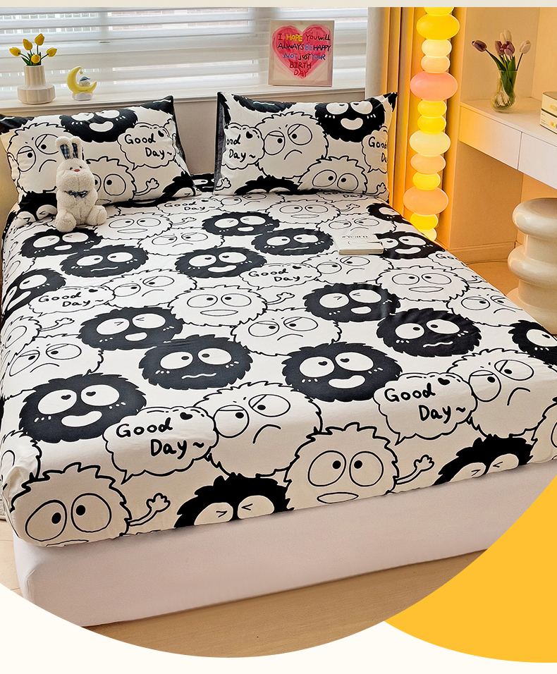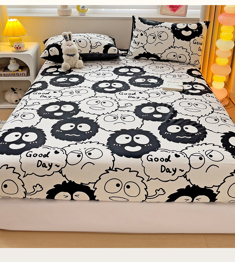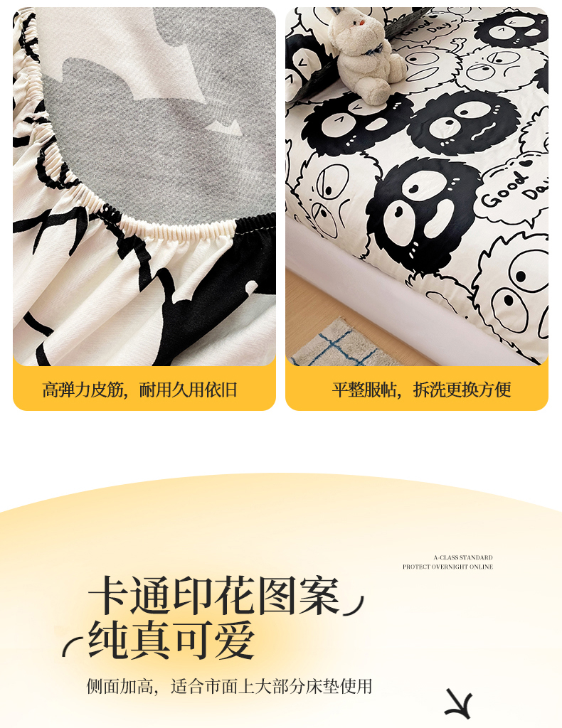 名兮家居 2024新款全棉印花单床笠 黑煤球