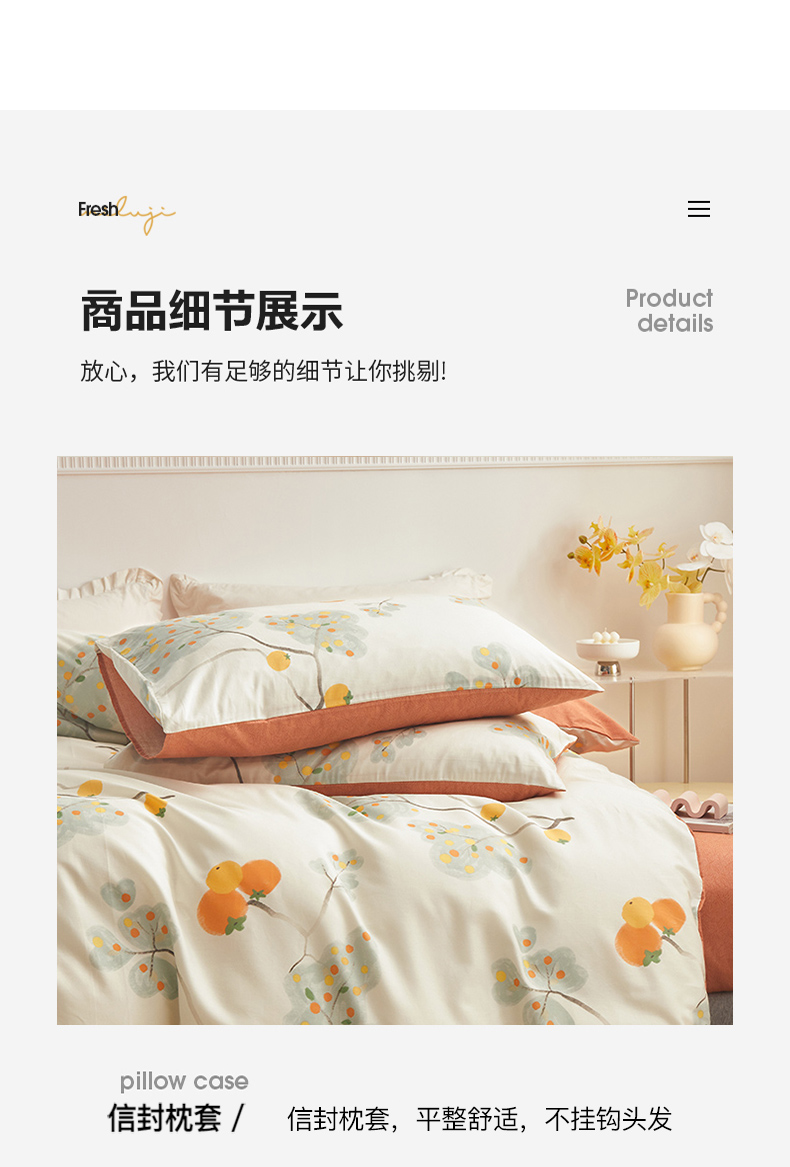 当前位置: 91家纺网 > 商品网购 > 床品套件 > 四件套 > 全棉普通四件套 > 绫韵 2024新款全棉13372清新小碎花纯棉四件套 柿柿如意