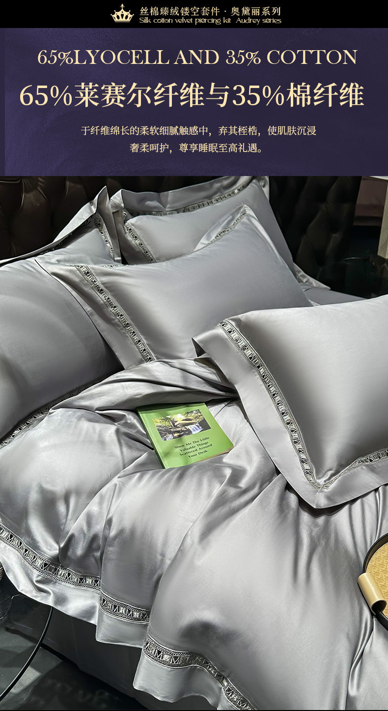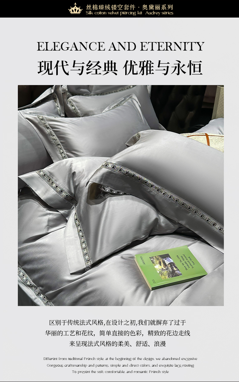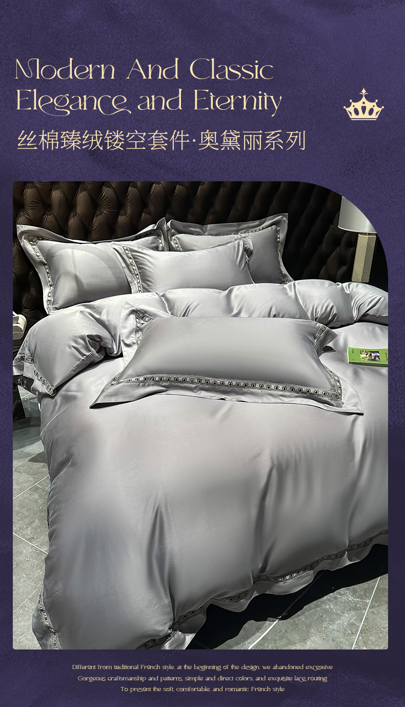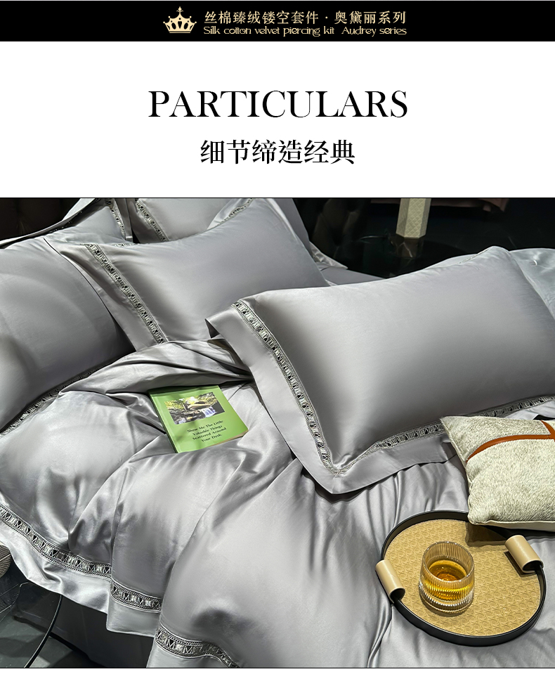 栩裕纺织 2024新款丝棉臻绒镂空工艺四件套-奥黛丽系列 奥黛丽-绅士灰