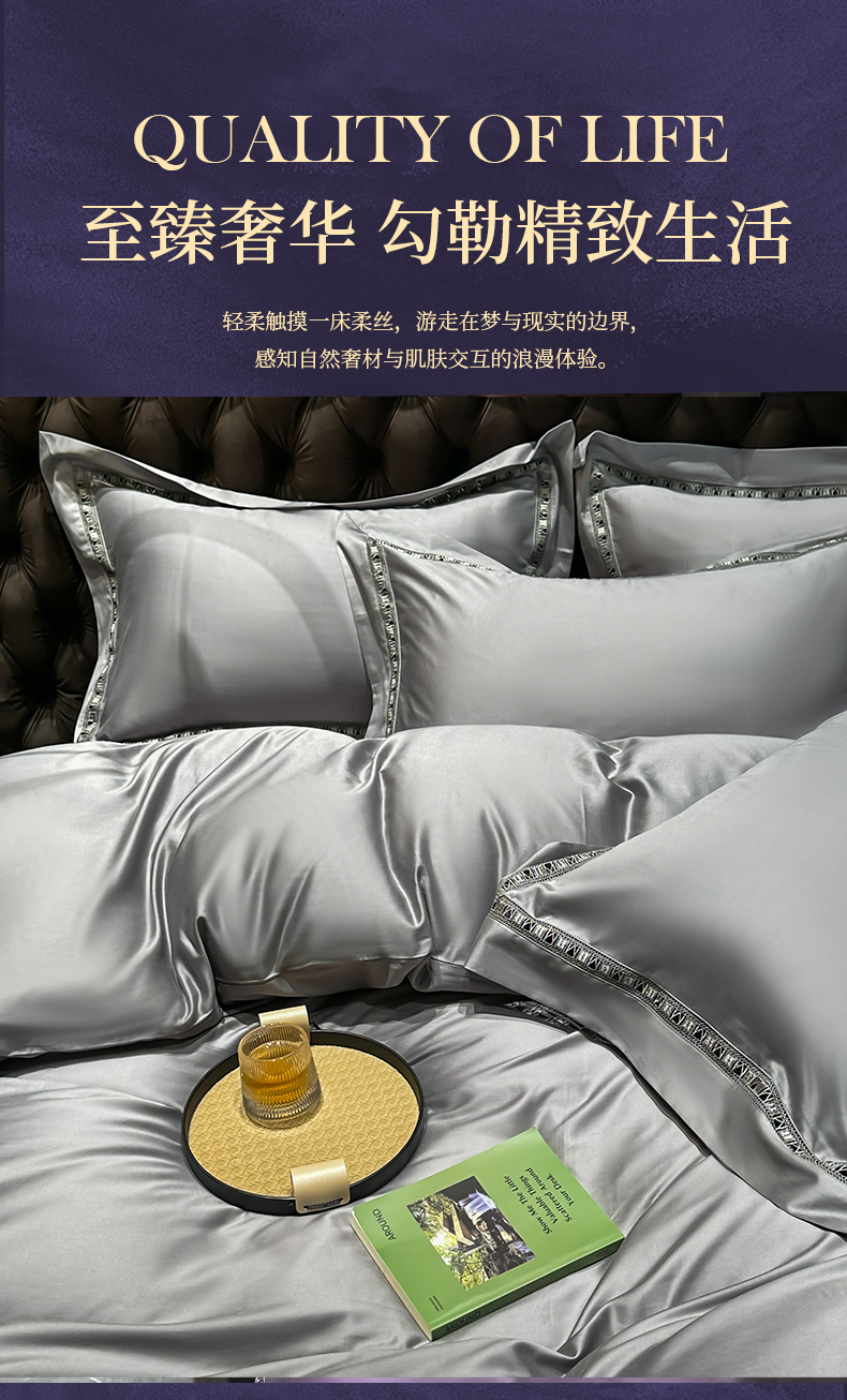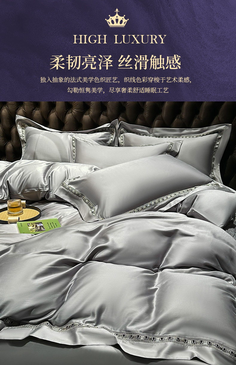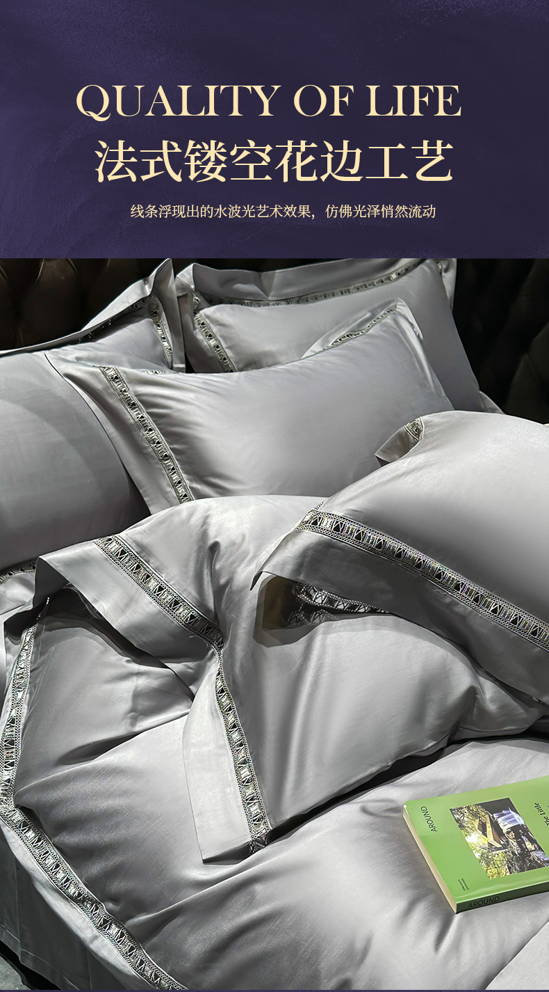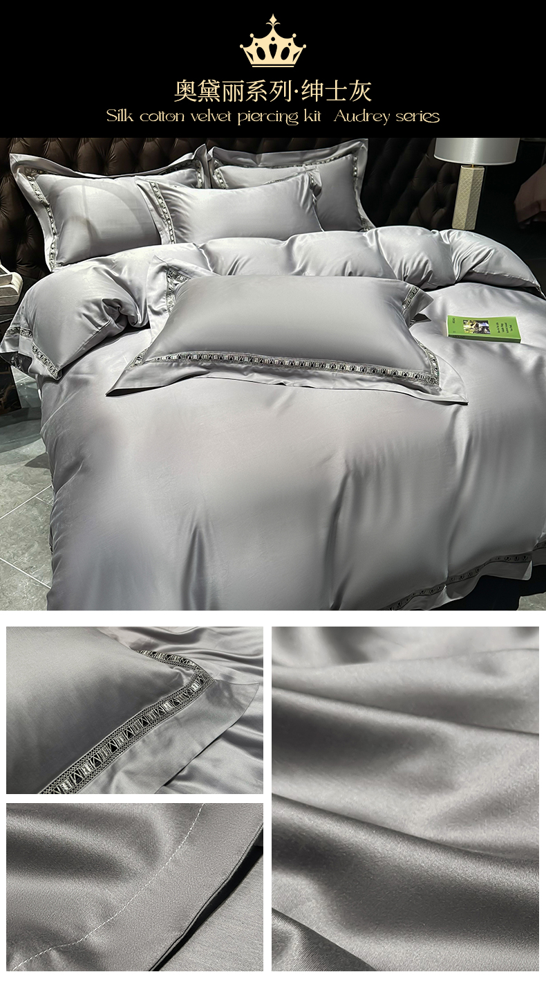 栩裕纺织 2024新款丝棉臻绒镂空工艺四件套-奥黛丽系列 奥黛丽-绅士灰