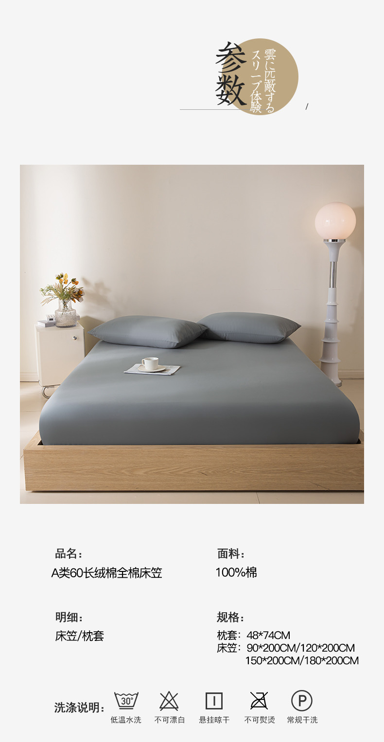 商品名称:卧趣家纺 2024新品A类全棉长绒棉单品床笠 月岩灰