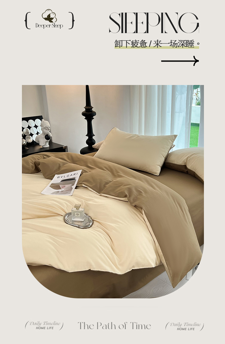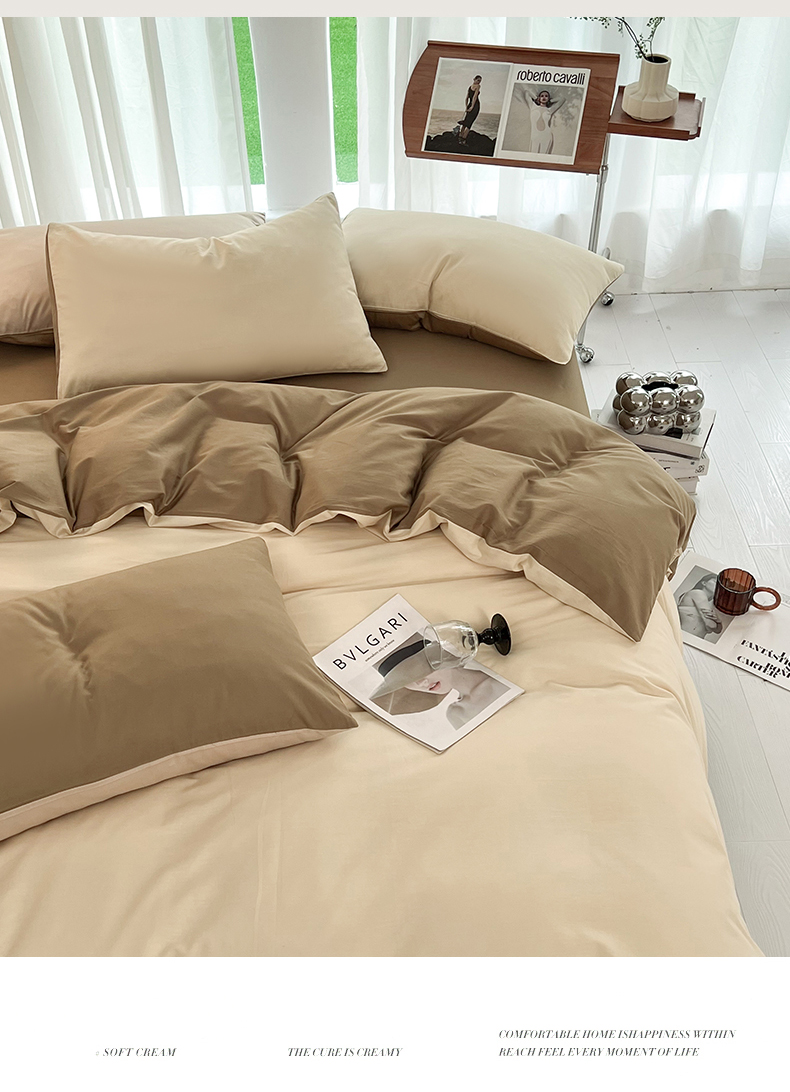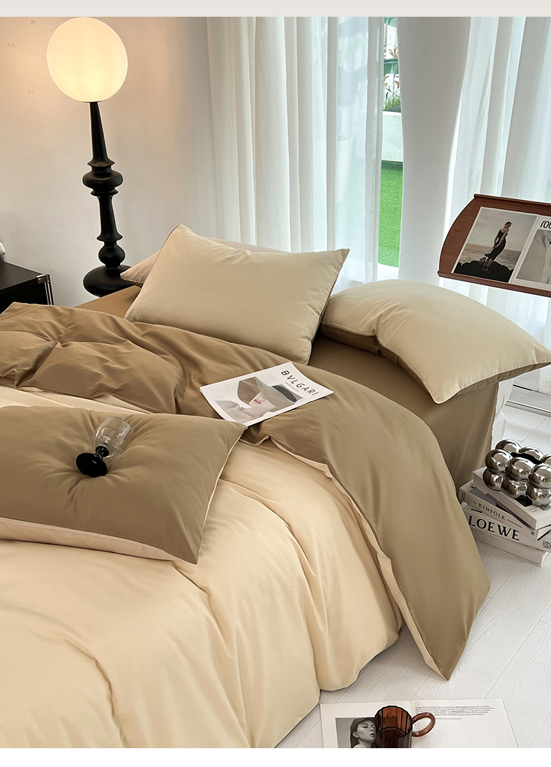 商品名称:多品家纺 2024新款全棉纯色双拼四件套 桂月