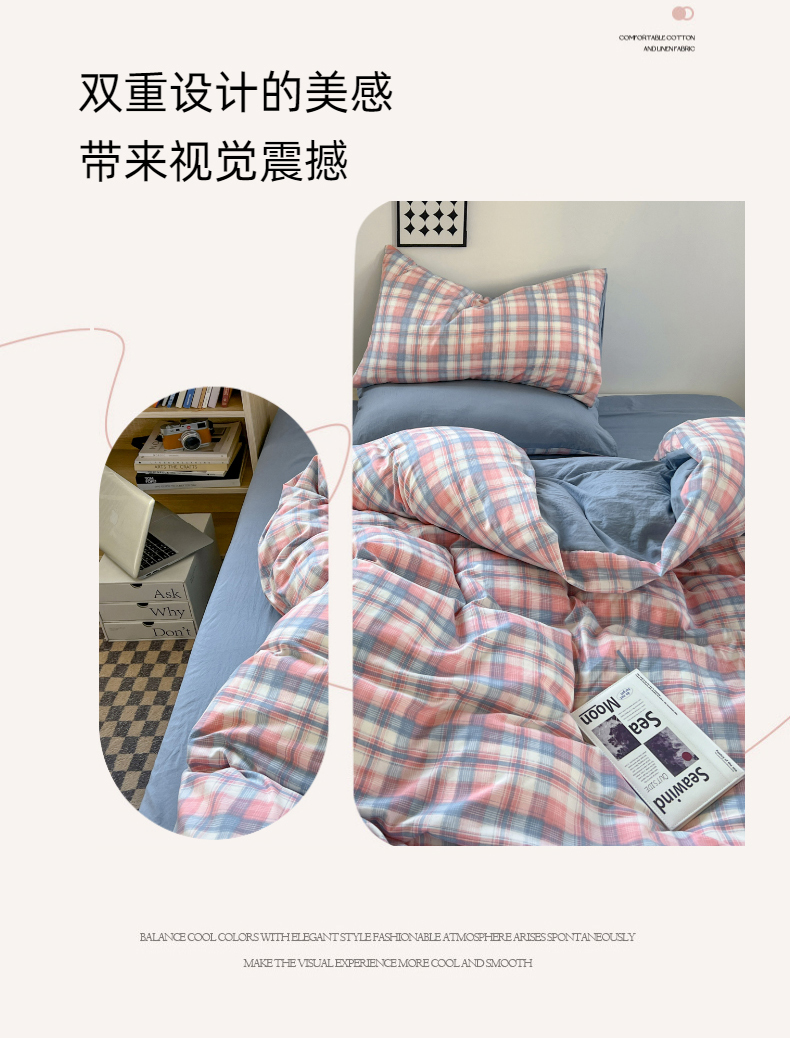 当前位置: 91家纺网 > 商品网购 > 床品套件 > 四件套 > 水洗棉四件套 > 贝拉梦家纺 2024新款日式简约款格子系水洗棉四件套套件系列-四件套 贝拉-粉