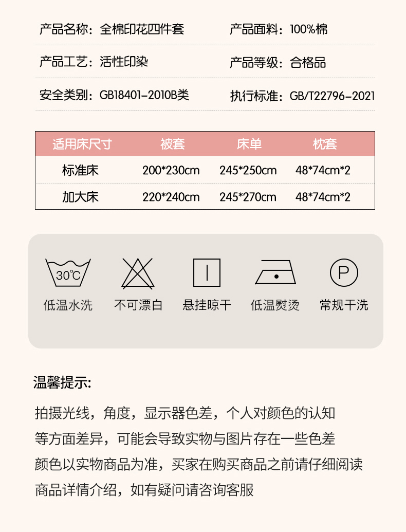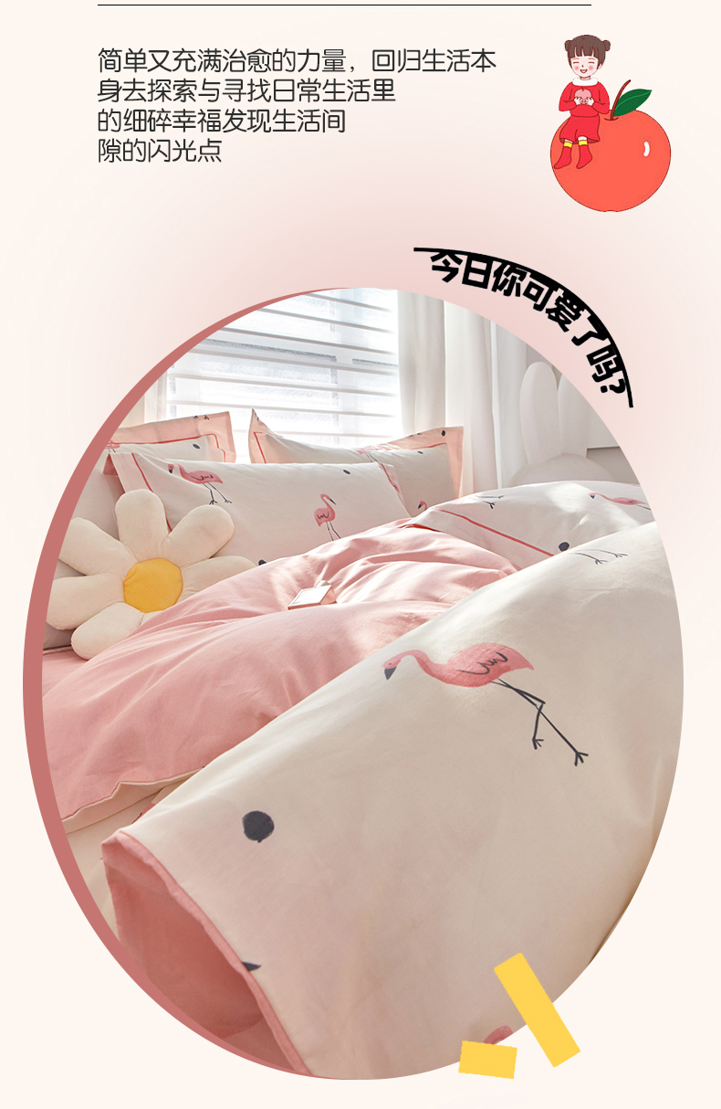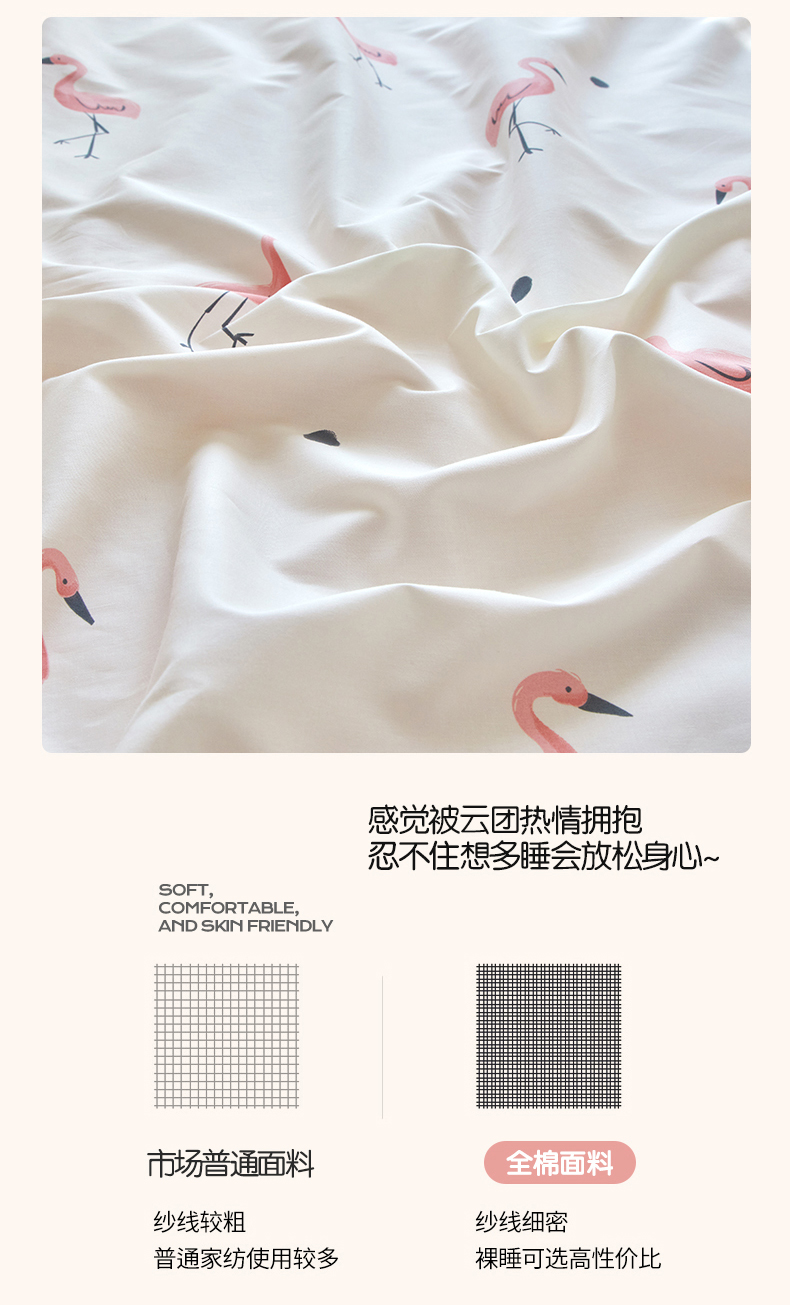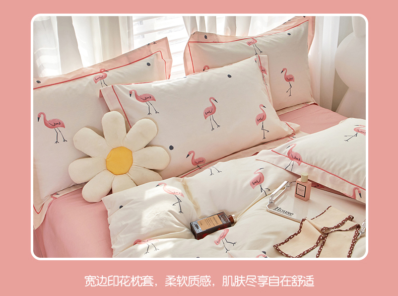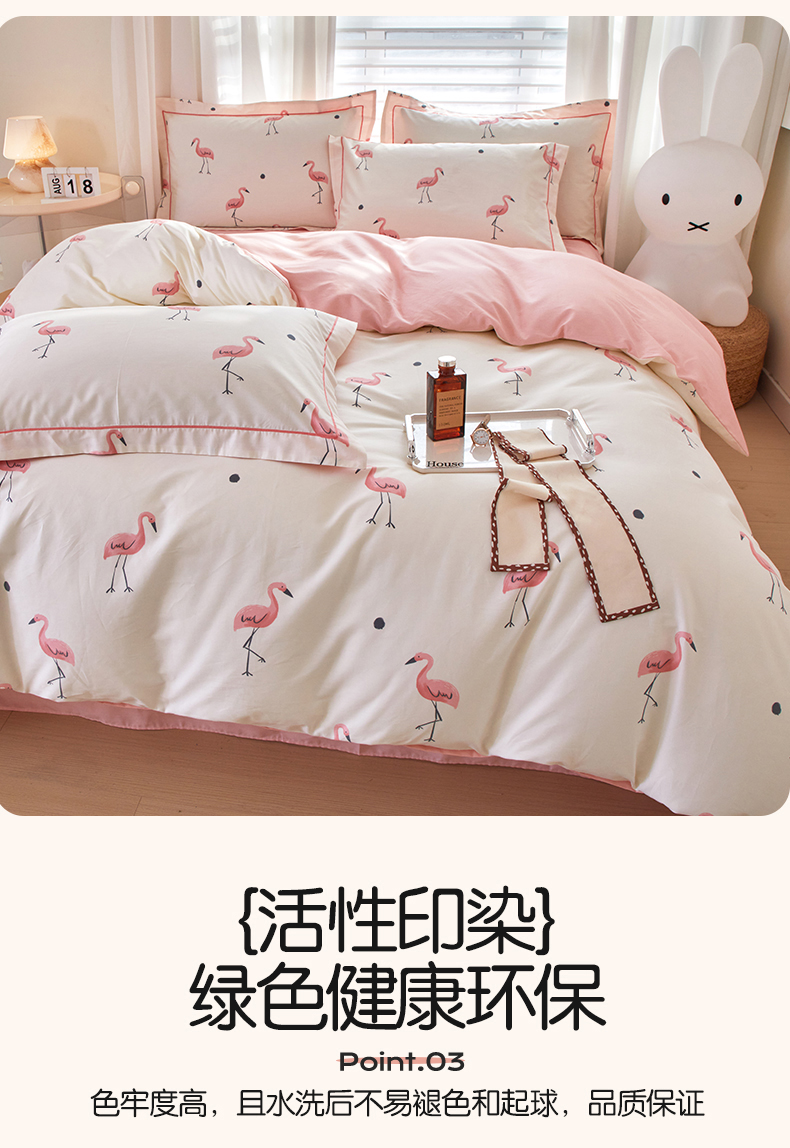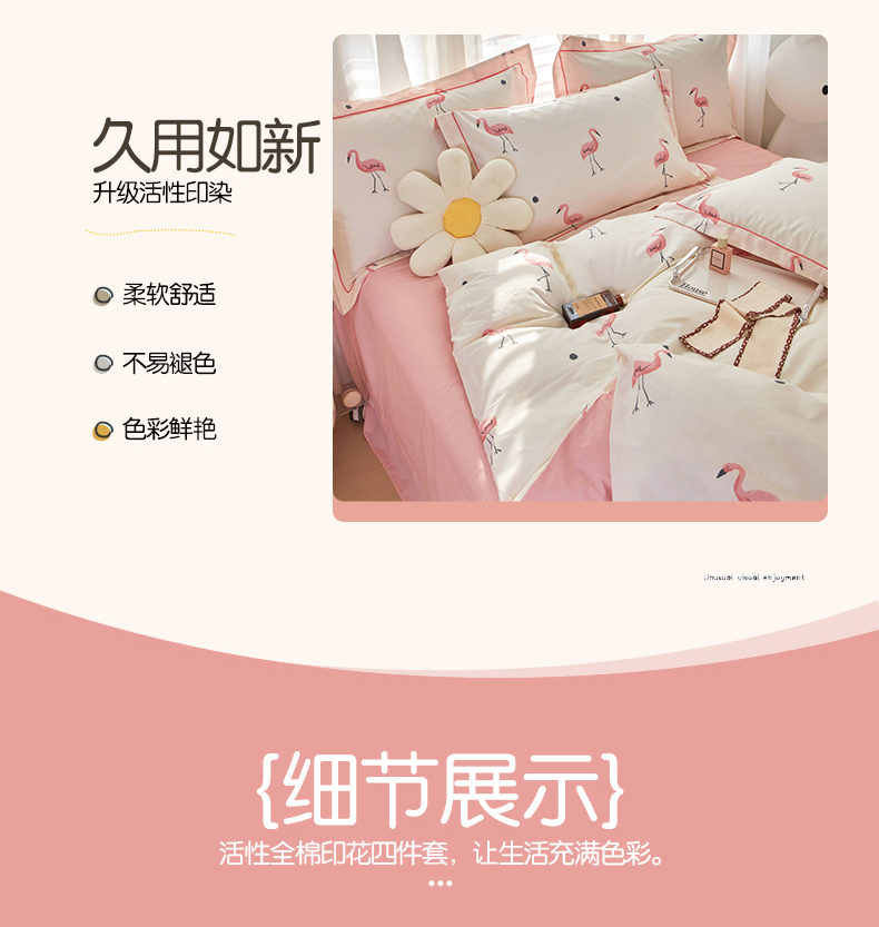 商品名称:曼秀琳家纺 2024新款活性全棉印花四件套 火烈鸟-米