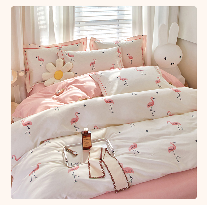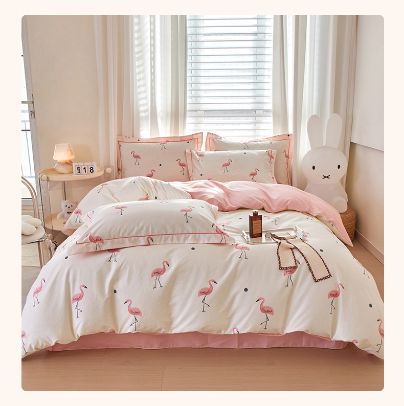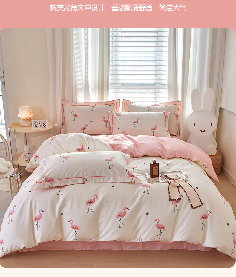 曼秀琳家纺 2024新款活性全棉印花四件套 火烈鸟-米