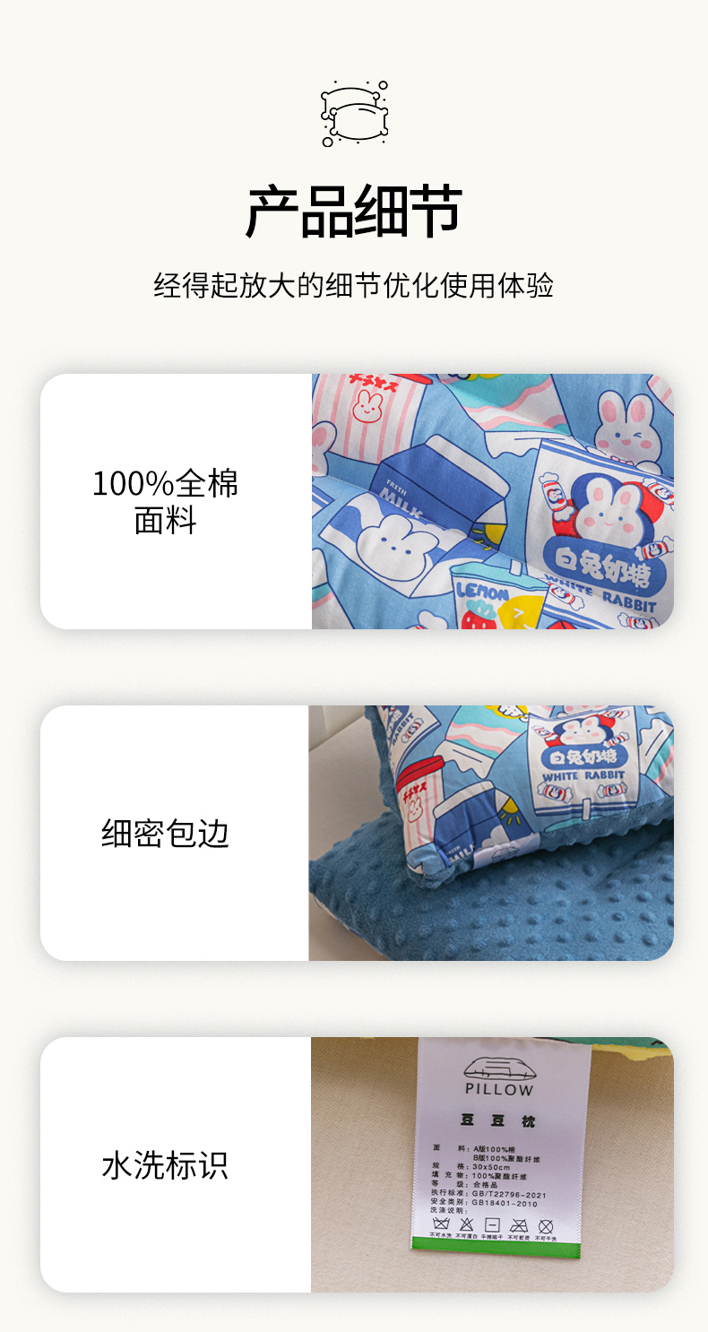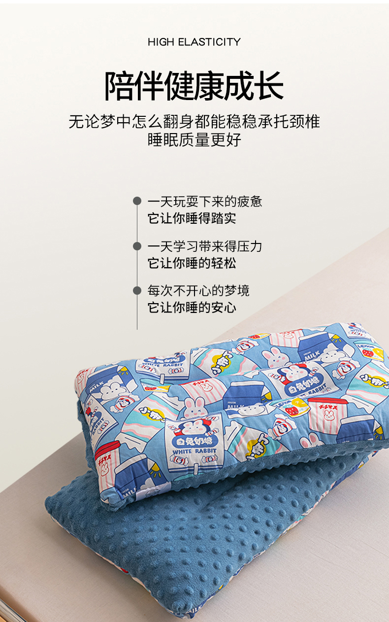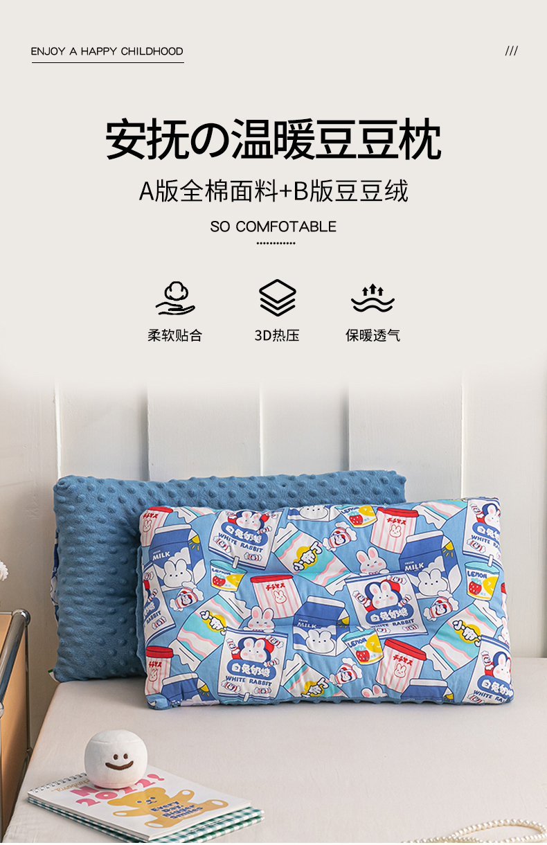 可思家纺 2024新款儿童全棉豆豆枕枕头枕芯 白兔奶糖40*60cm一只