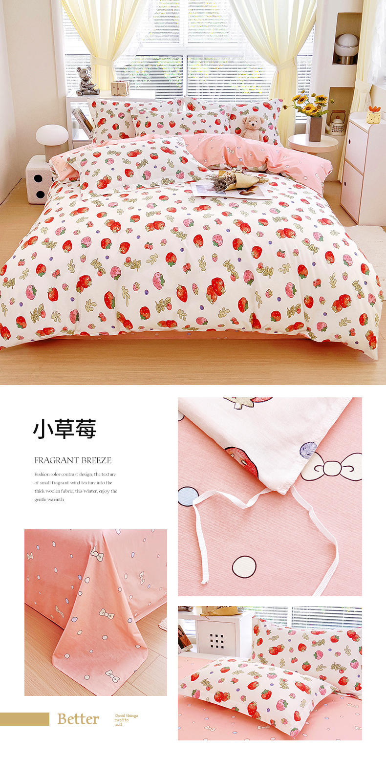 当前位置: 91家纺网 > 商品网购 > 床品套件 > 四件套 > 全棉普通四件套 > 锦罗绣 2024新款13372印花全棉四件套 小草莓