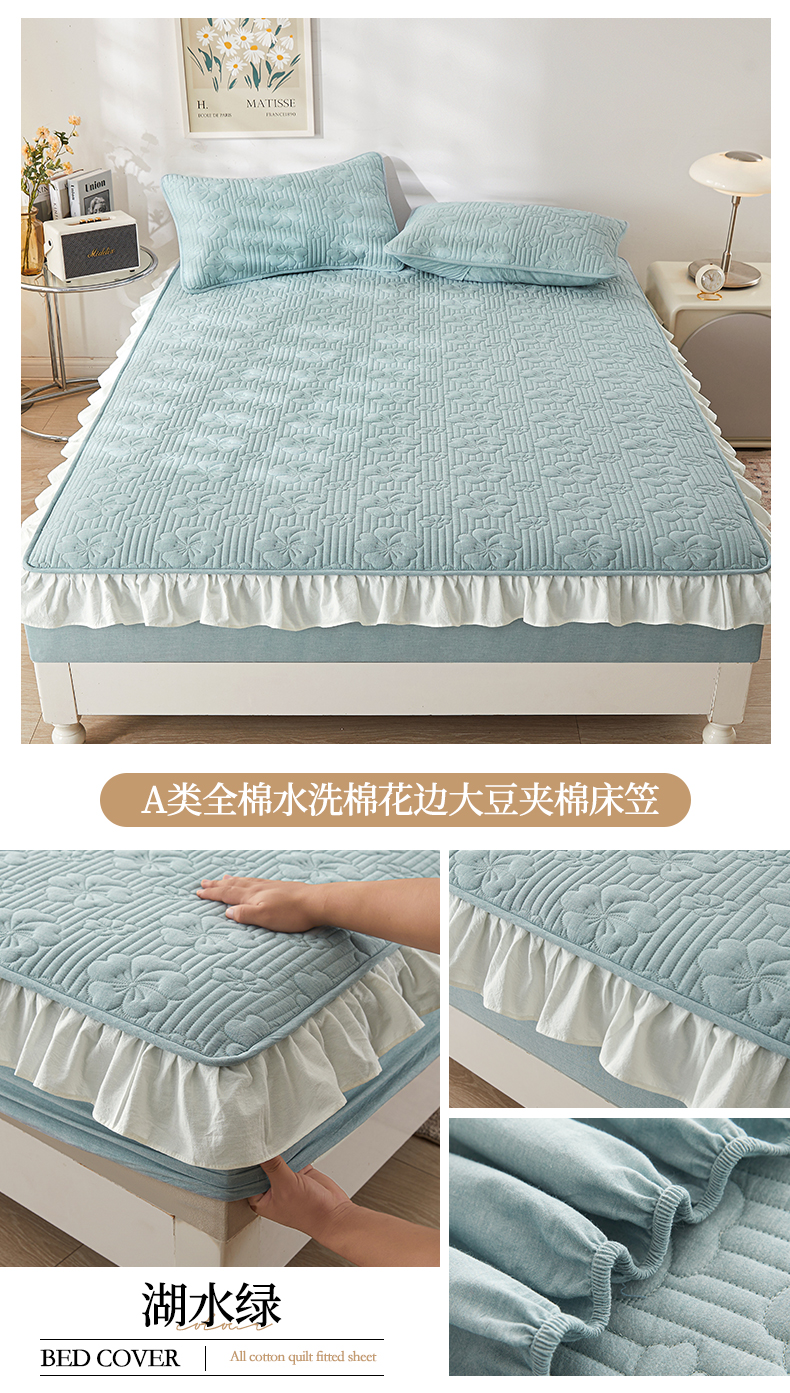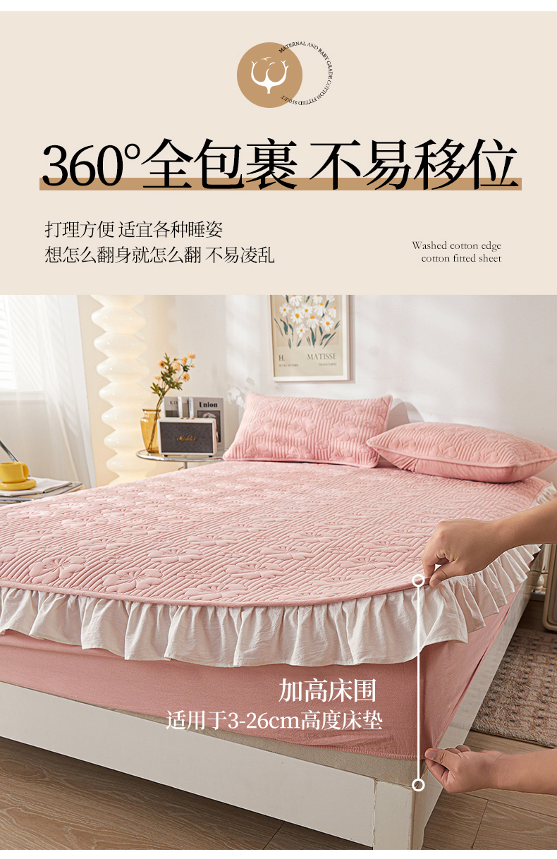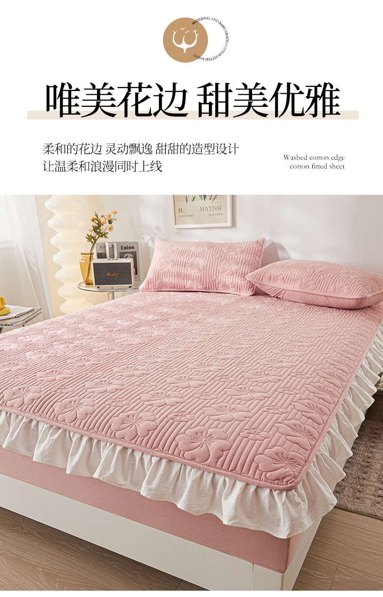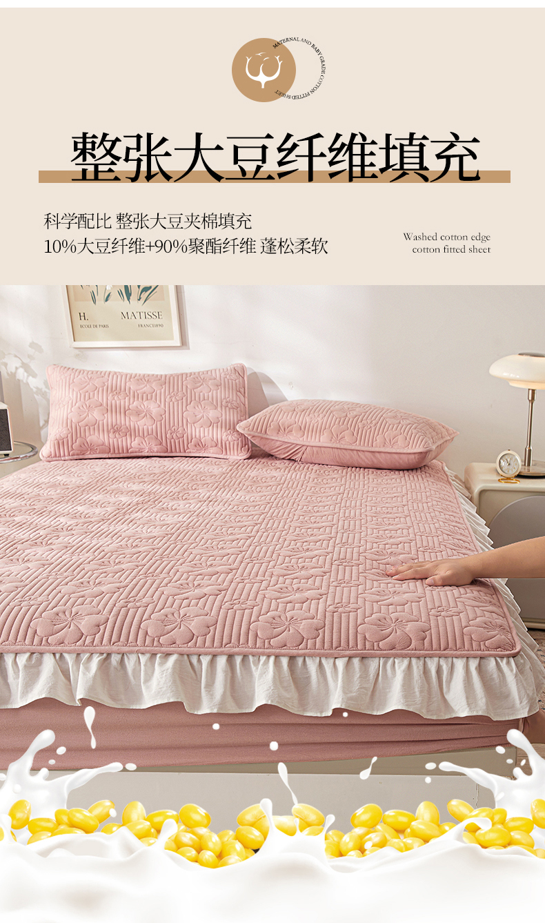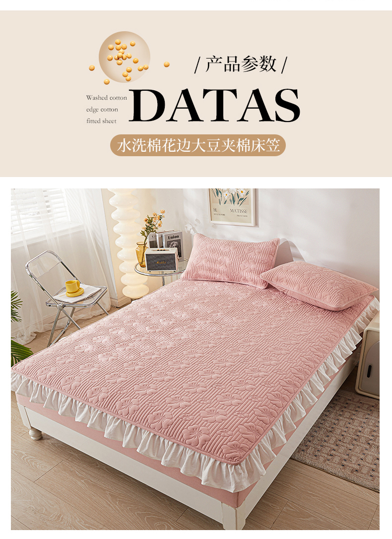 (总)3C 2024新款全棉大豆夹棉唯美花边床笠