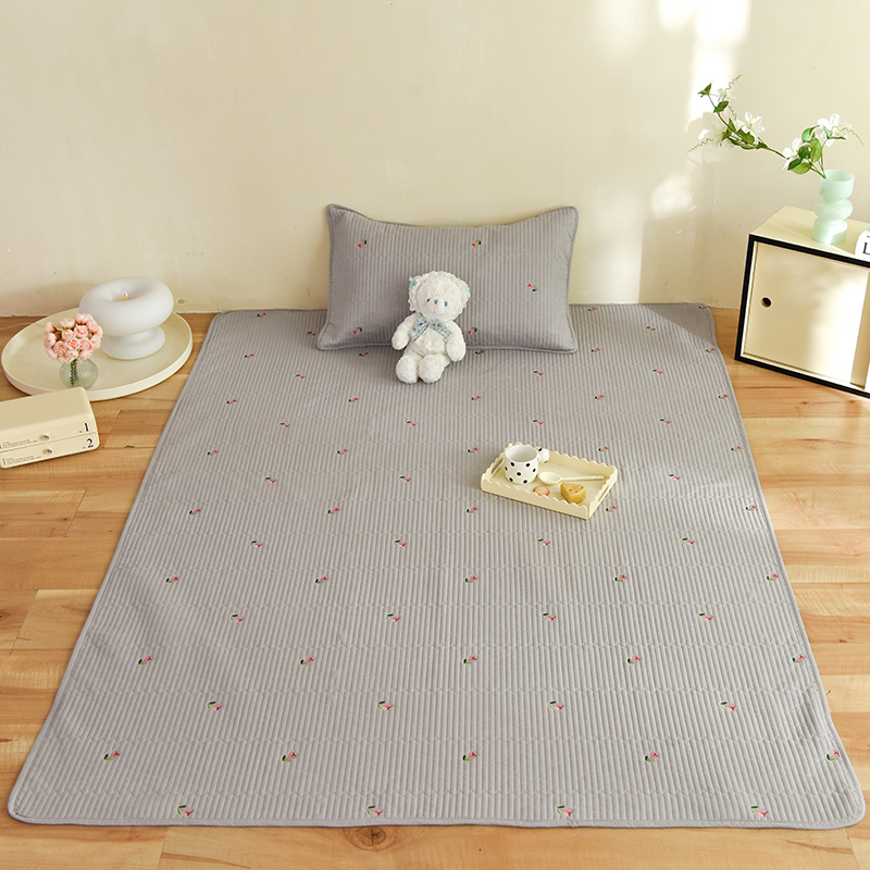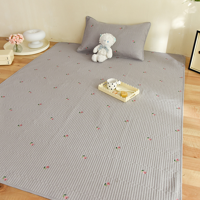 商品名称:美达家纺2025新品纯色刺绣水洗棉夹棉地垫 清新花语-灰