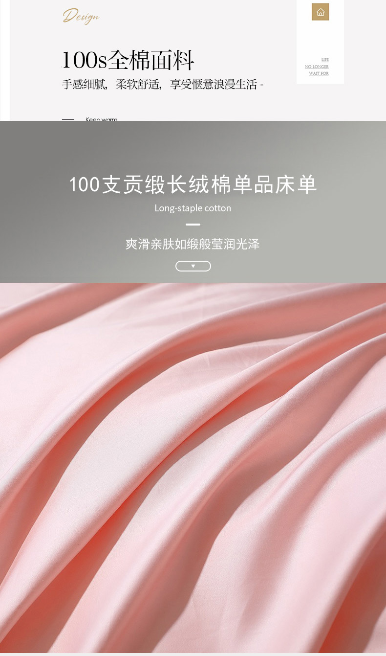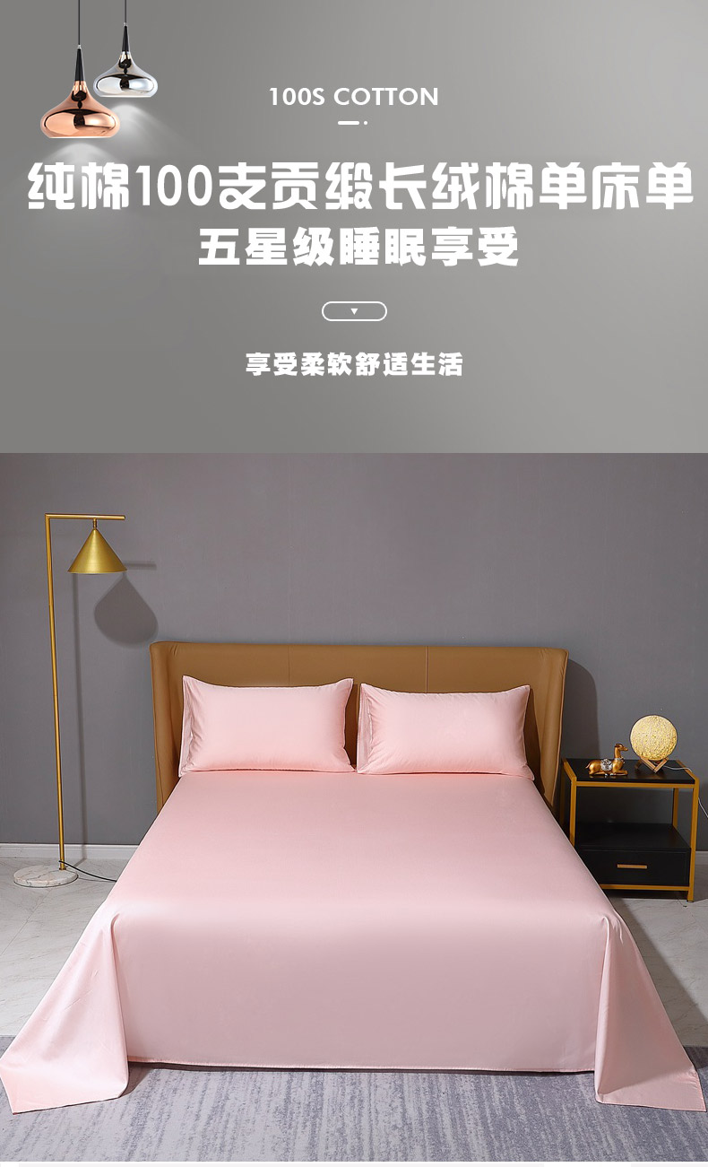 晶缦家纺 2024新款100S全棉贡缎长绒棉纯色四件套和单品-纯沐系列 单床单 纯沐-浅粉玉
