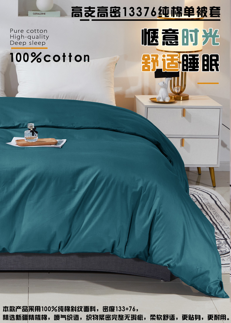 晶缦家纺 2024新款喷气全棉13376纯棉斜纹纯色多规格四件套和单品-沐色系列 单被套 沐色-孔雀绿