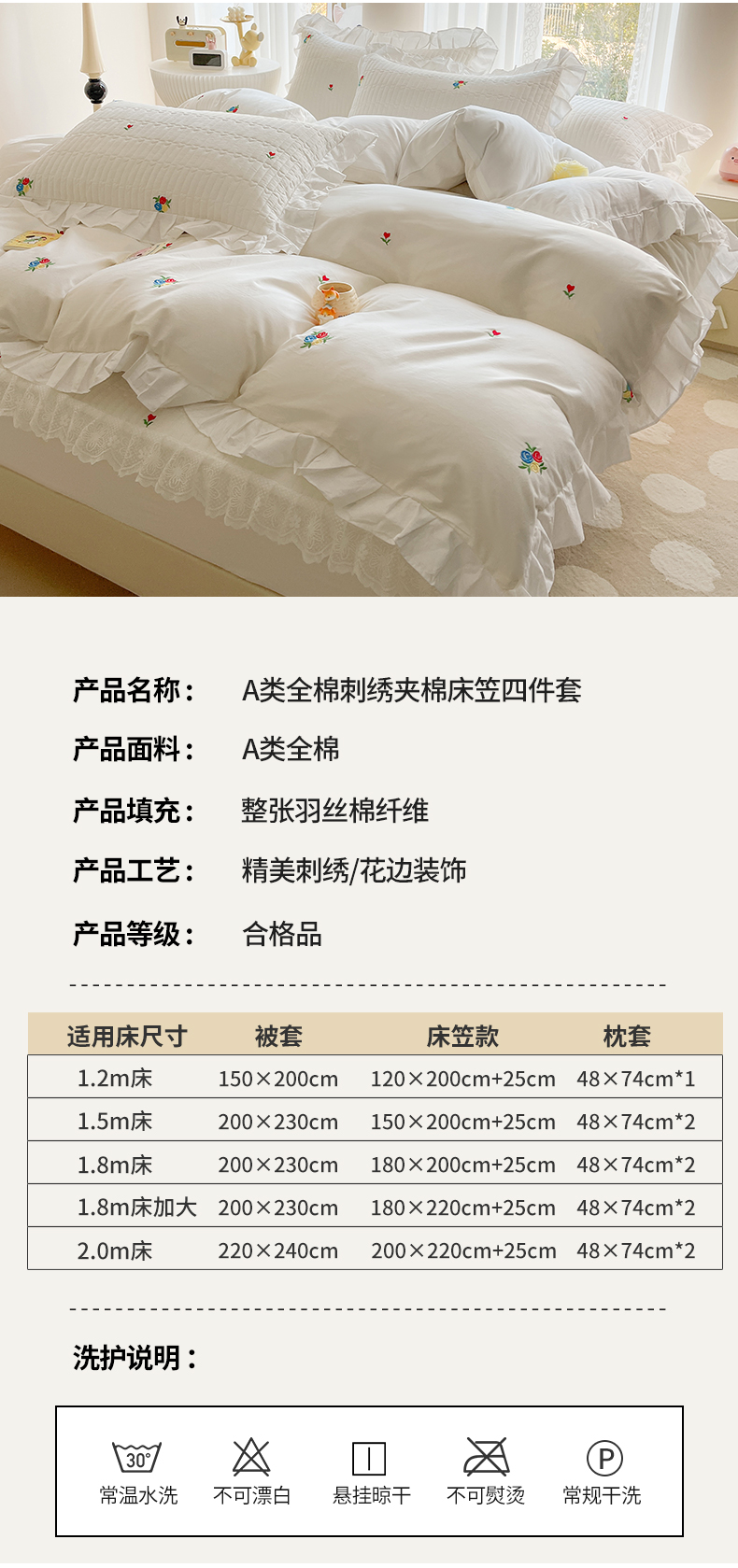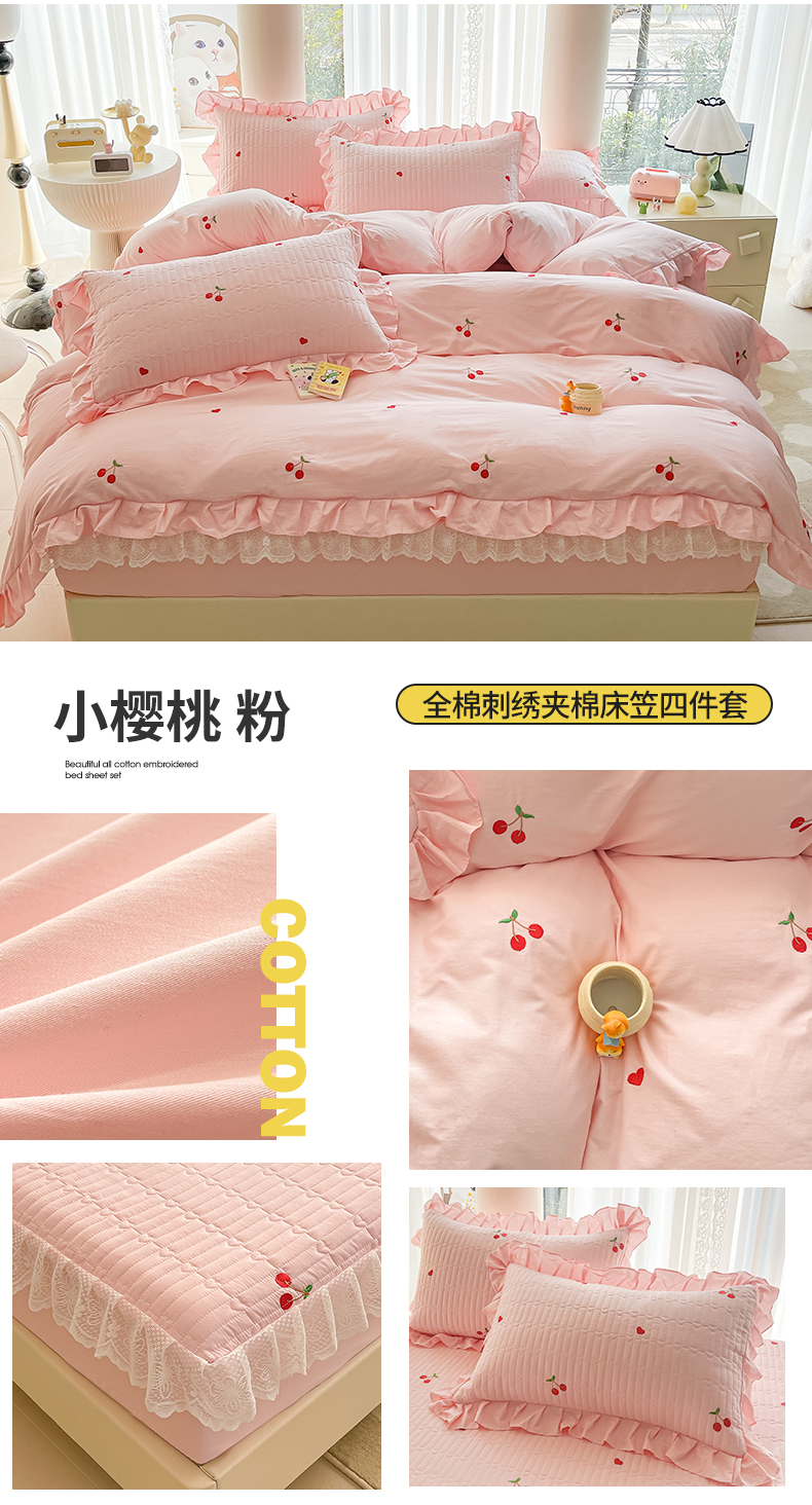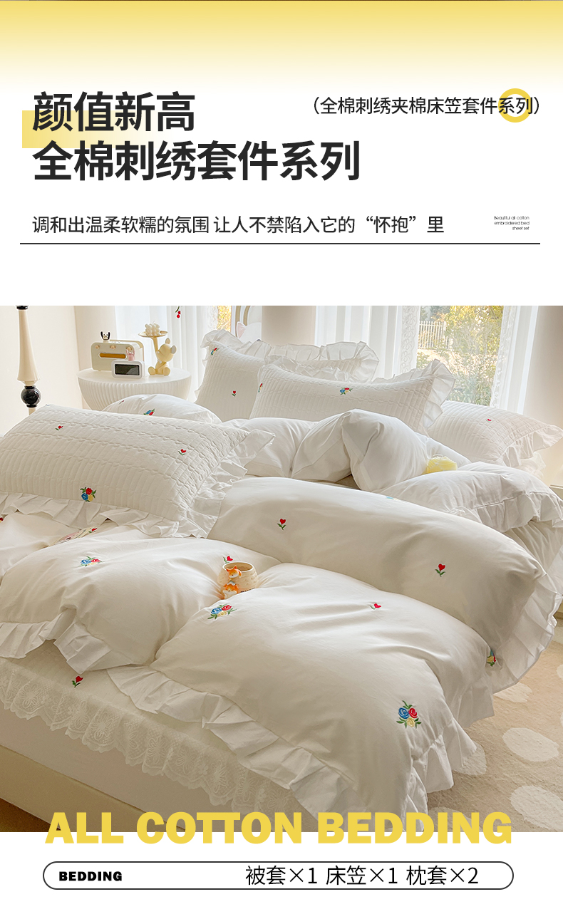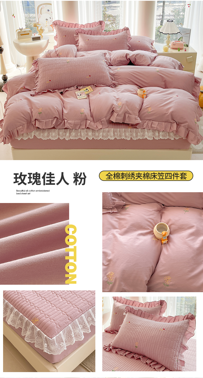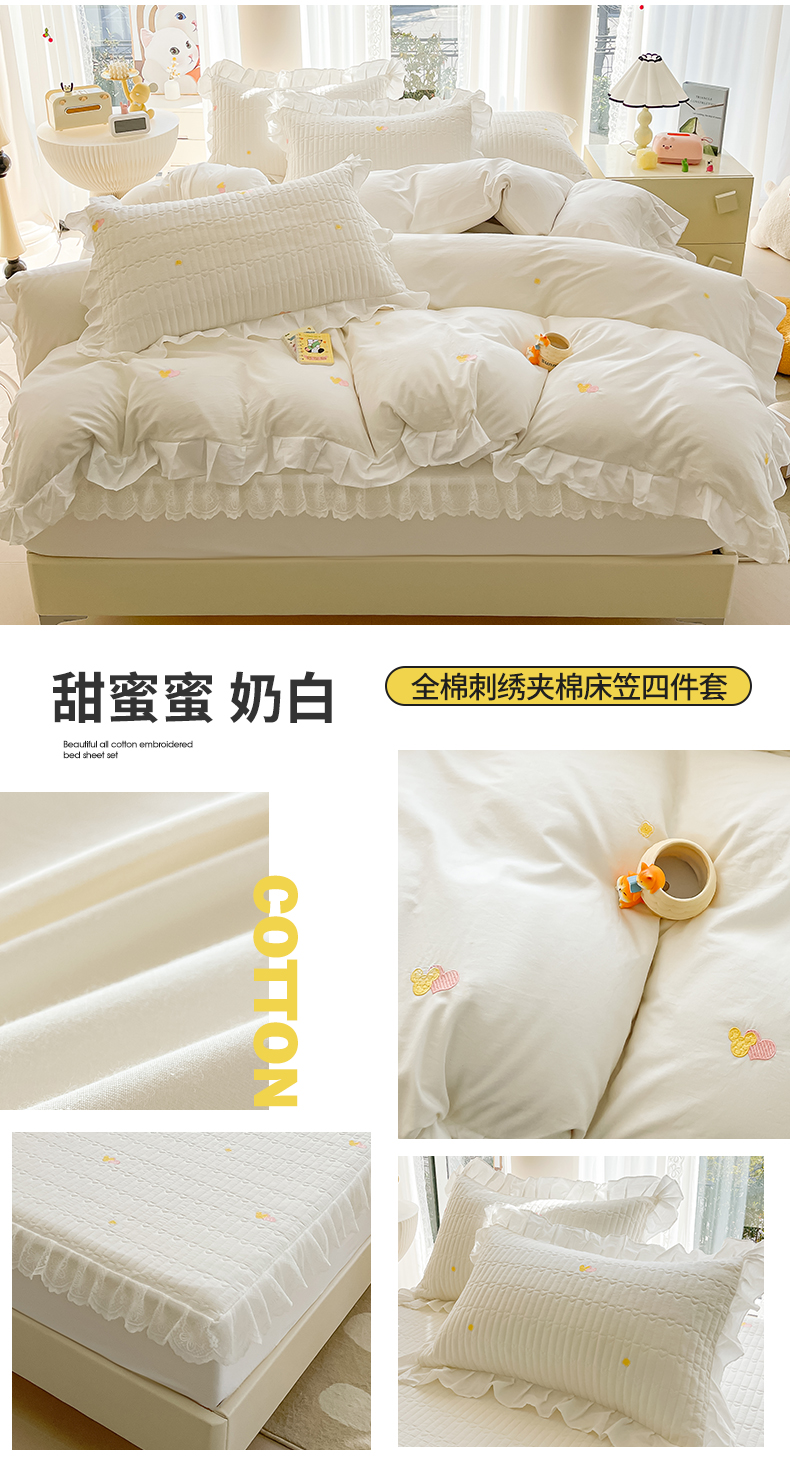 商品名称:(总)宜凡家纺 2024新款全棉夹棉绣花花边系列床笠四件套