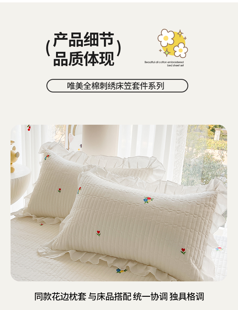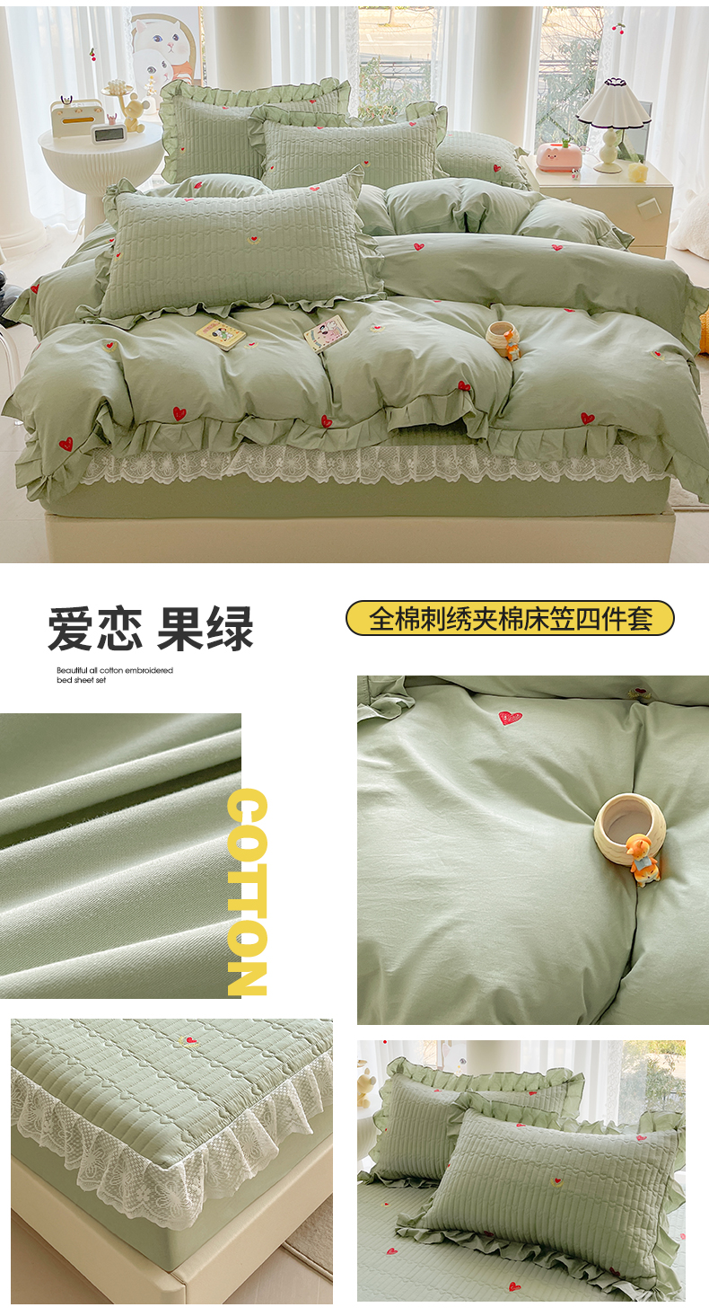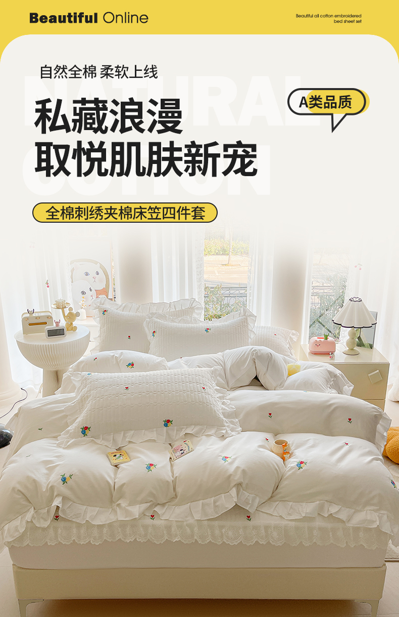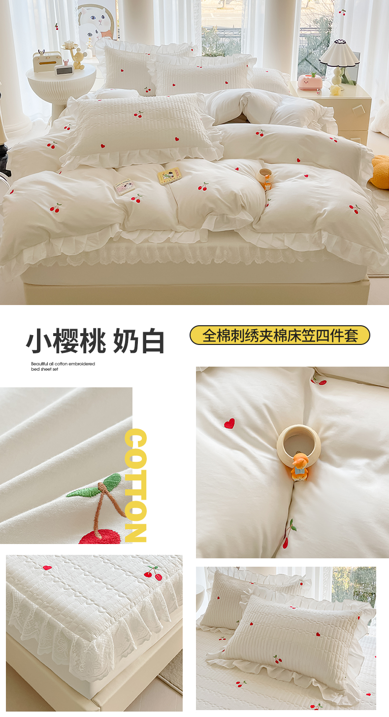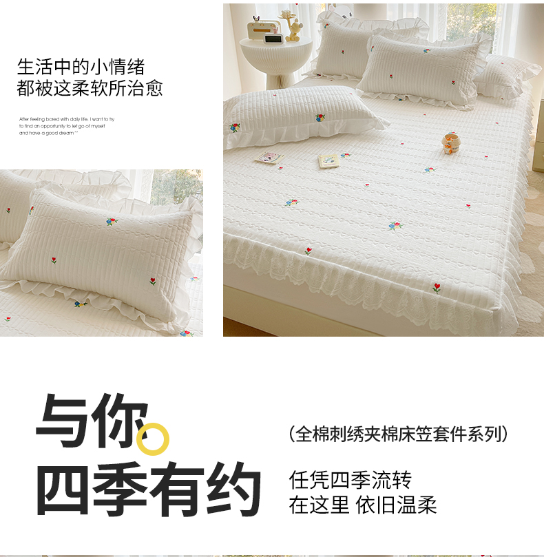 商品名称:(总)宜凡家纺 2024新款全棉夹棉绣花花边系列床笠四件套