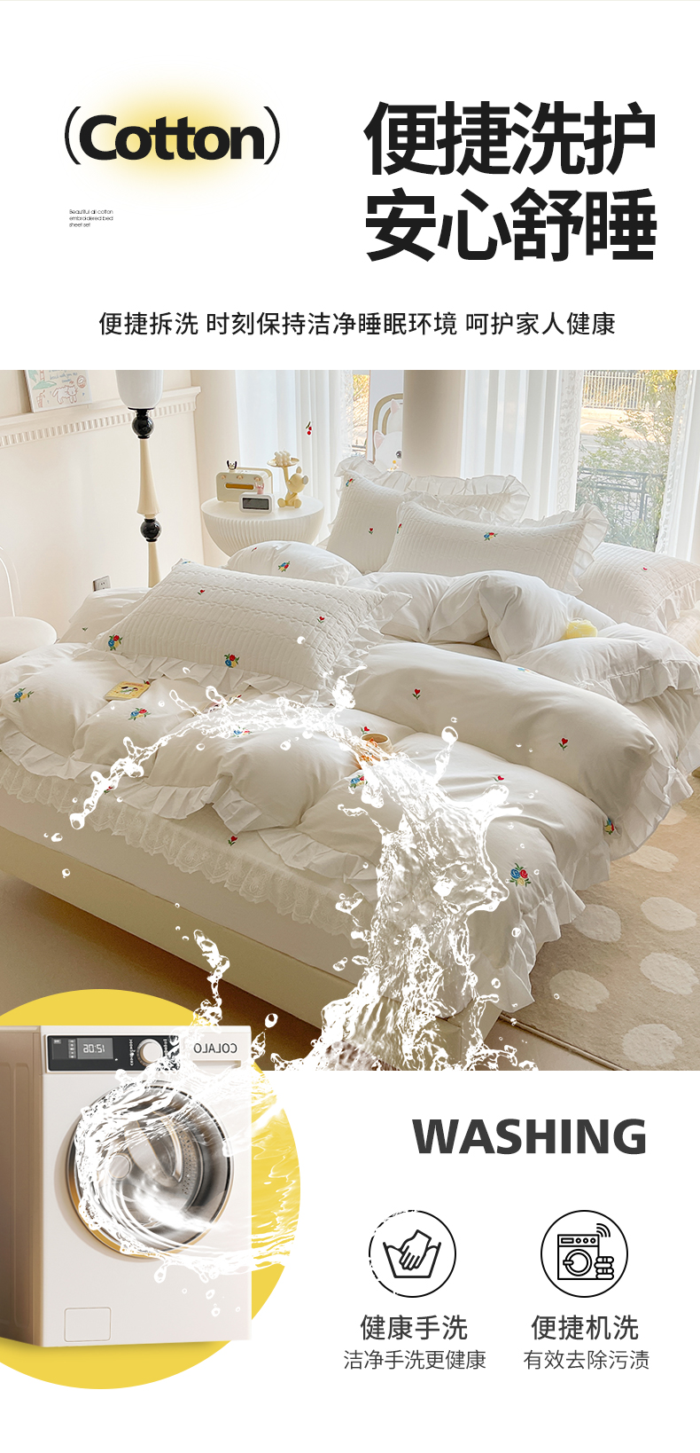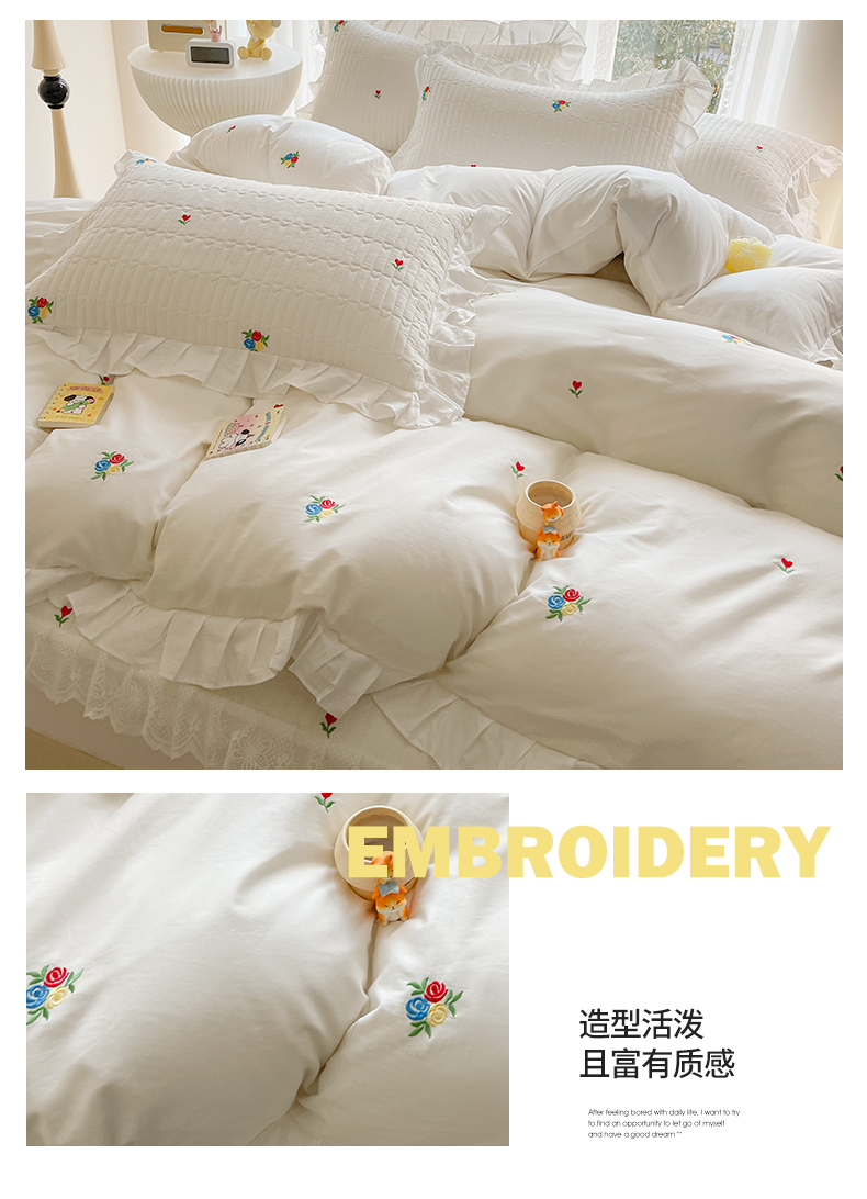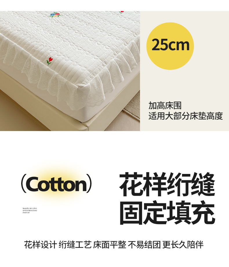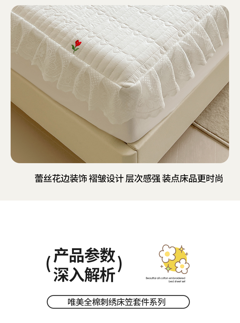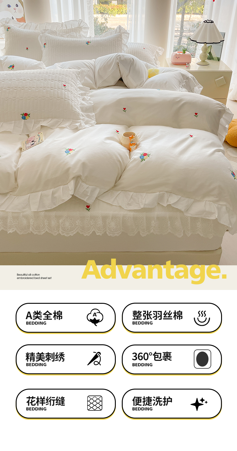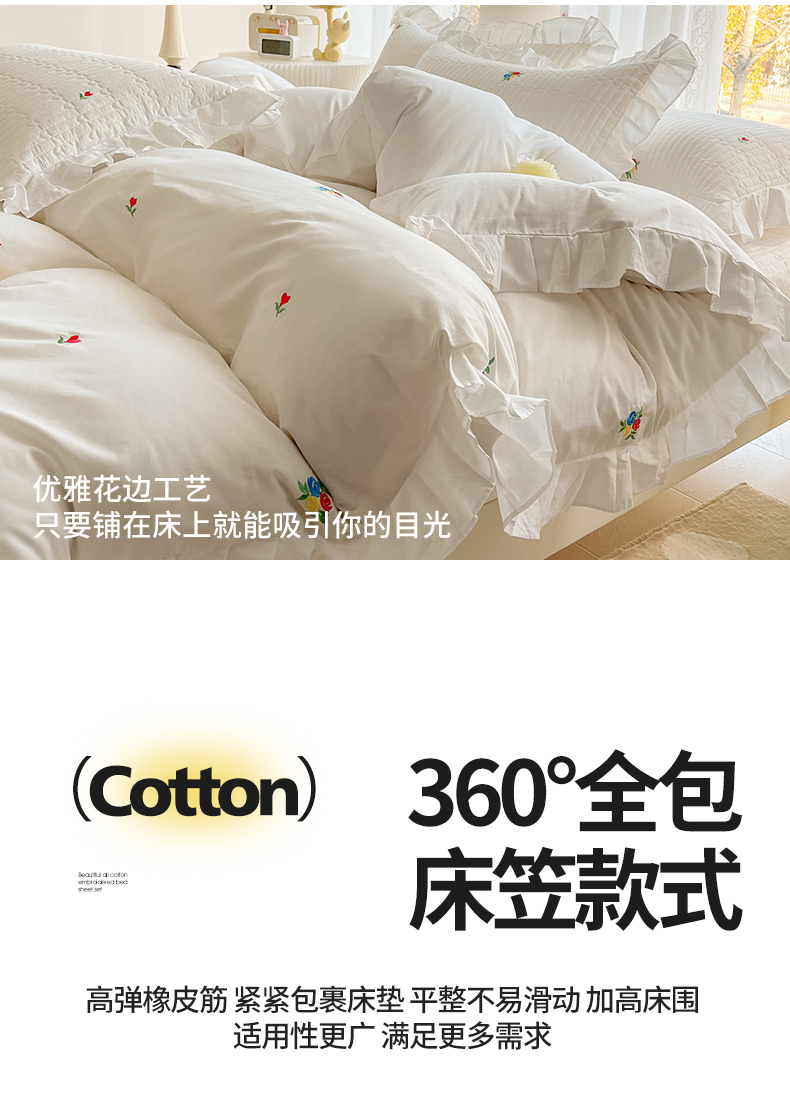商品名称:(总)宜凡家纺 2024新款全棉夹棉绣花花边系列床笠四件套