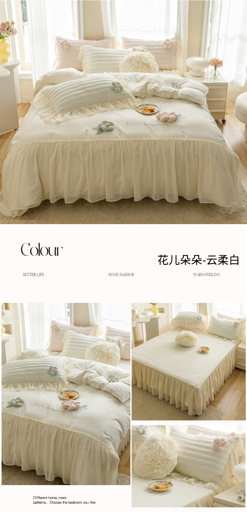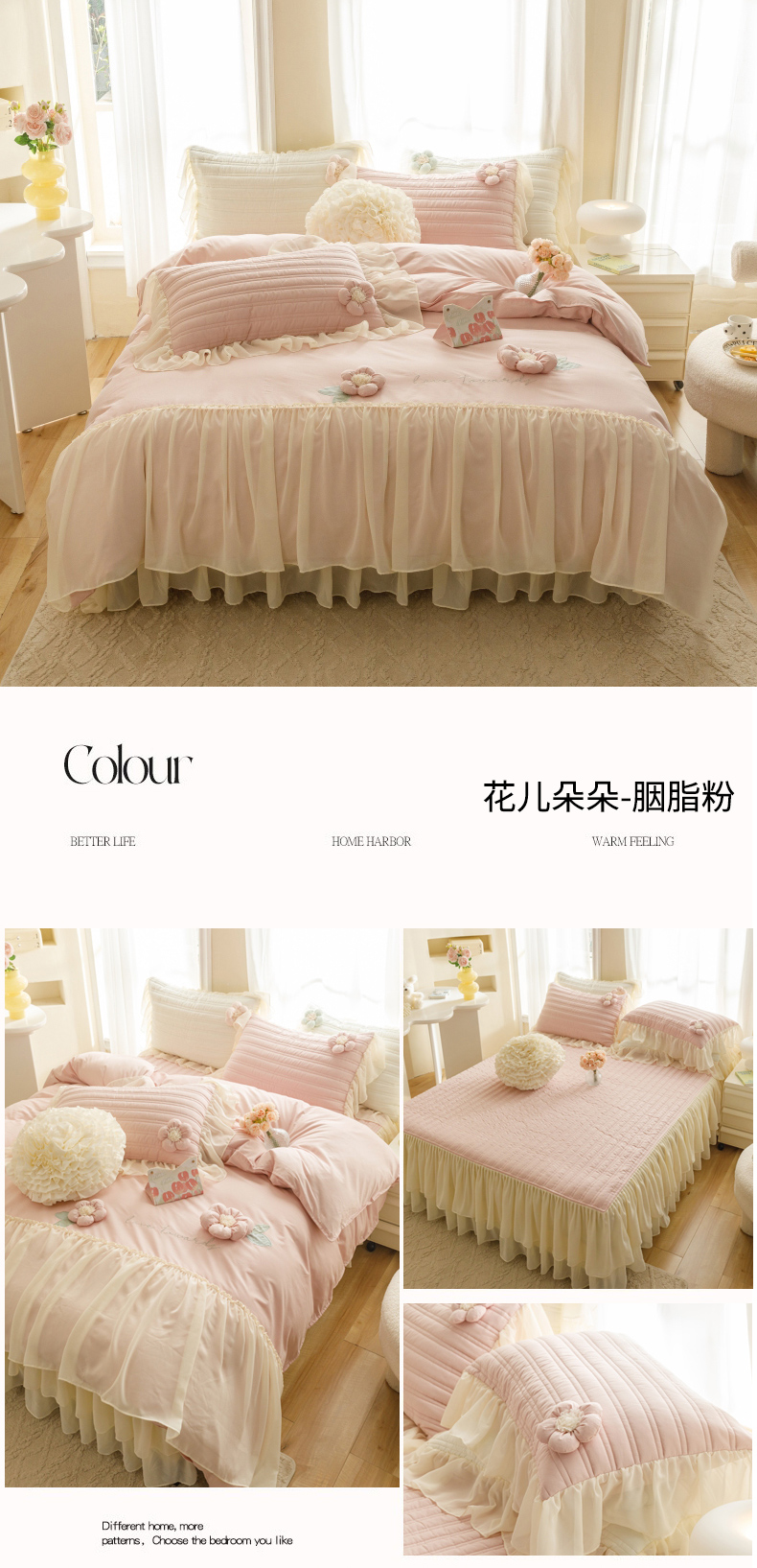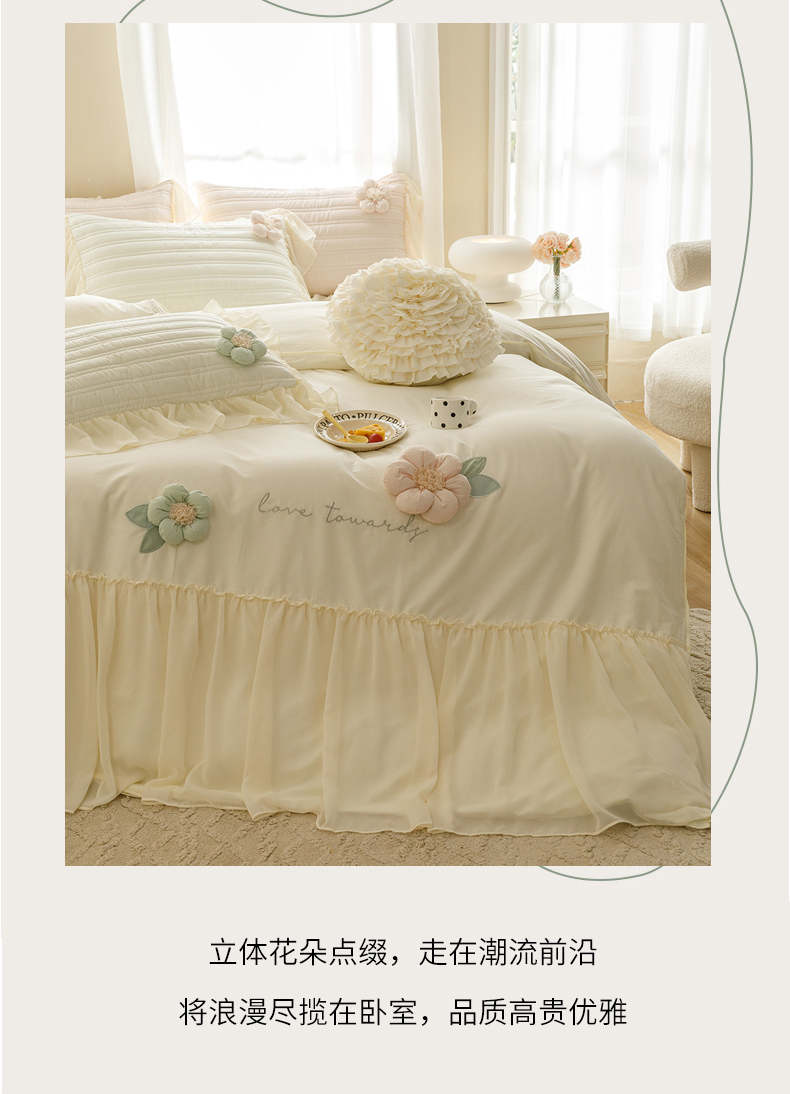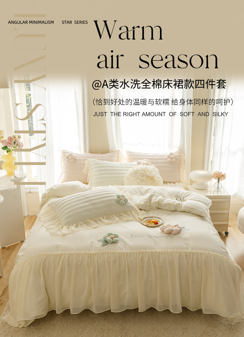 当前位置: 91家纺网 > 商品网购 > 床品套件 > 四件套 > 全棉普通四件套 > (总)胜权家纺 2024新款A类水洗60支全棉工艺款夹棉床裙四件套