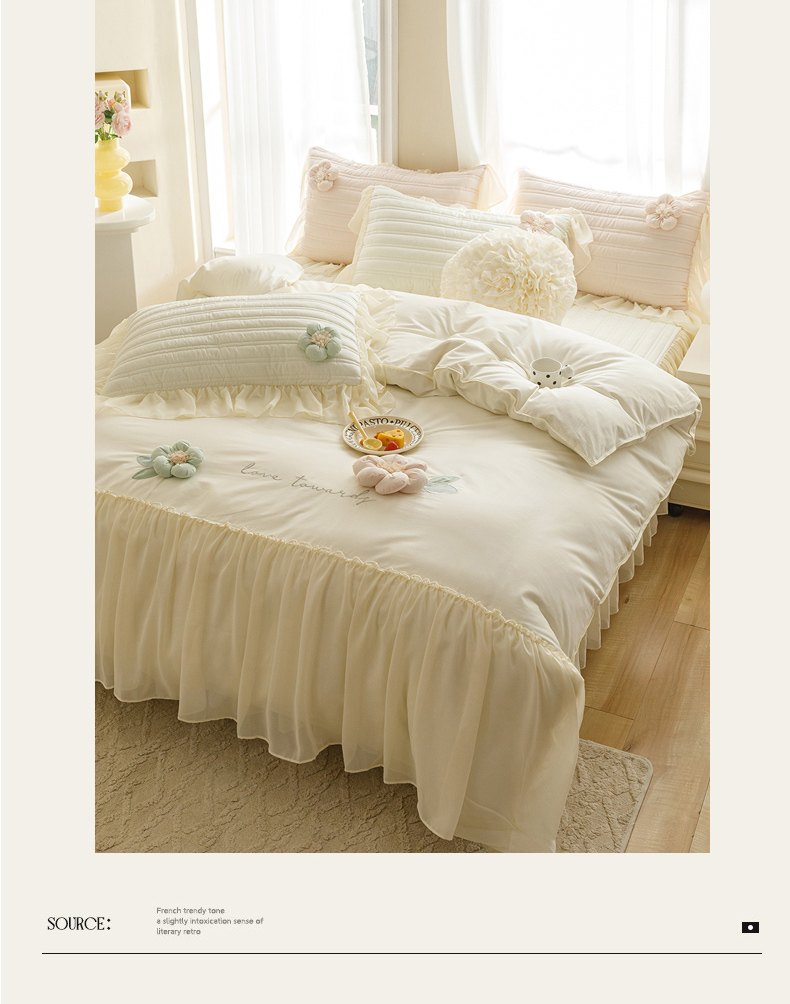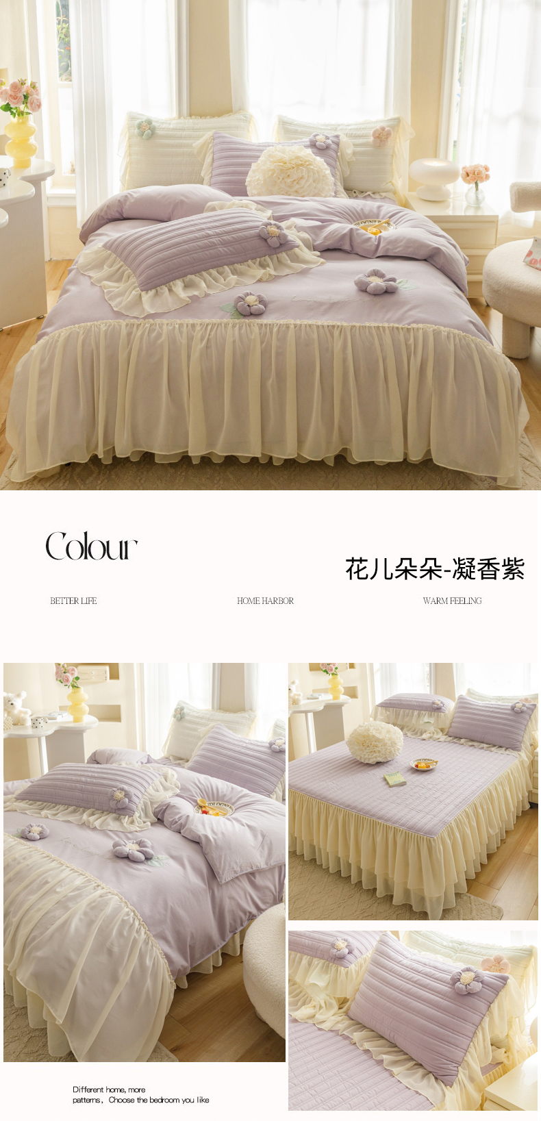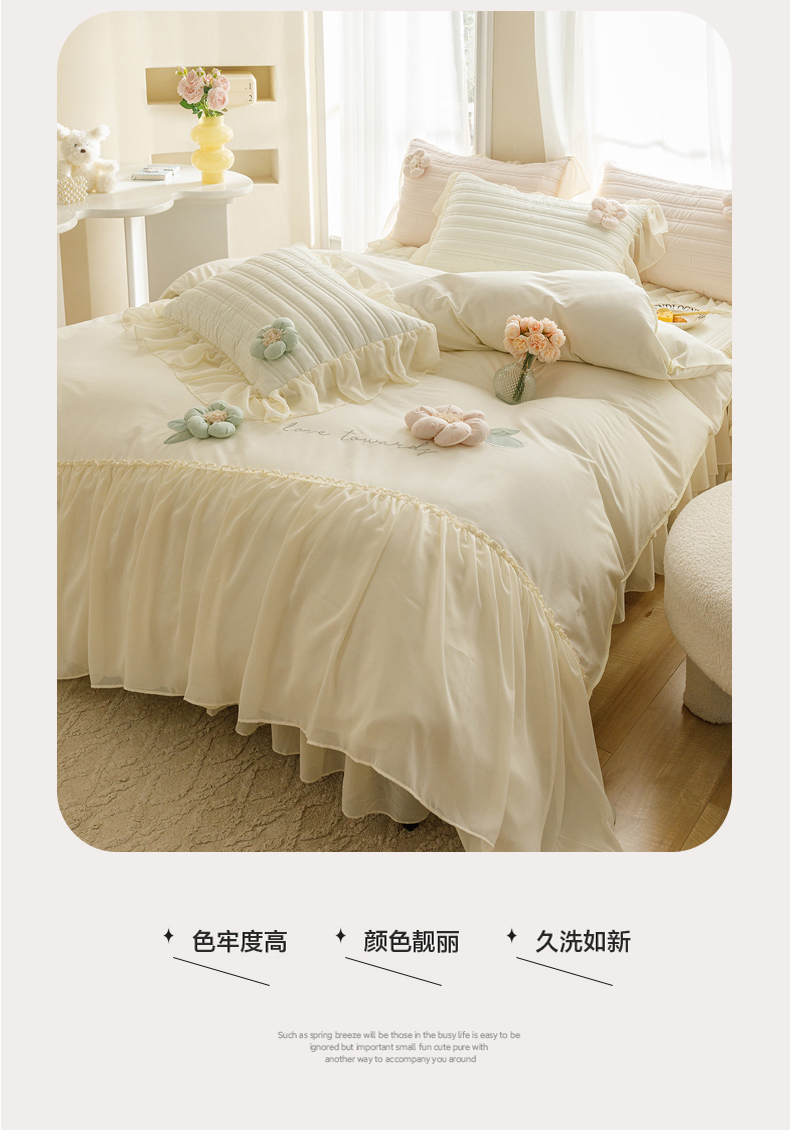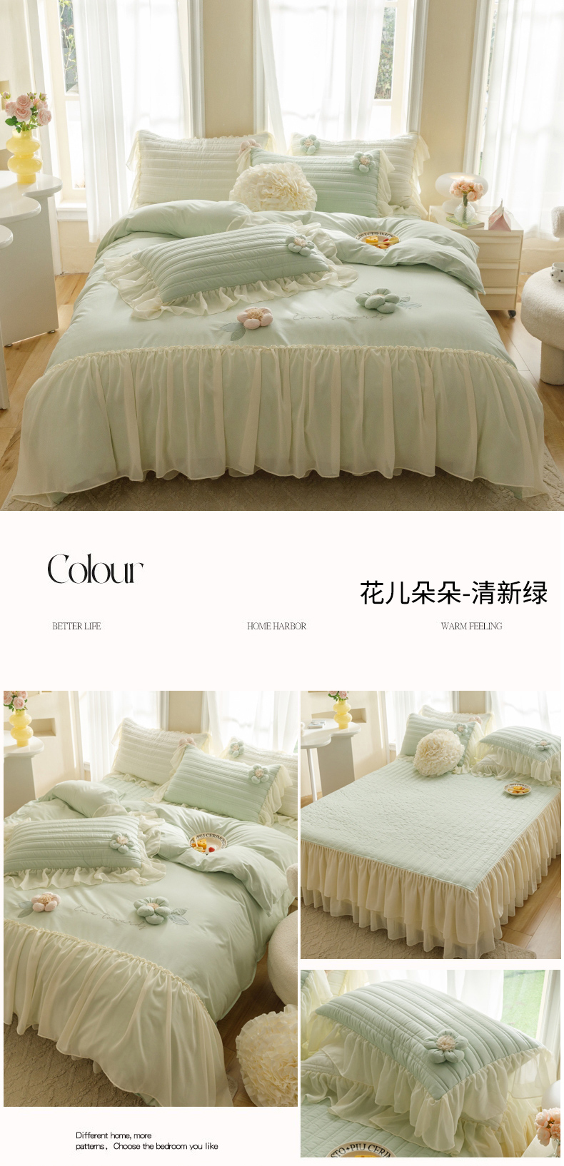 当前位置: 91家纺网 > 商品网购 > 床品套件 > 四件套 > 全棉普通四件套 > (总)胜权家纺 2024新款A类水洗60支全棉工艺款夹棉床裙四件套