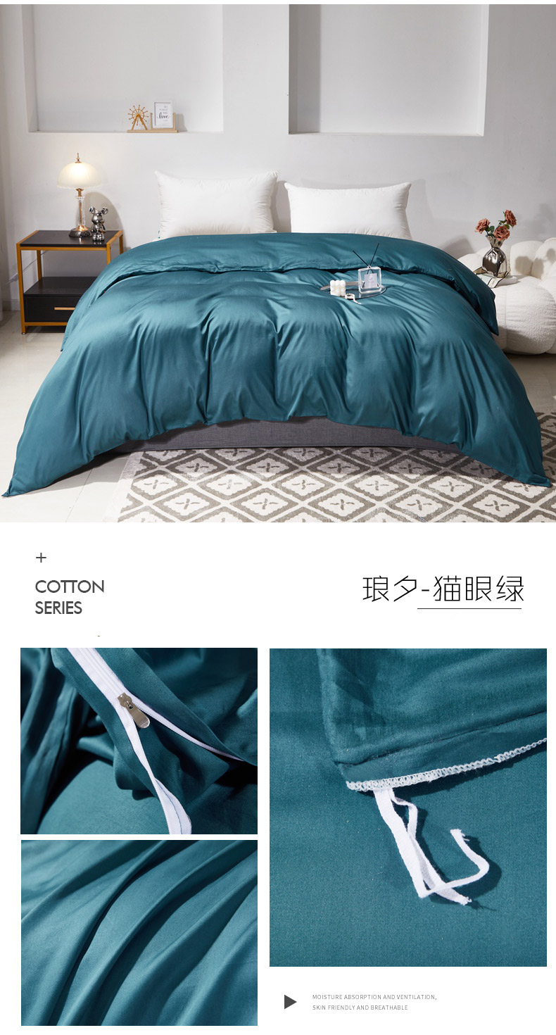 商品名称:晶缦家纺 2024新款全棉60支贡缎长绒棉纯色多规格四件套和单品-琅夕系列 单被套 琅夕-猫眼绿