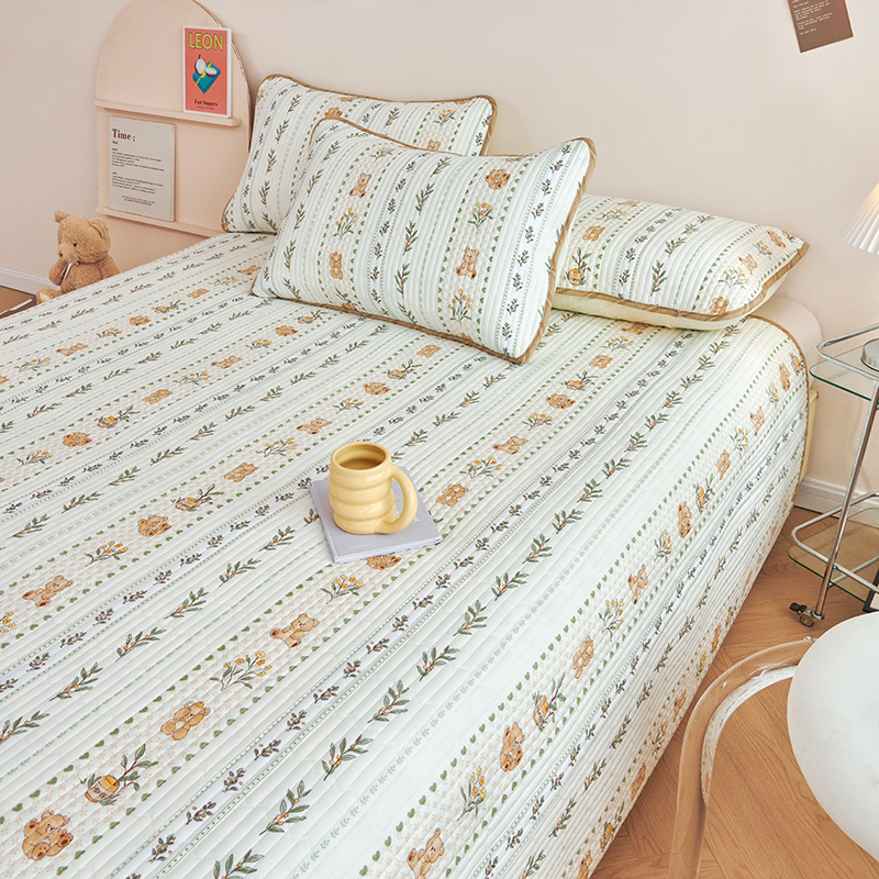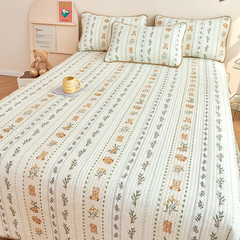 莎果 2024新款正面纯棉绗缝床盖 小熊慕斯