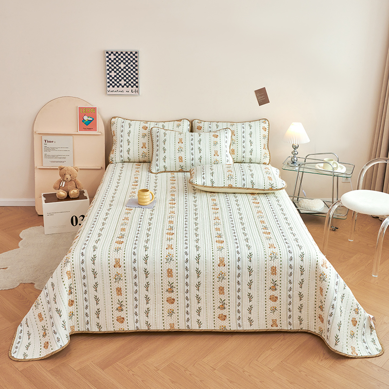 • 91家纺网 家纺一手货源 找家纺 莎果 2024新款正面纯棉绗缝床盖 小熊慕斯