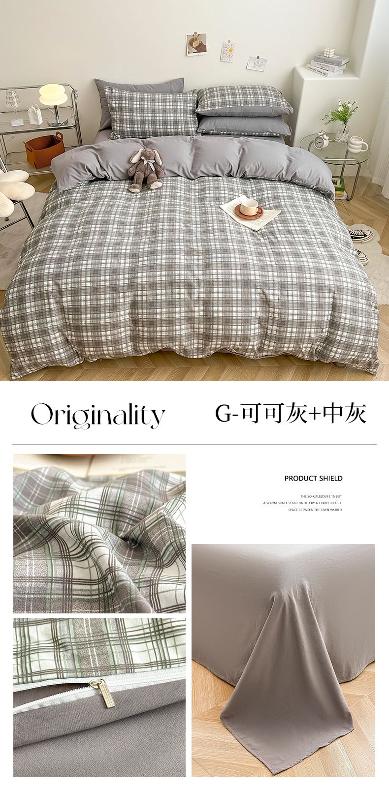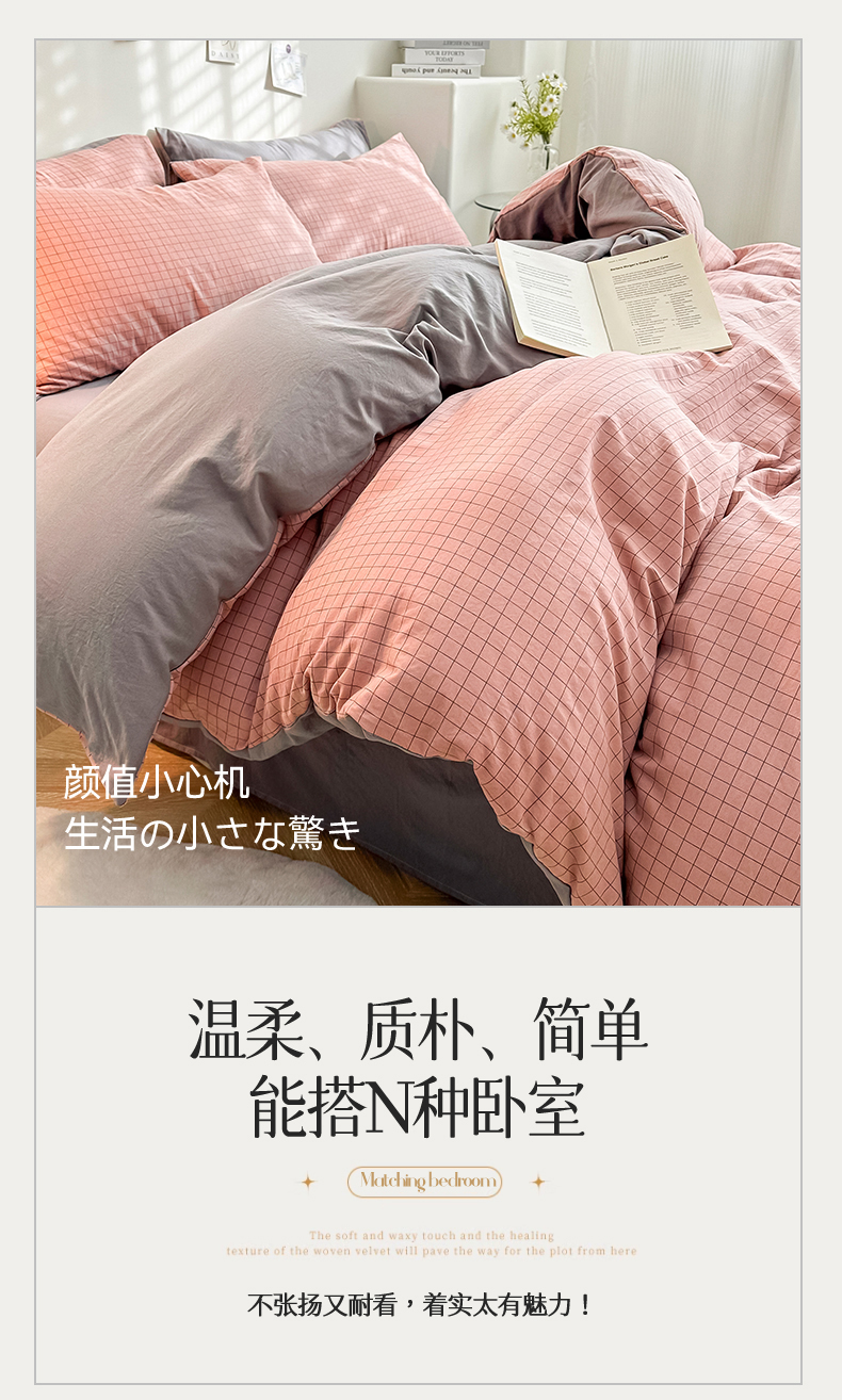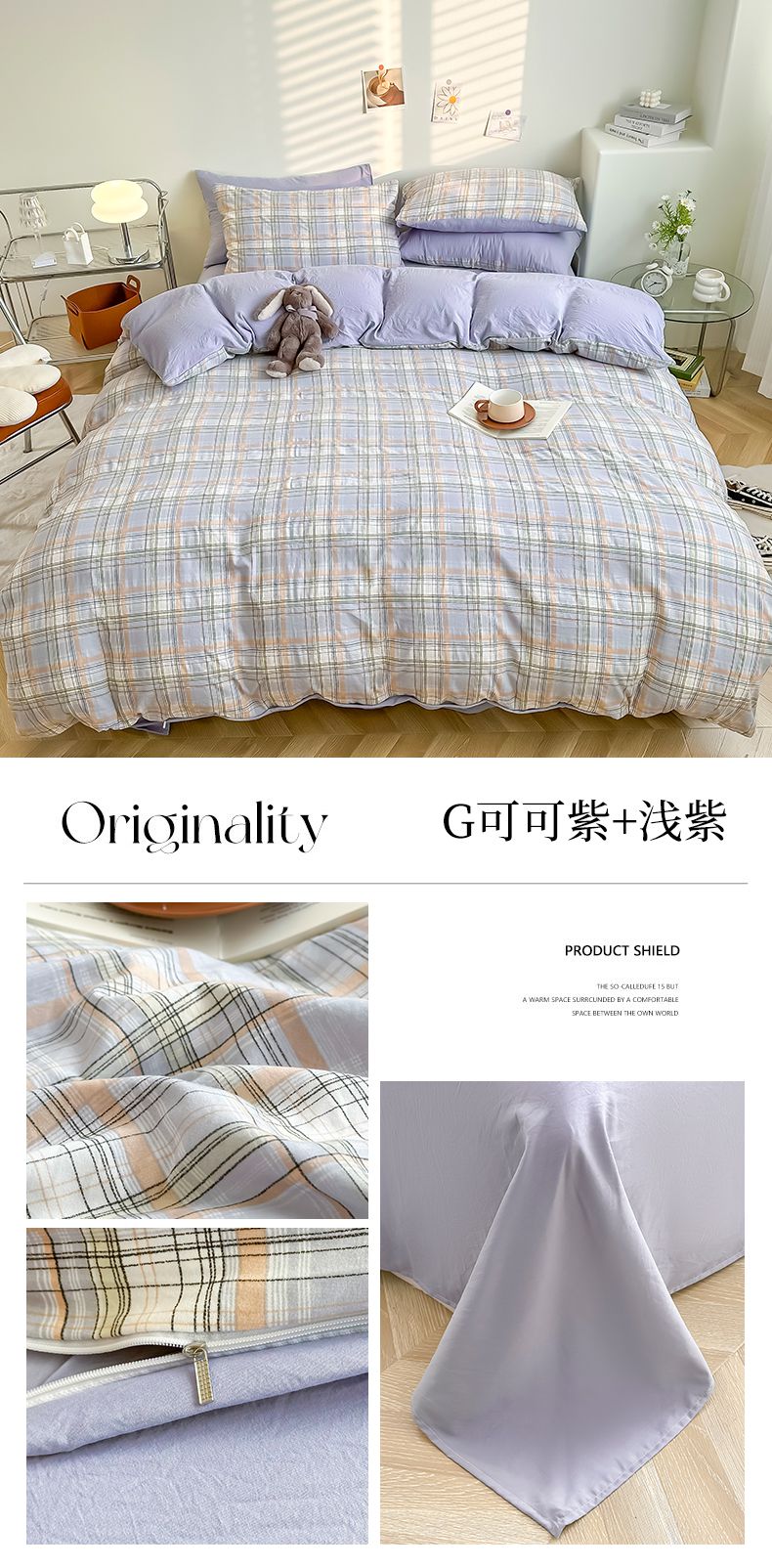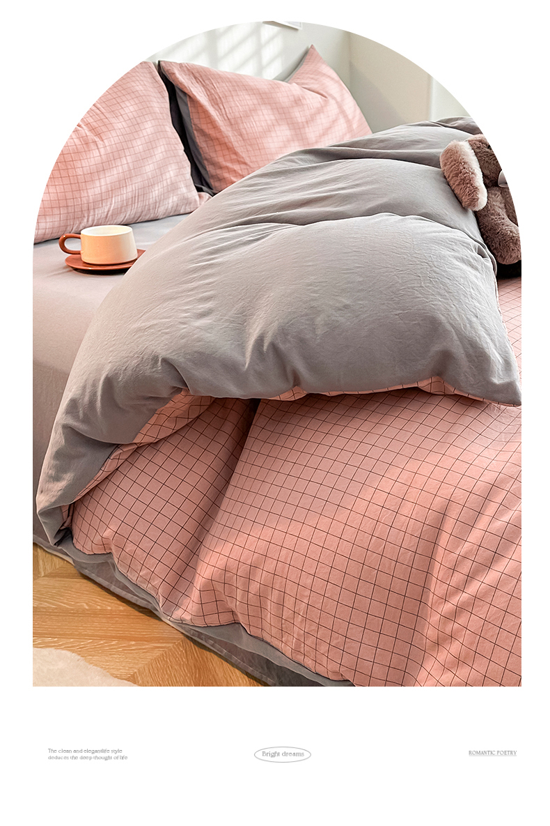 (总)古吉梦 2024新款水洗棉小清新印花格子系列四件套