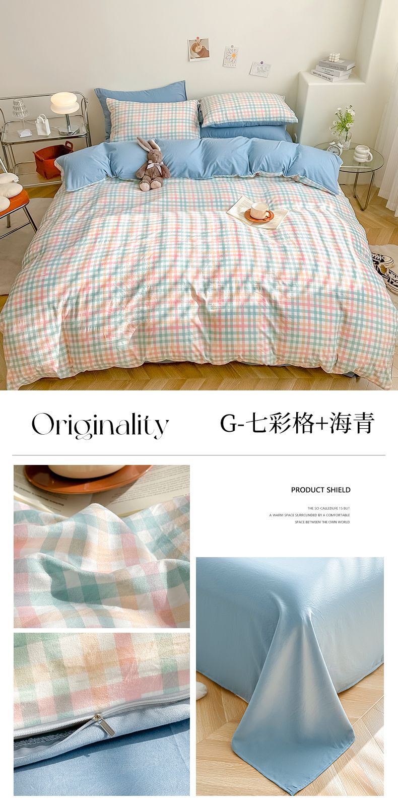 (总)2024新款水洗棉无印格子学生三件套(床笠床套款),G-简兮-蓝+海青,G简兮-绿+果绿,G-可可灰+中灰,G-米卡+中灰,G-清雅绿+果绿,G-小格-蓝+海青,G-小格玉+粉玉,G-玉粉大格+粉玉,G-蓝白大格+海青