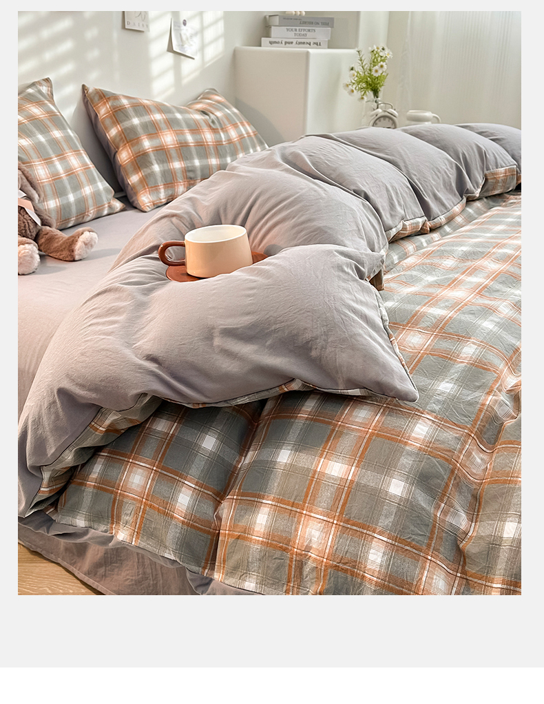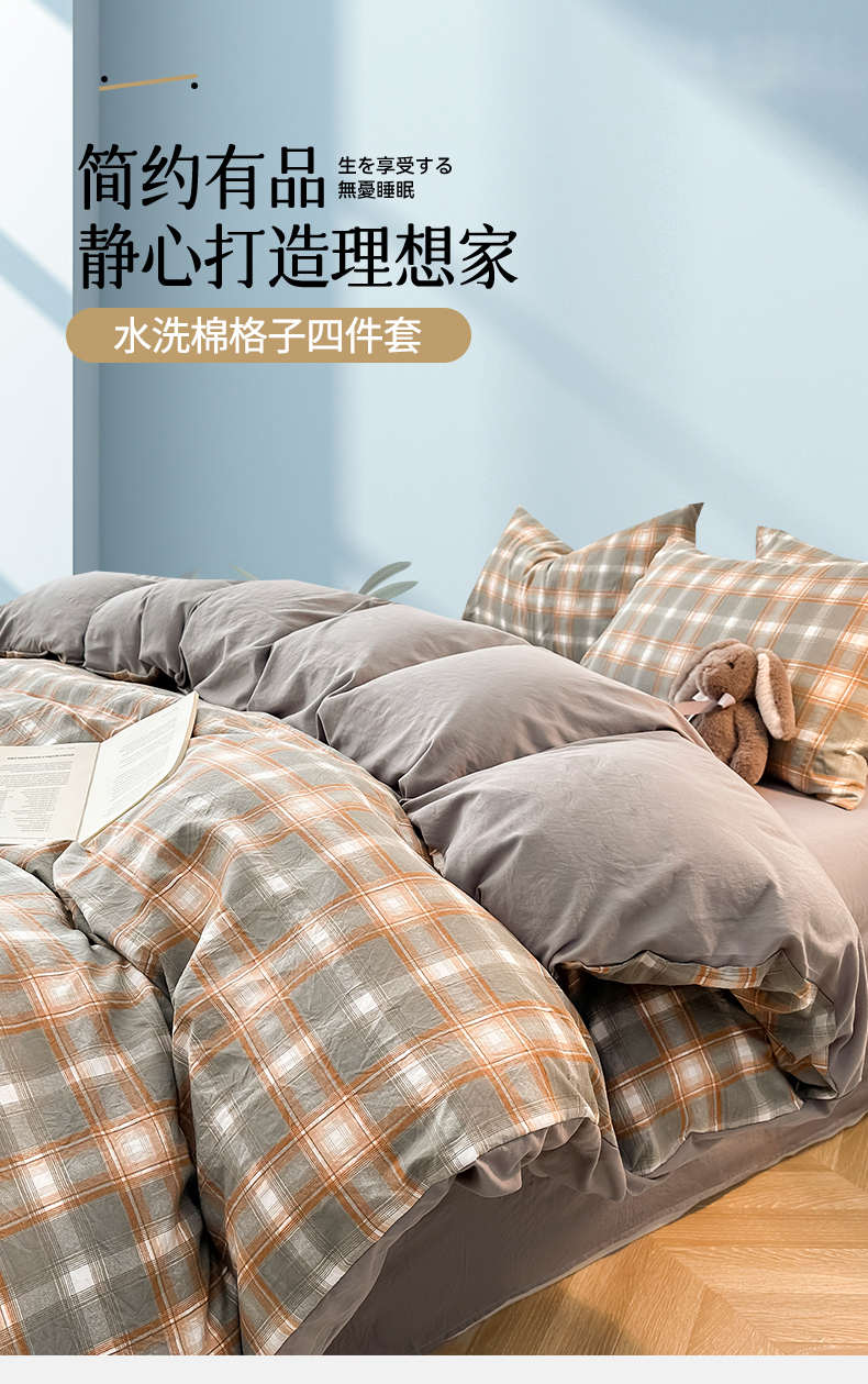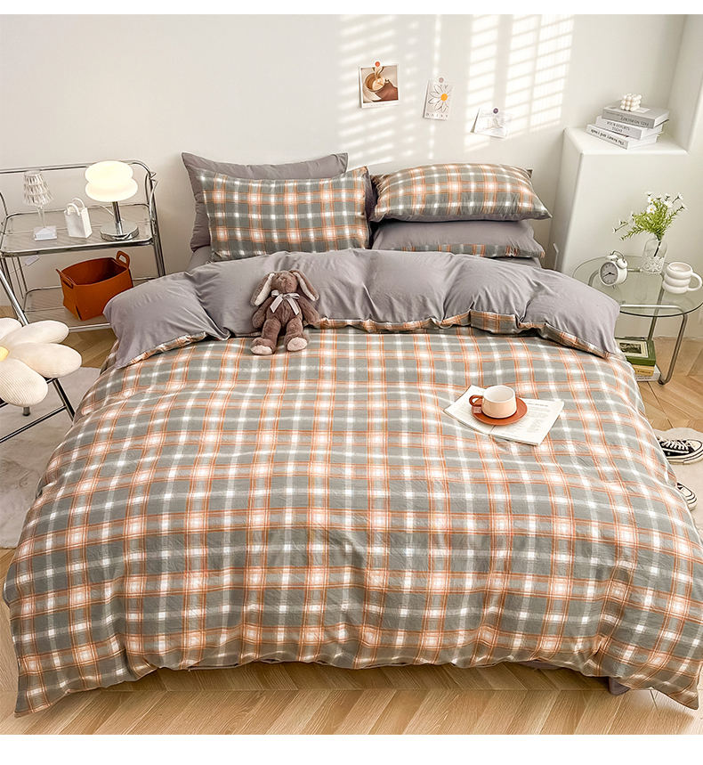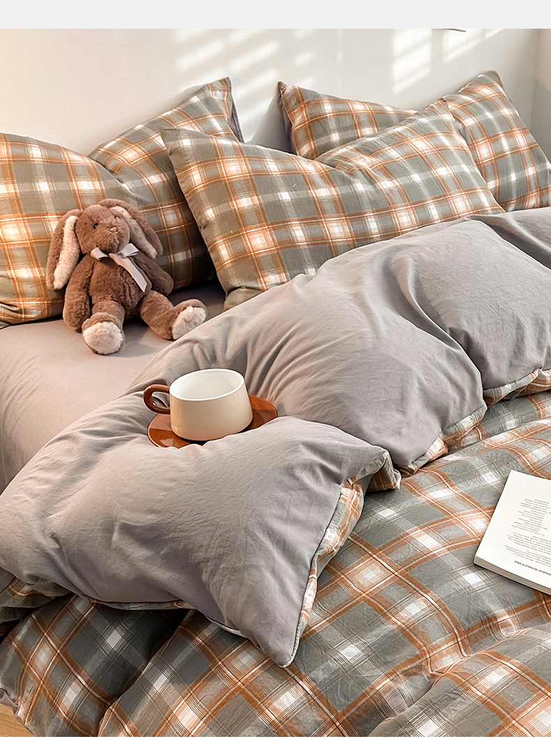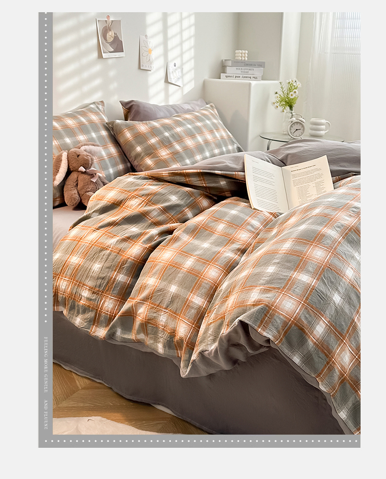 当前位置: 91家纺网 > 商品网购 > 床品套件 > 四件套 > 水洗棉四件套 > 古吉梦 2024新款水洗棉小清新印花格子系列四件套 G-米卡+中灰
