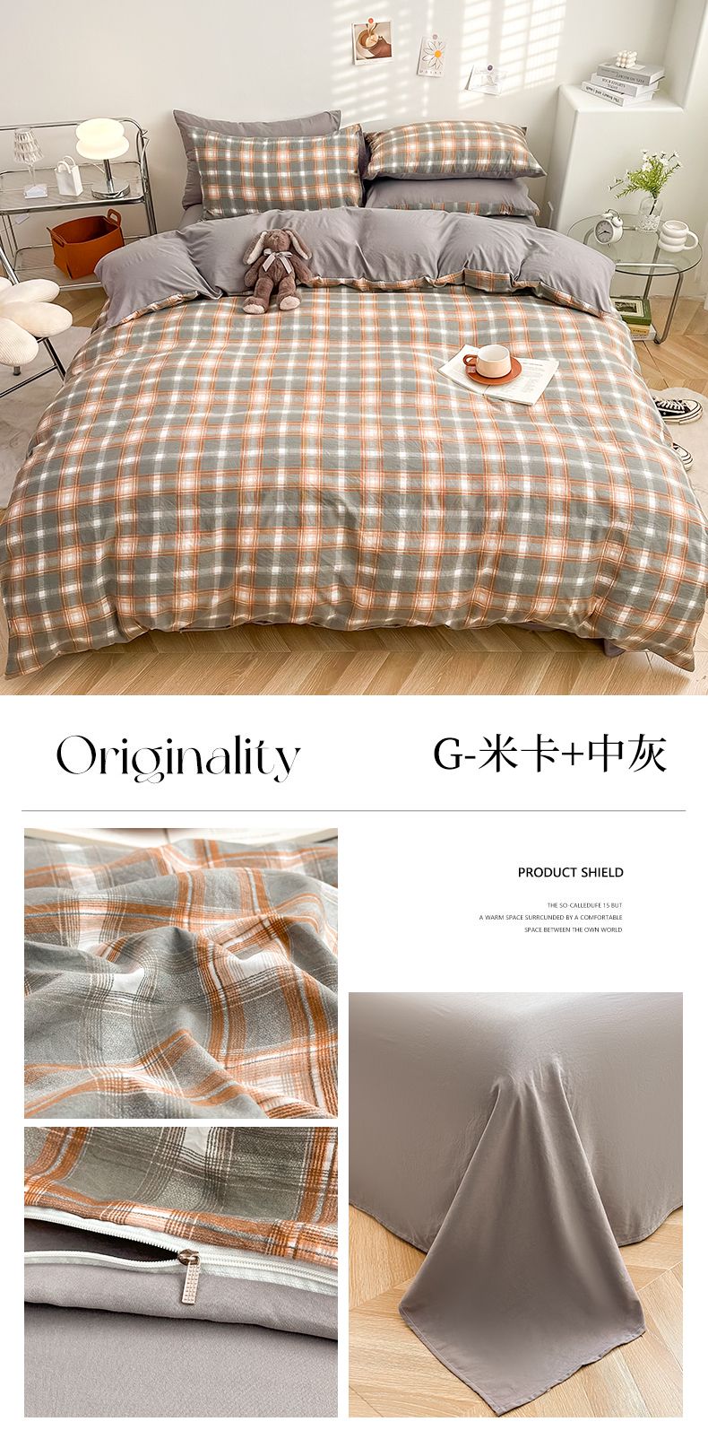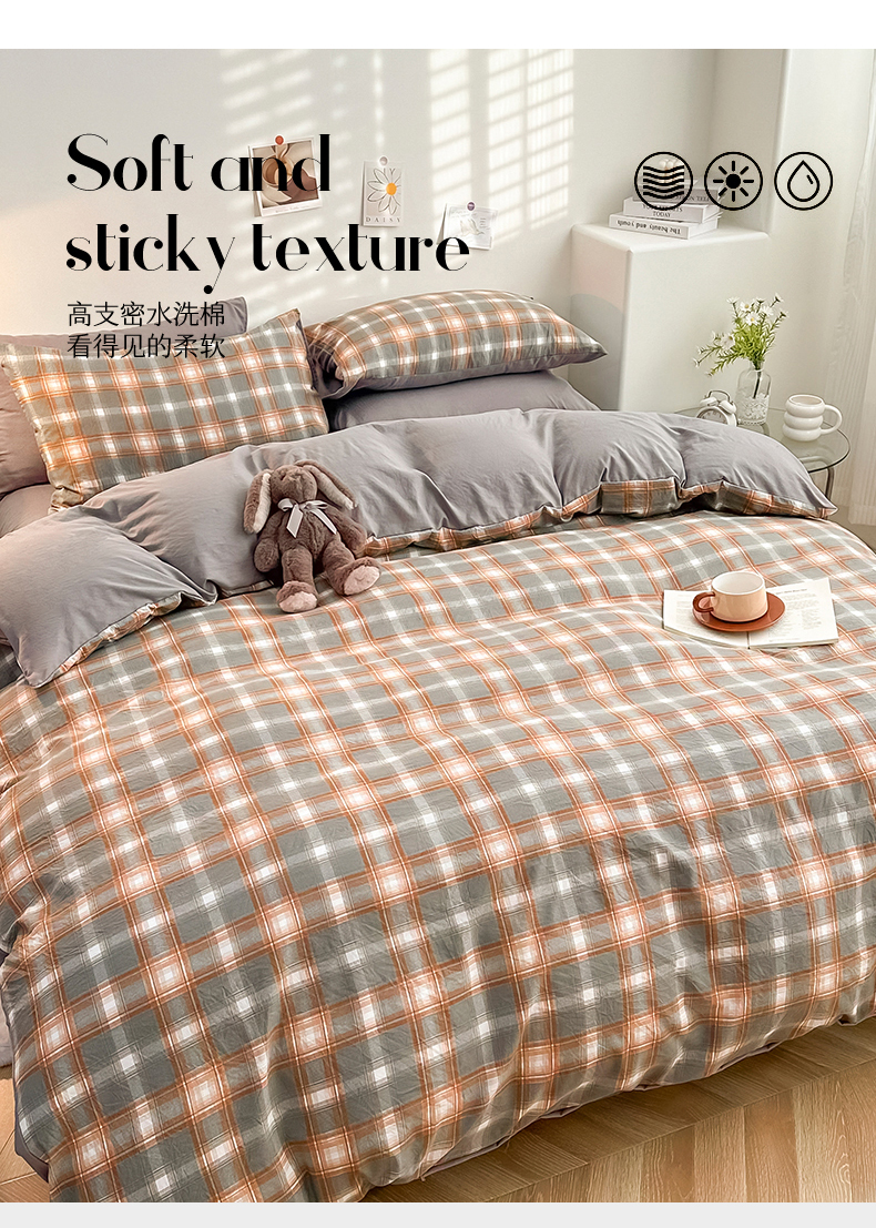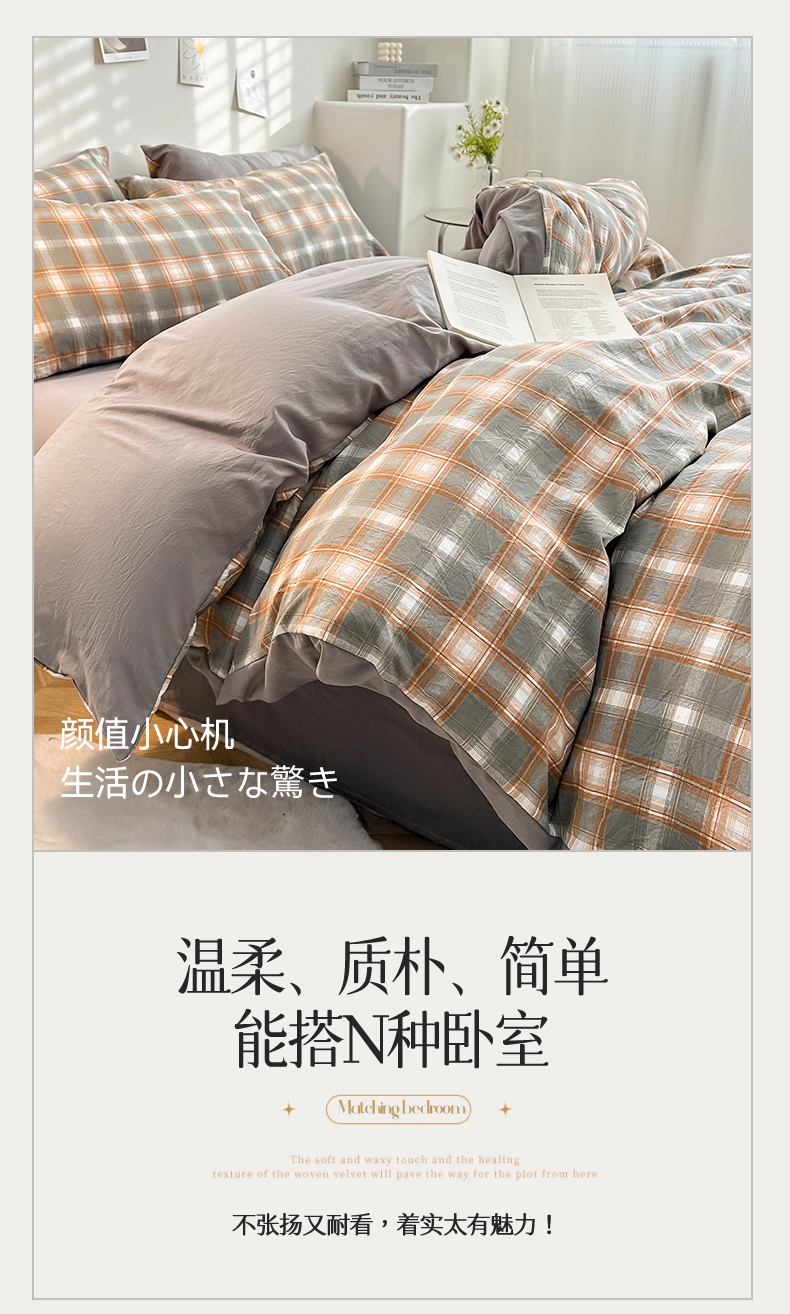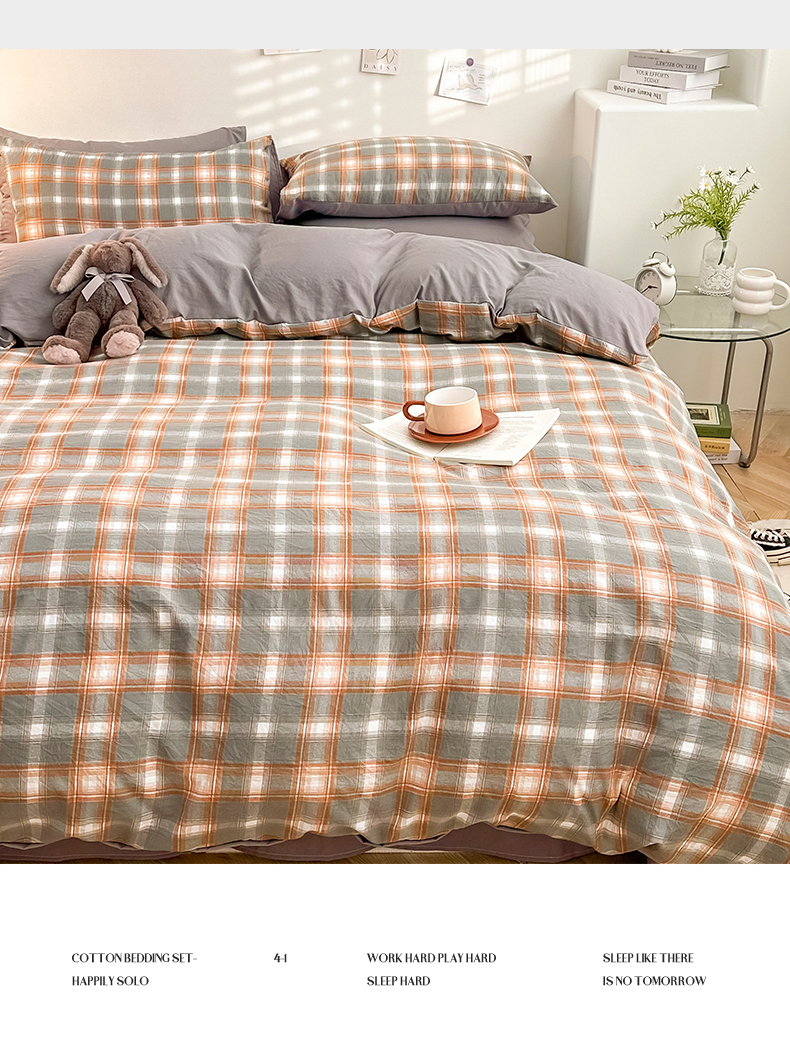 当前位置: 91家纺网 > 商品网购 > 床品套件 > 四件套 > 水洗棉四件套 > 古吉梦 2024新款水洗棉小清新印花格子系列四件套 G-米卡+中灰