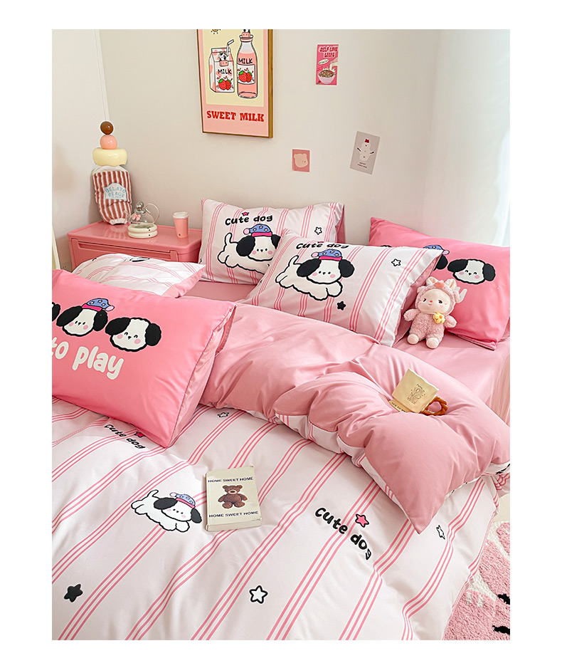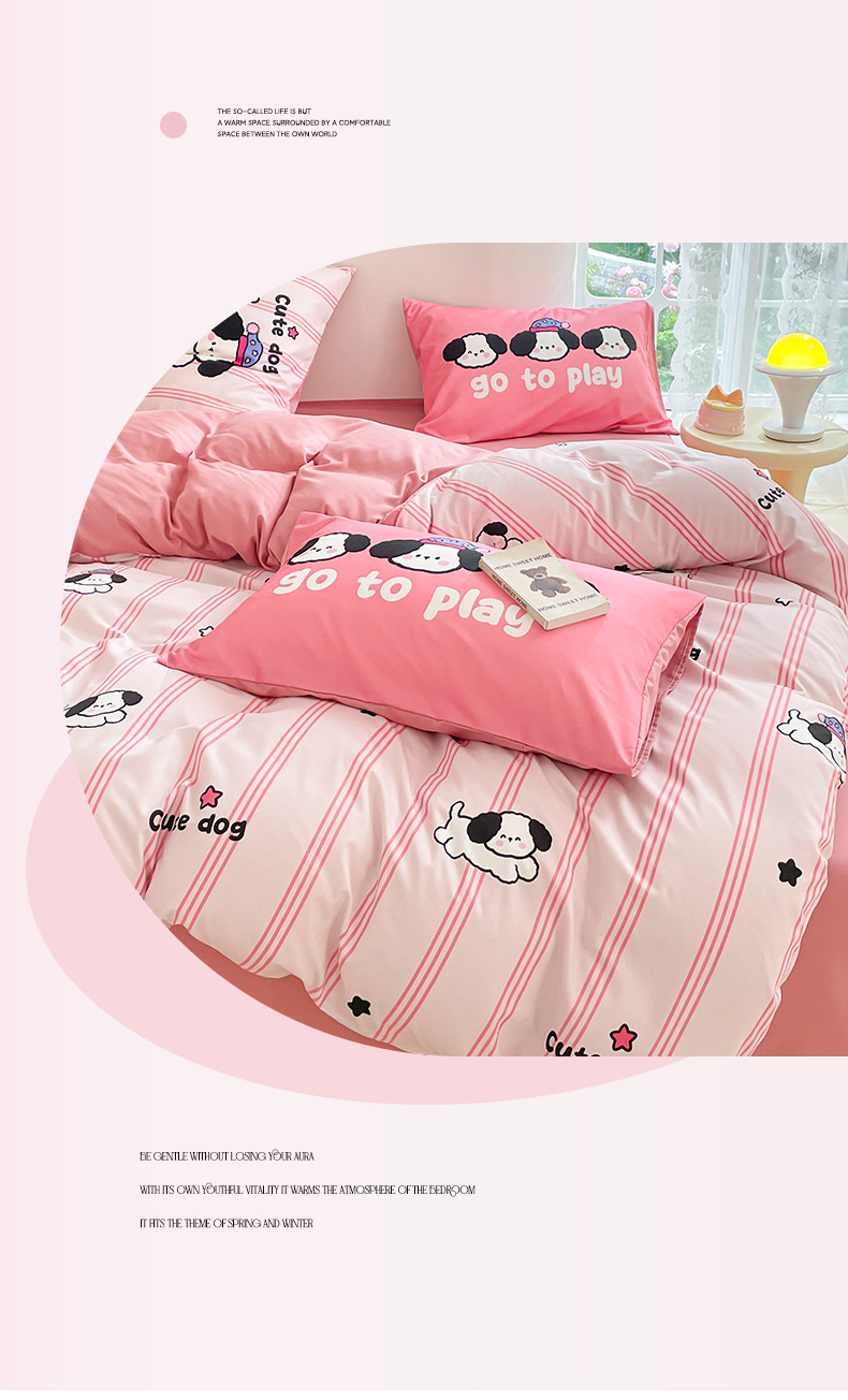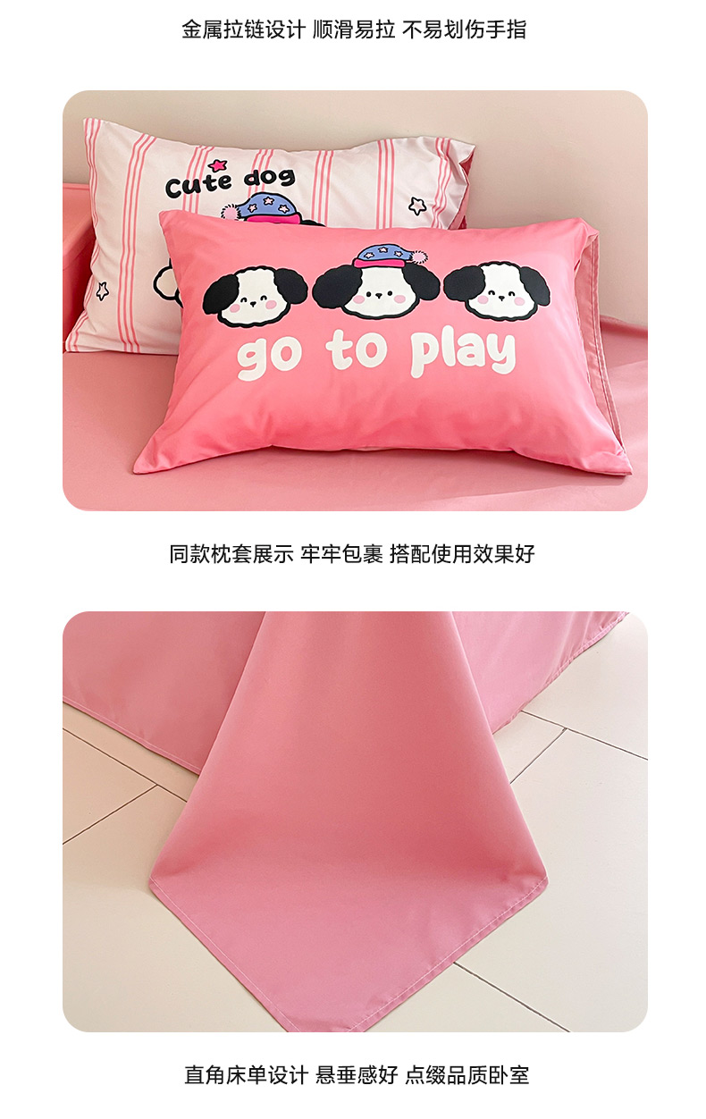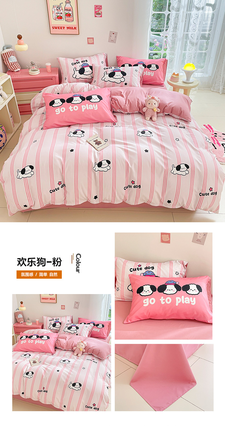 商品名称:莱米家纺 2024新款磨毛印花四件套 欢乐狗—粉