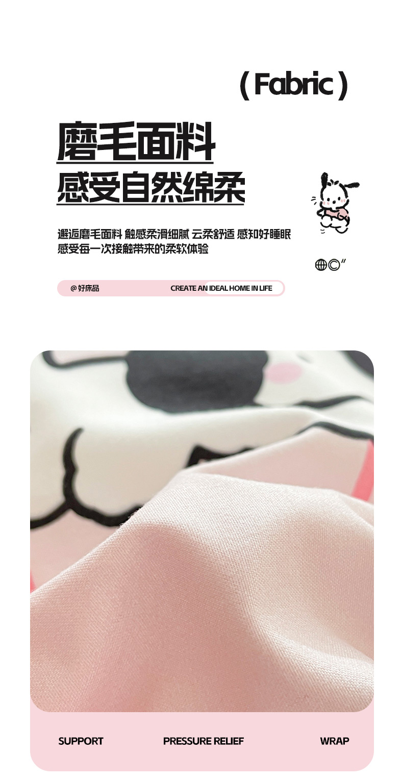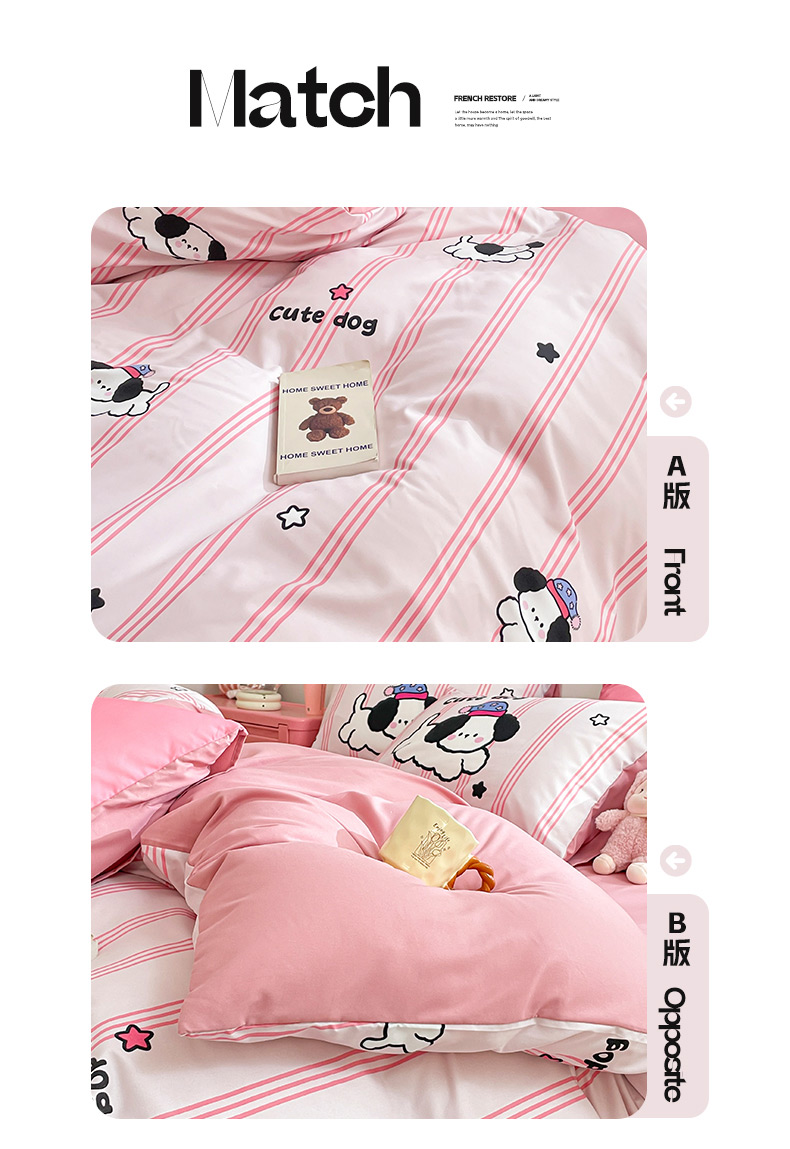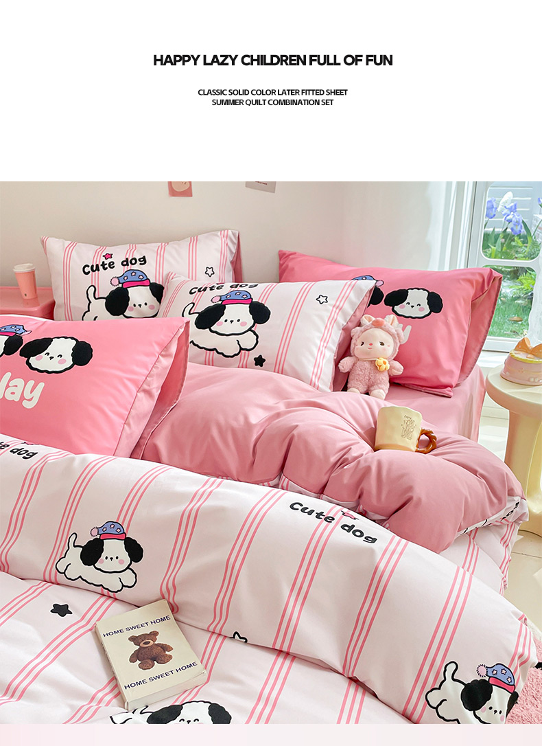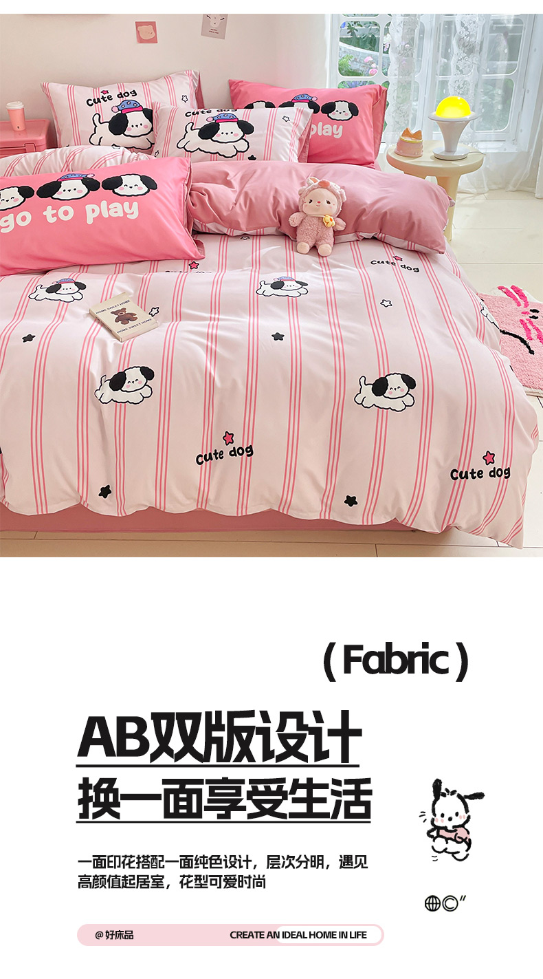 商品名称:莱米家纺 2024新款磨毛印花四件套 欢乐狗—粉